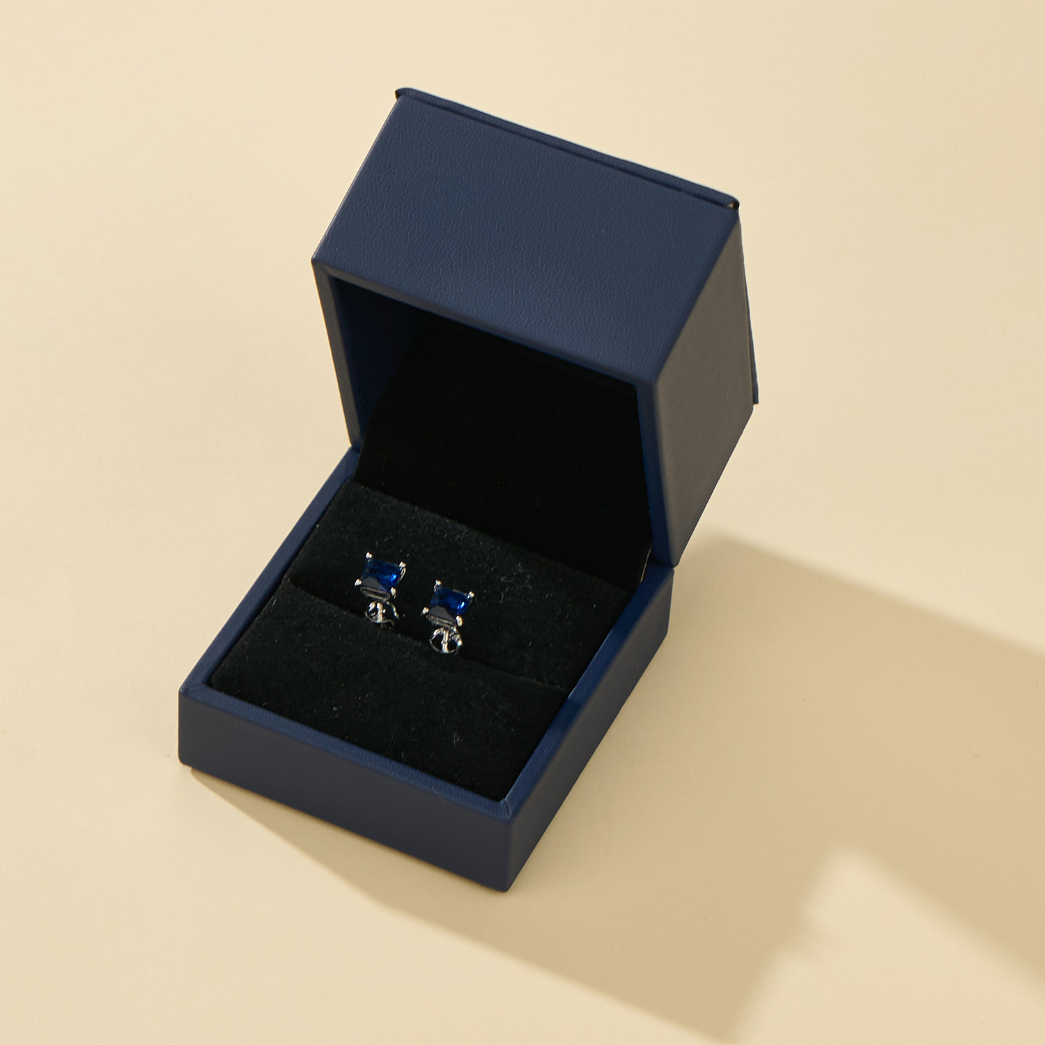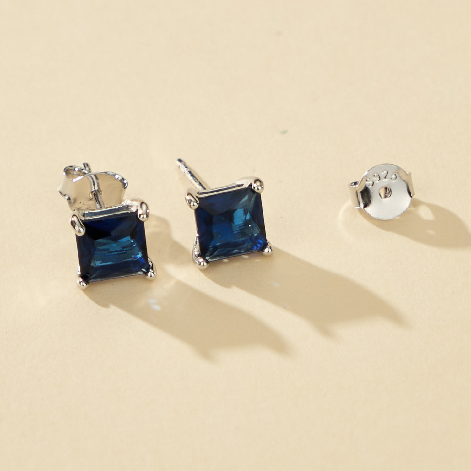 Bestyle Sterling Silver Earrings for Women Square Created Sapphire Birthstone Earrings Jewelry Gifts