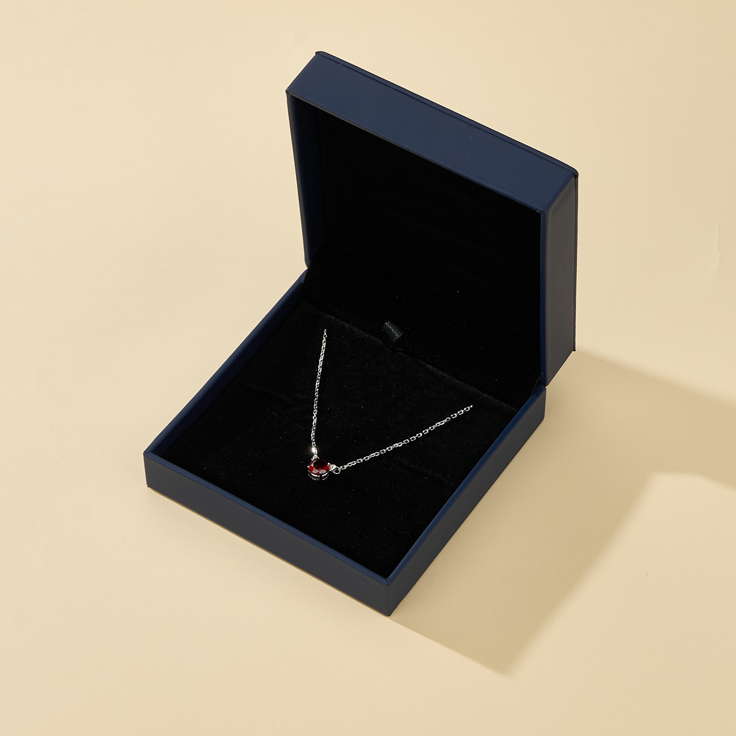Bestyle S925 Sterling Silver Birthstone Necklace for Women Square Created Ruby Pendant Necklace Birthday Christmas Gifts