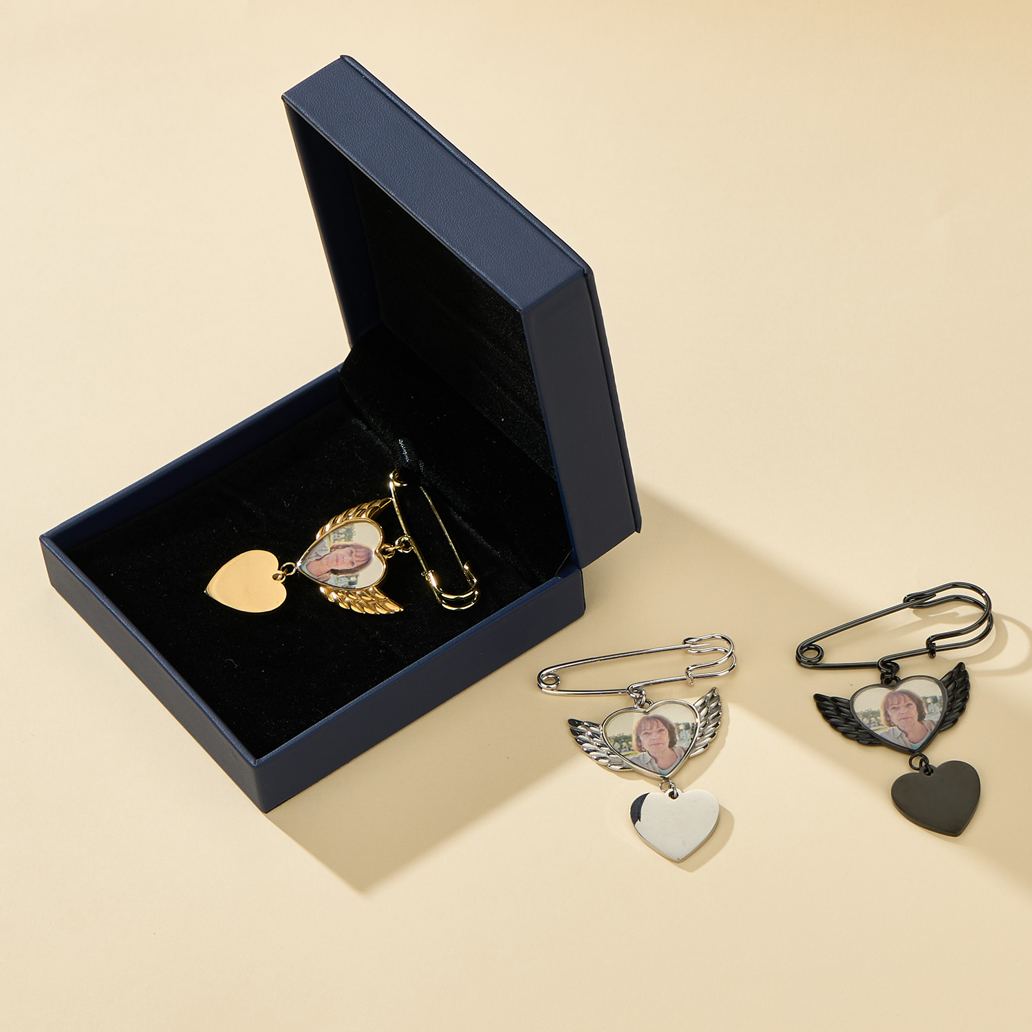 Bestyle Photo Brooch for Wedding Bouquet Angel Wing Pin with Picture Memory Funeral Pin Mother Father (With Gift Box)