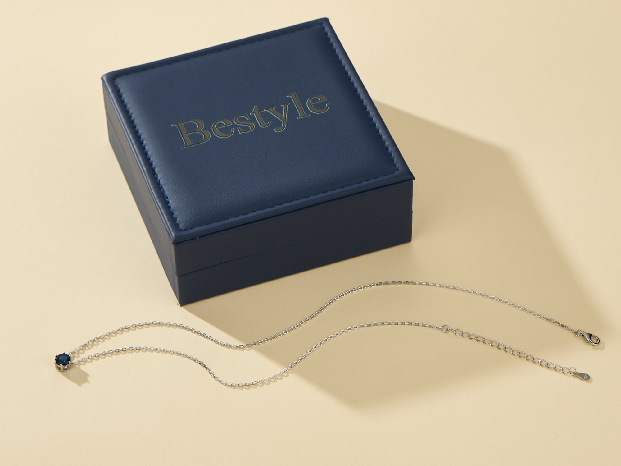Bestyle Cute Cat Necklace for Women Girls Sterling Silver Synthetic Sapphire Birthstone Necklace Birthday Christmas Gifts