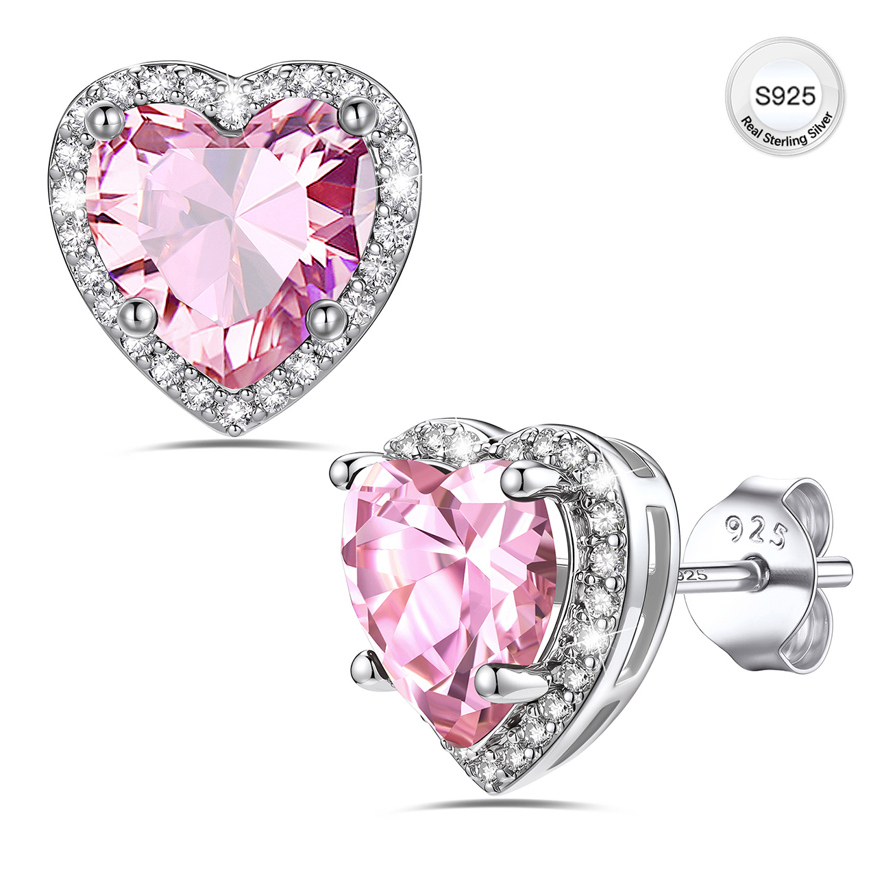 Bestyle 2 Carat Birthstone Earrings for Women, Solitaire Created Diamond Studs Birthday/Valentines/Everyday Jewelry for Wife Mother Girlfriend
