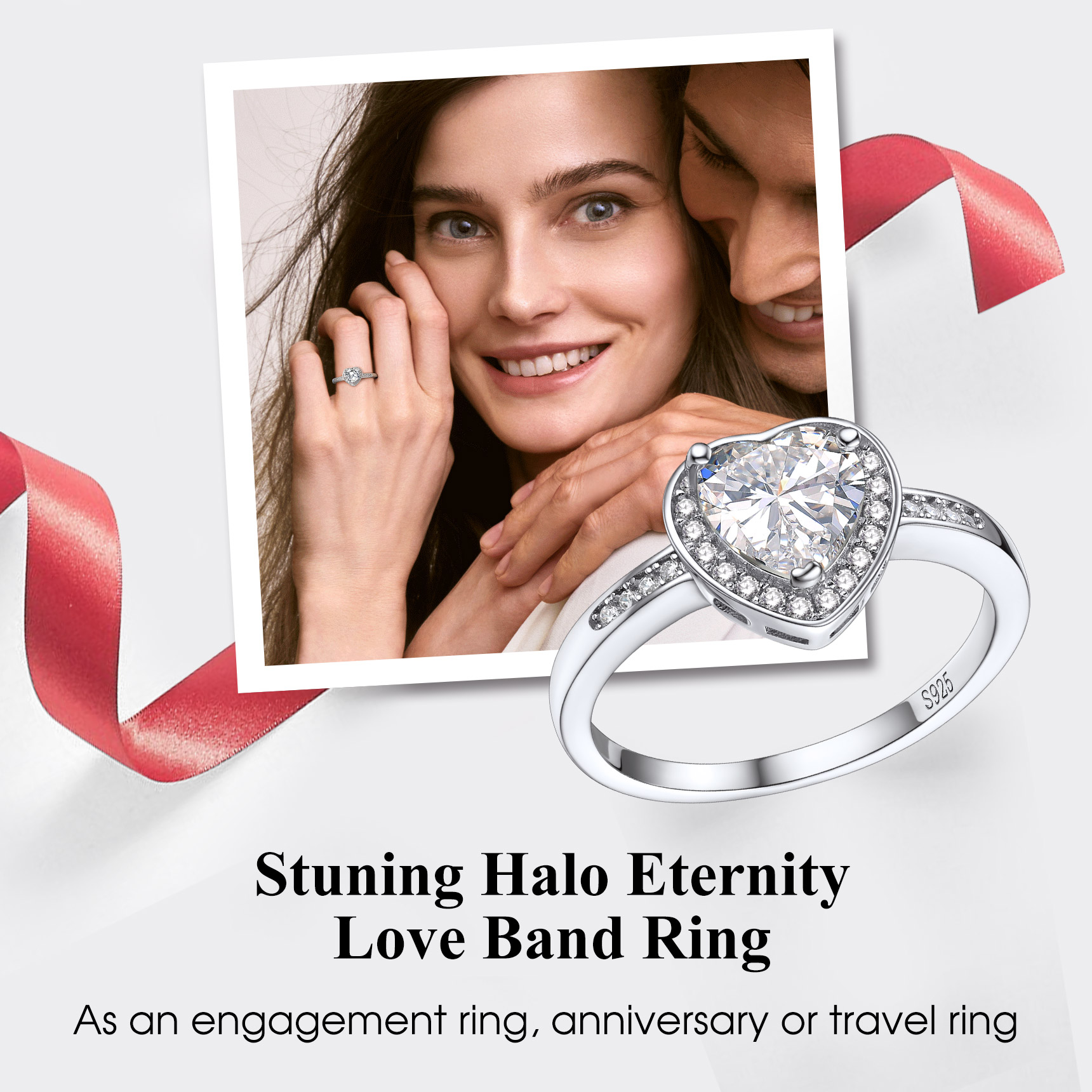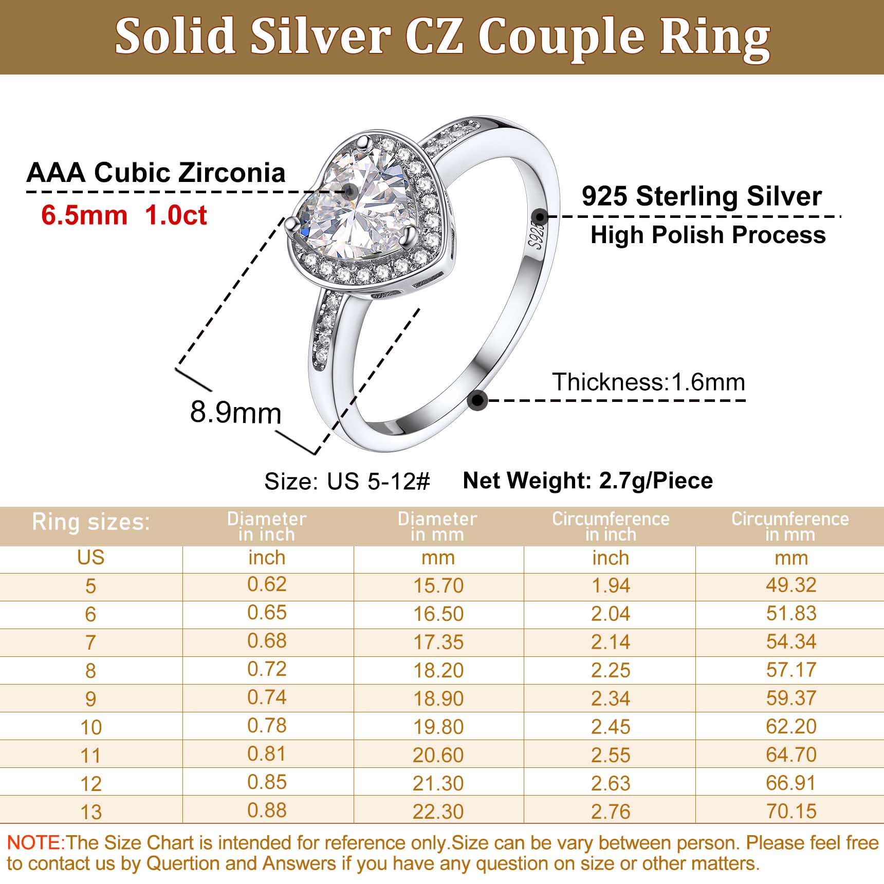 💓1 Carat Solitaire Heart Gemstone Ring💓 6.5mm wide white created diamond embellished with 1mm white cubic zirconia, exquisitely inlaid in high polished 925 sterling silver 2mm wide band. This love heart diamond ring is undying fashion among the trend-conscious. It will create an elegant look arround your fingers and illuminate your hands. It is shiny and classic which will make you special, so stylish to catch your audience's eyes and stand out the crowed.