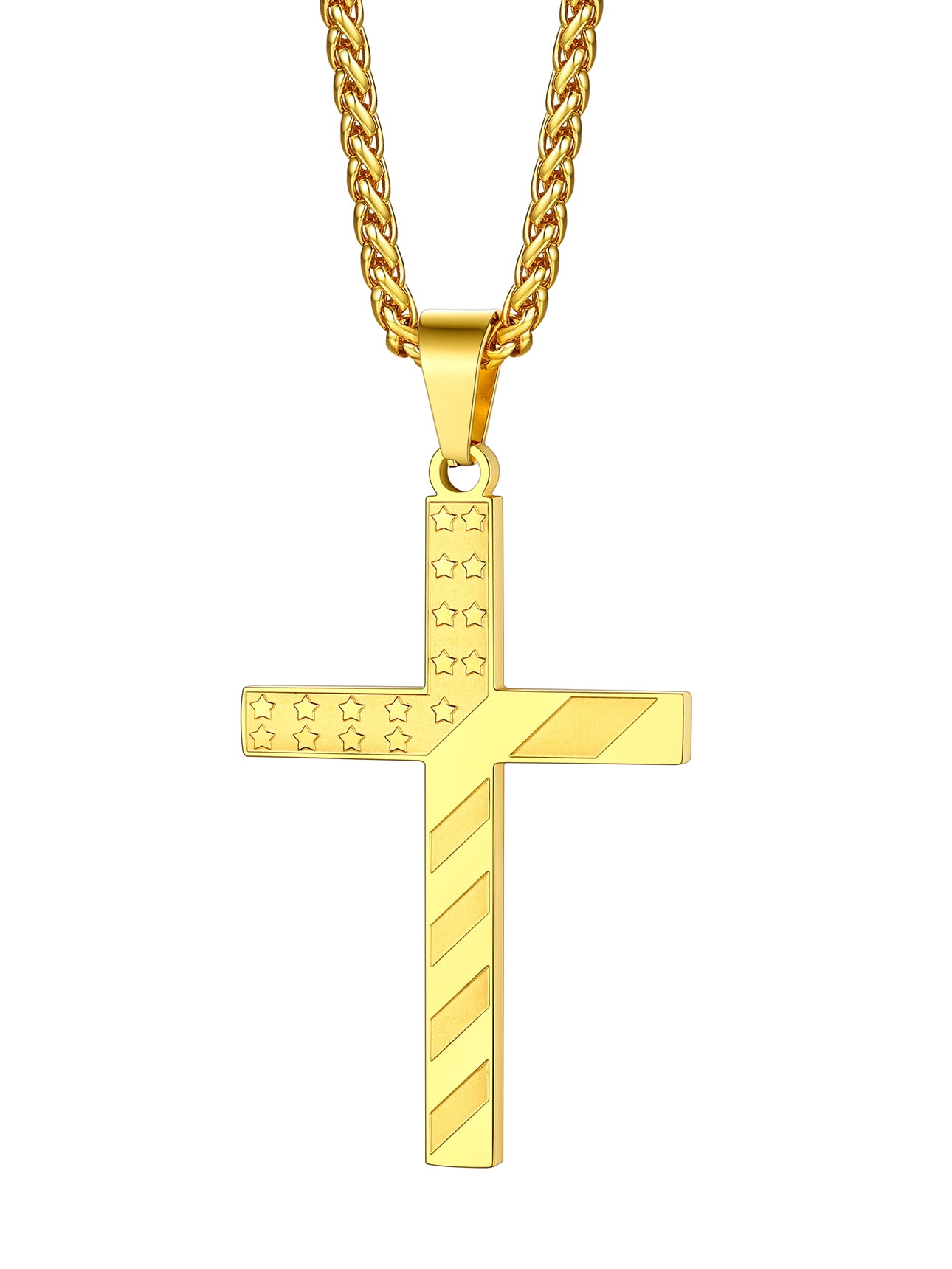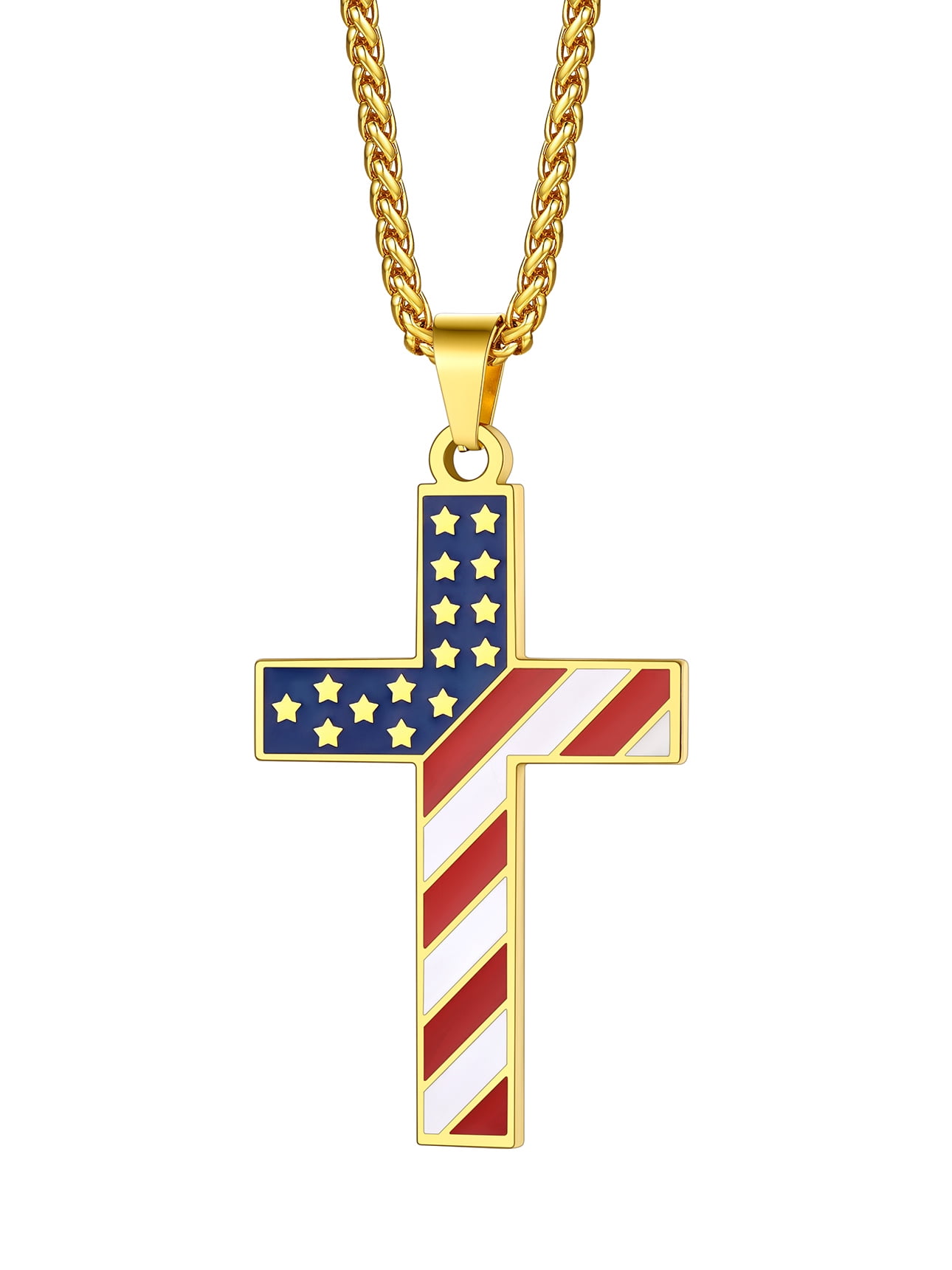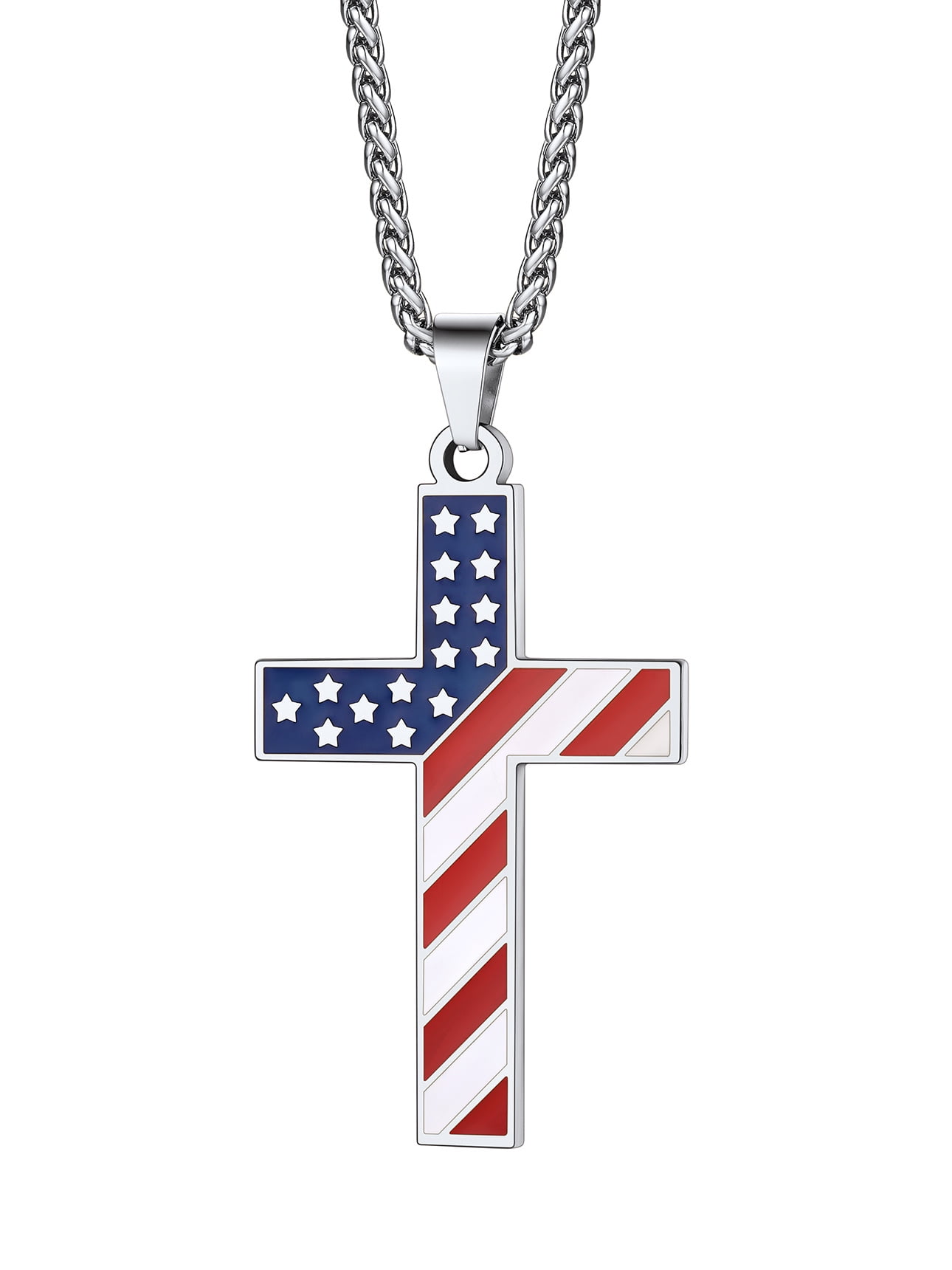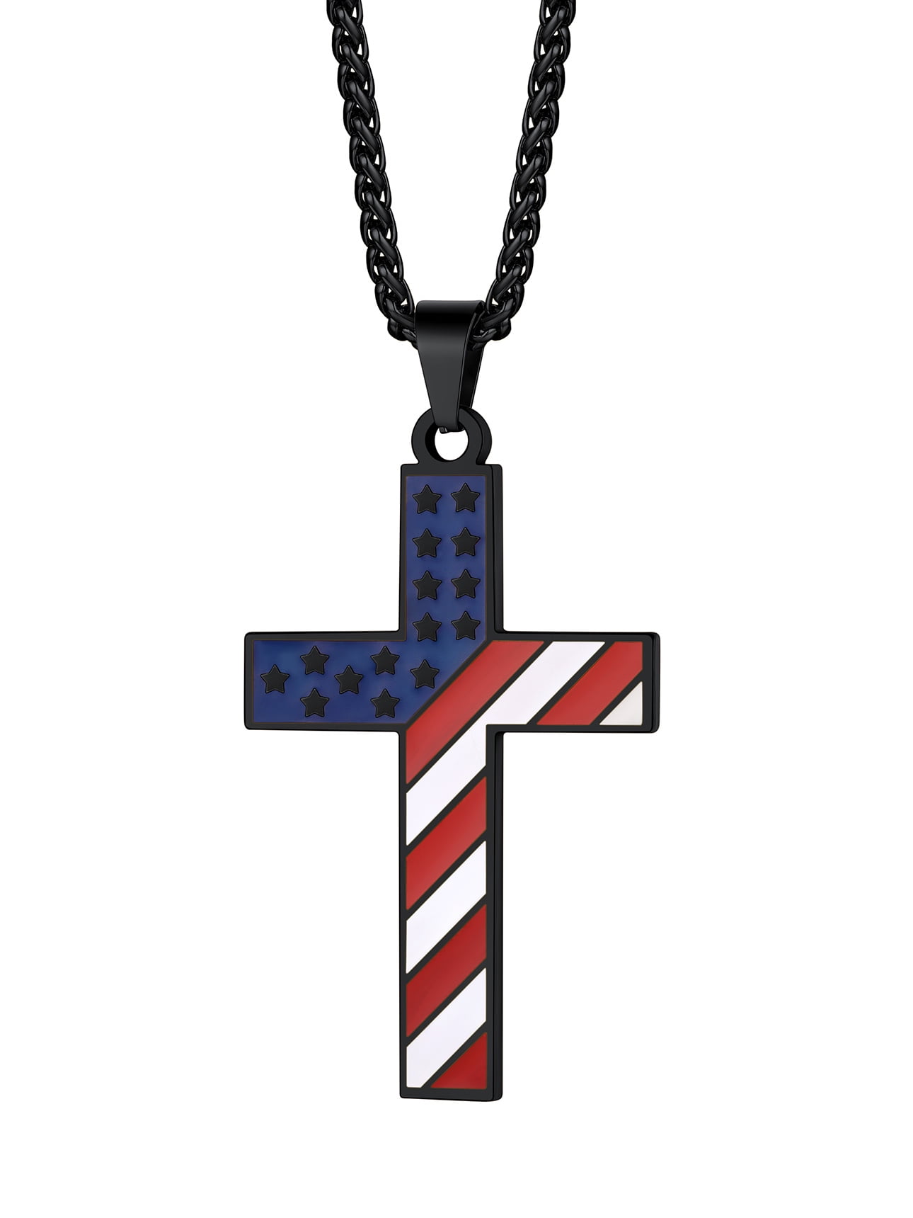❤❤ Cross Pendant Necklace for Men Boys ❤❤ US Flag Cross Pendant Size: 62.4mm/2.4" x 33.3mm/1.3" x 2.9mm/0.11", with a 3mm 22"+2" spiga chain.