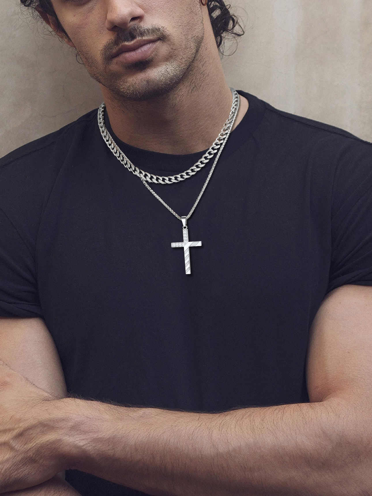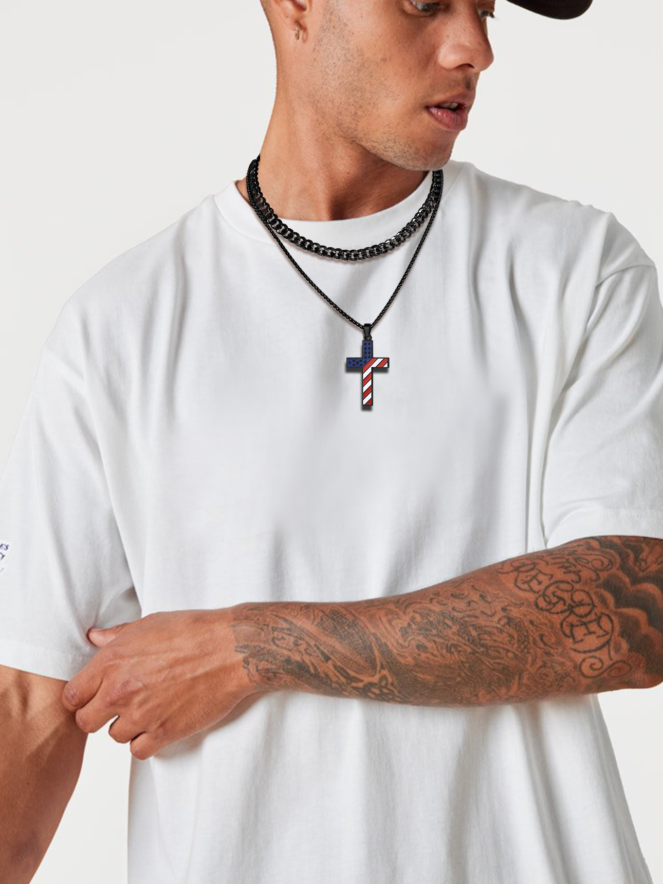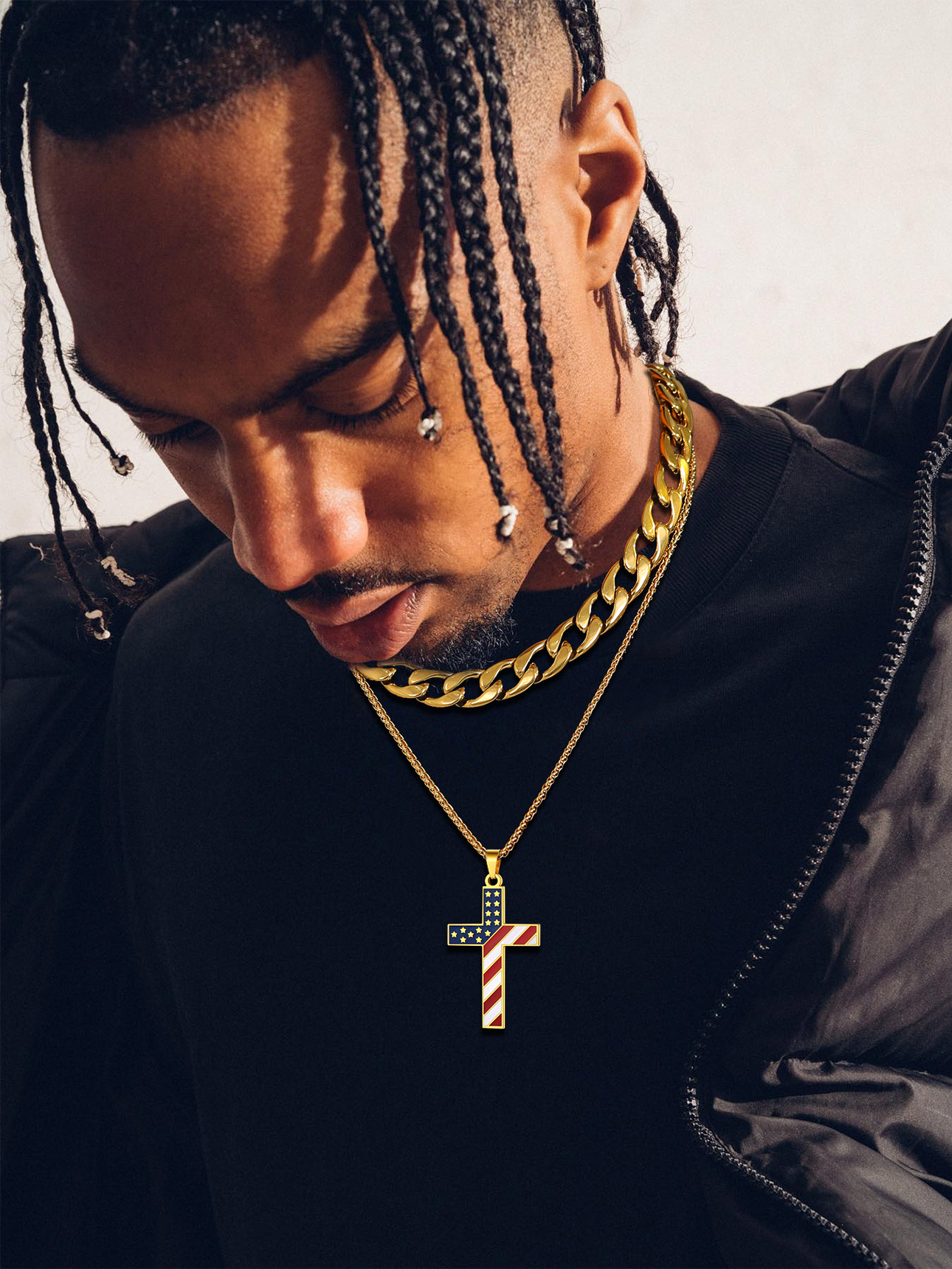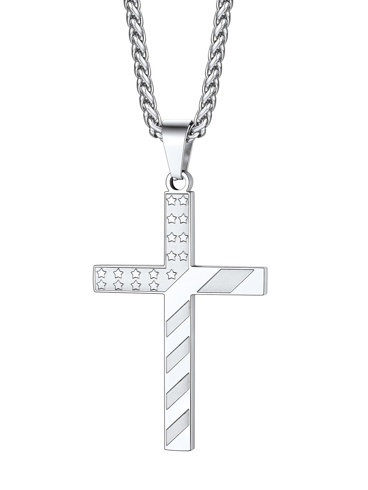 ❤❤ Cross Pendant Necklace for Men Boys ❤❤ US Flag Cross Pendant Size: 62.4mm/2.4" x 33.3mm/1.3" x 2.9mm/0.11", with a 3mm 22"+2" spiga chain.