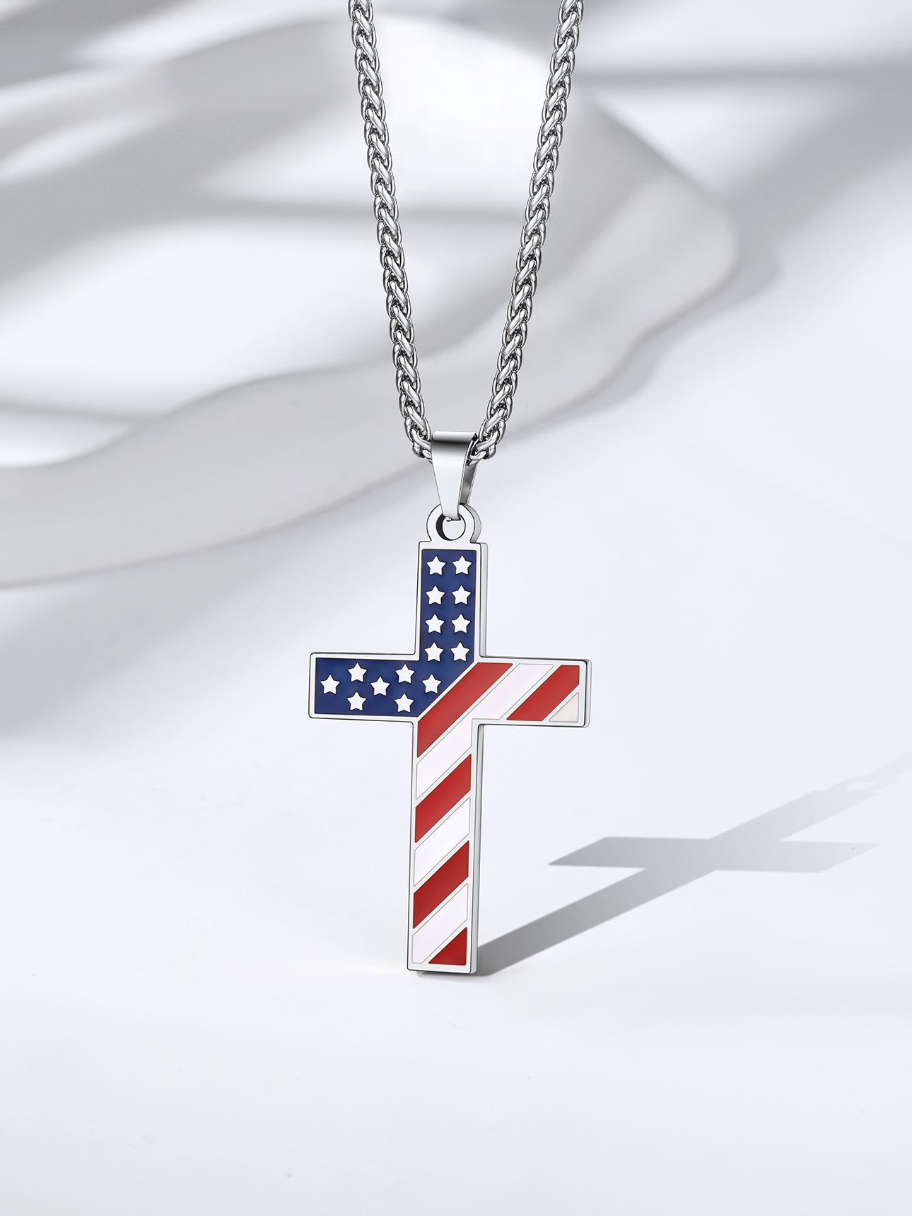 ❤❤ Bestyle Cross Necklace with Colored US Flag ❤❤ A Different Cross Design, a wider, sturdier, thicker cross pendant with American flag stars and stripes, an eye-catching polished finish. Great Bold Tough Style Cross Necklace, for Men to Pray, Pray for Yourselfy and Pray for Amercan. Also can be a great fashion necklace