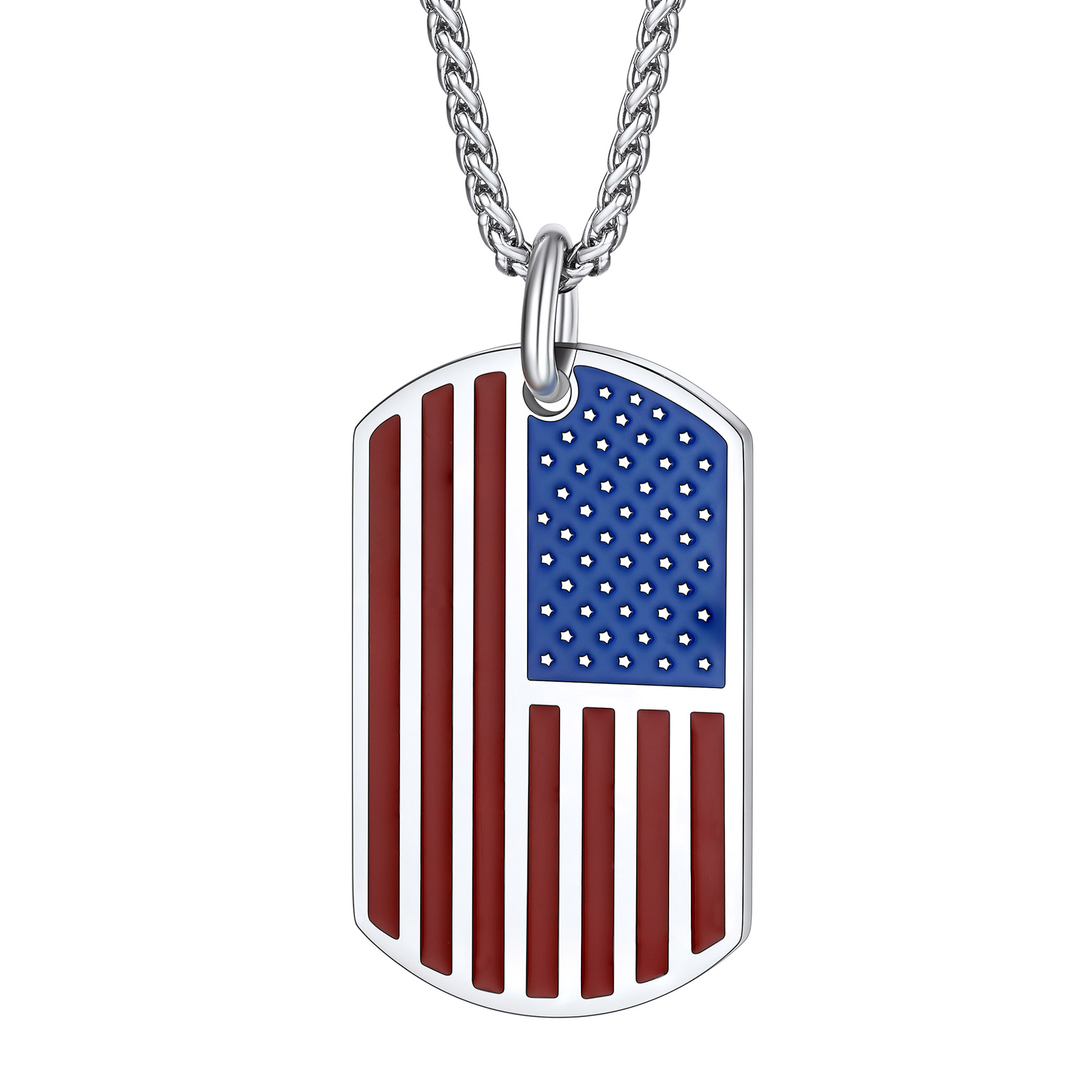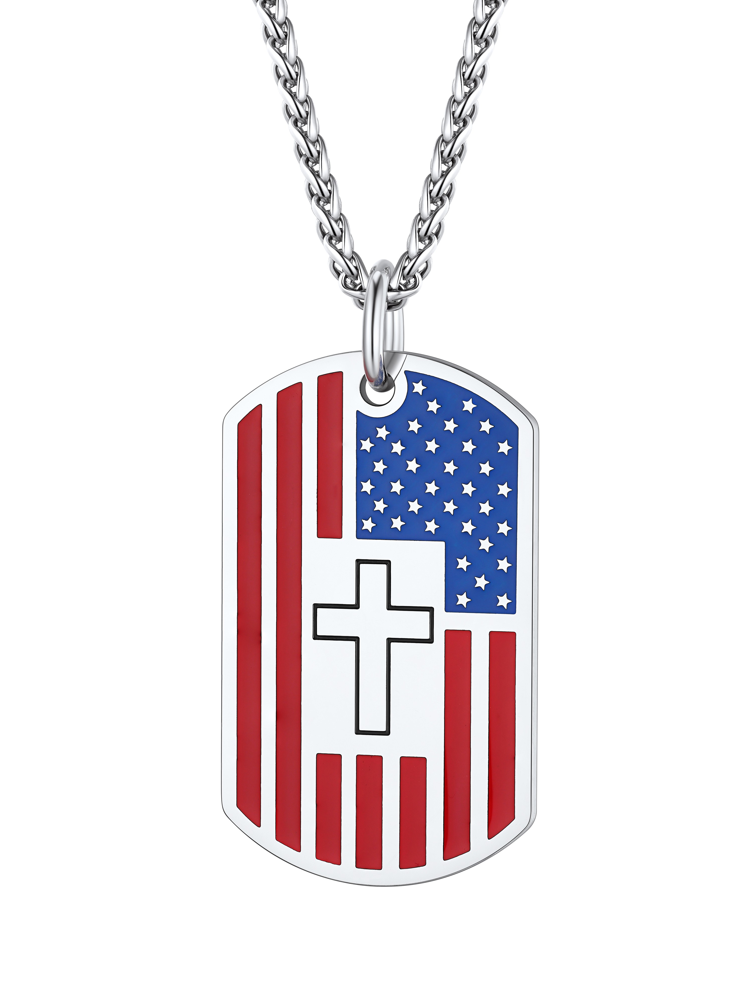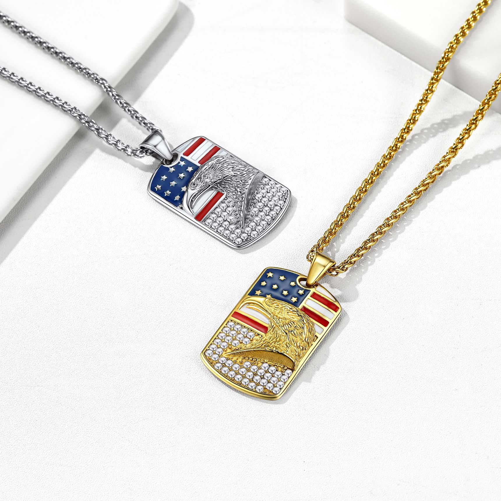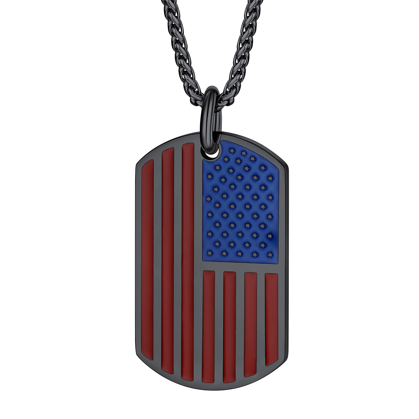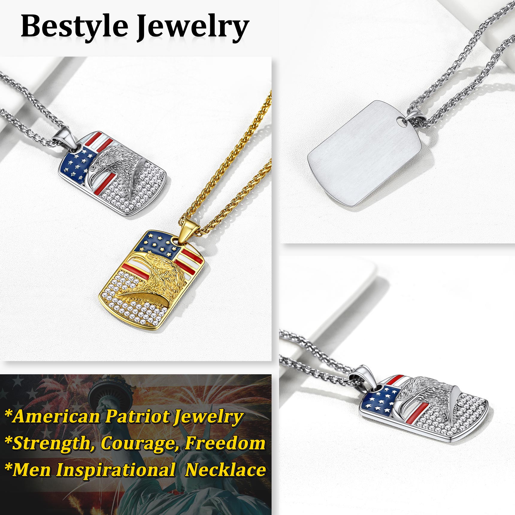 【Bestyle American Flag Patriotic Necklace】This necklace features a dog tag and beautifully engraved American Flag and Cubic Zirconia Bald Eagle. Bald Eagle and American flag are great symbols of USA, Strength and Determination! Wear this US flag necklace to show your faith in US religion and the faith in US country! The blue and red shine compliments literally any outfit and for every age. Cool Solid and Heavy Necklace for Patriots. Wear the US flag with pride!