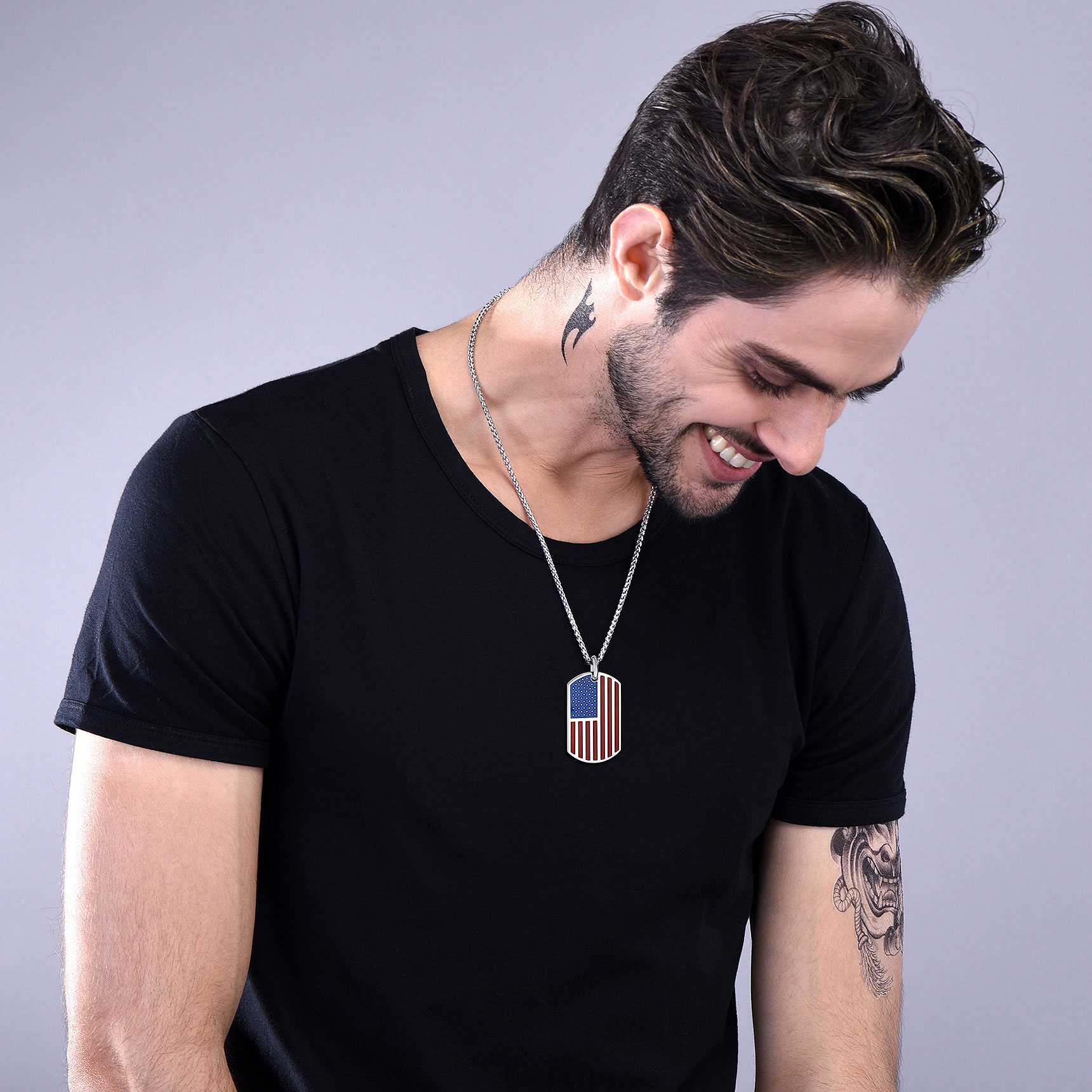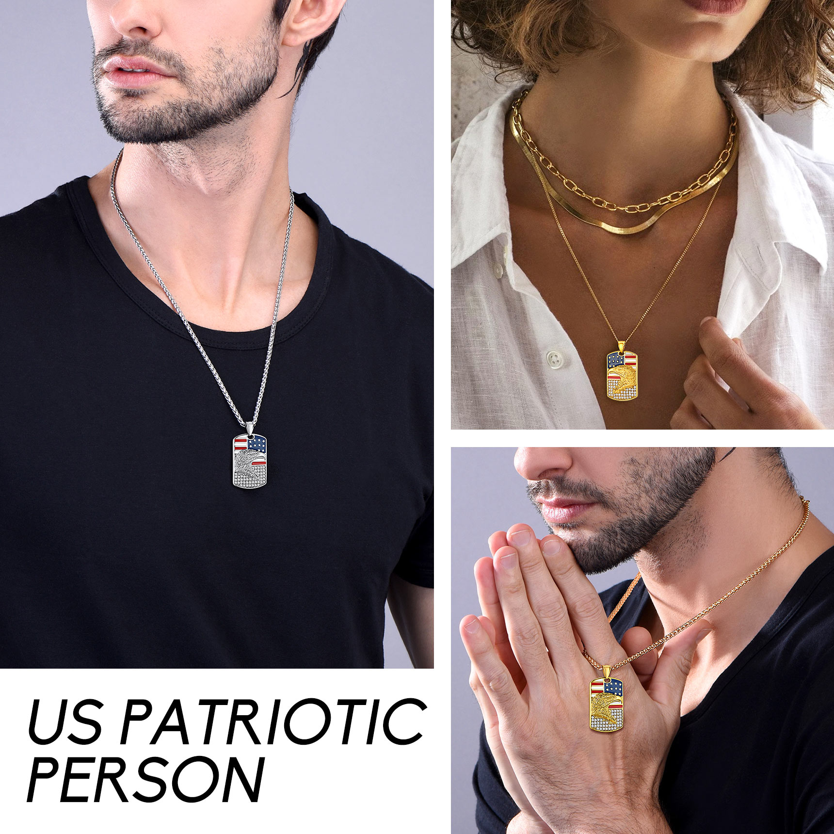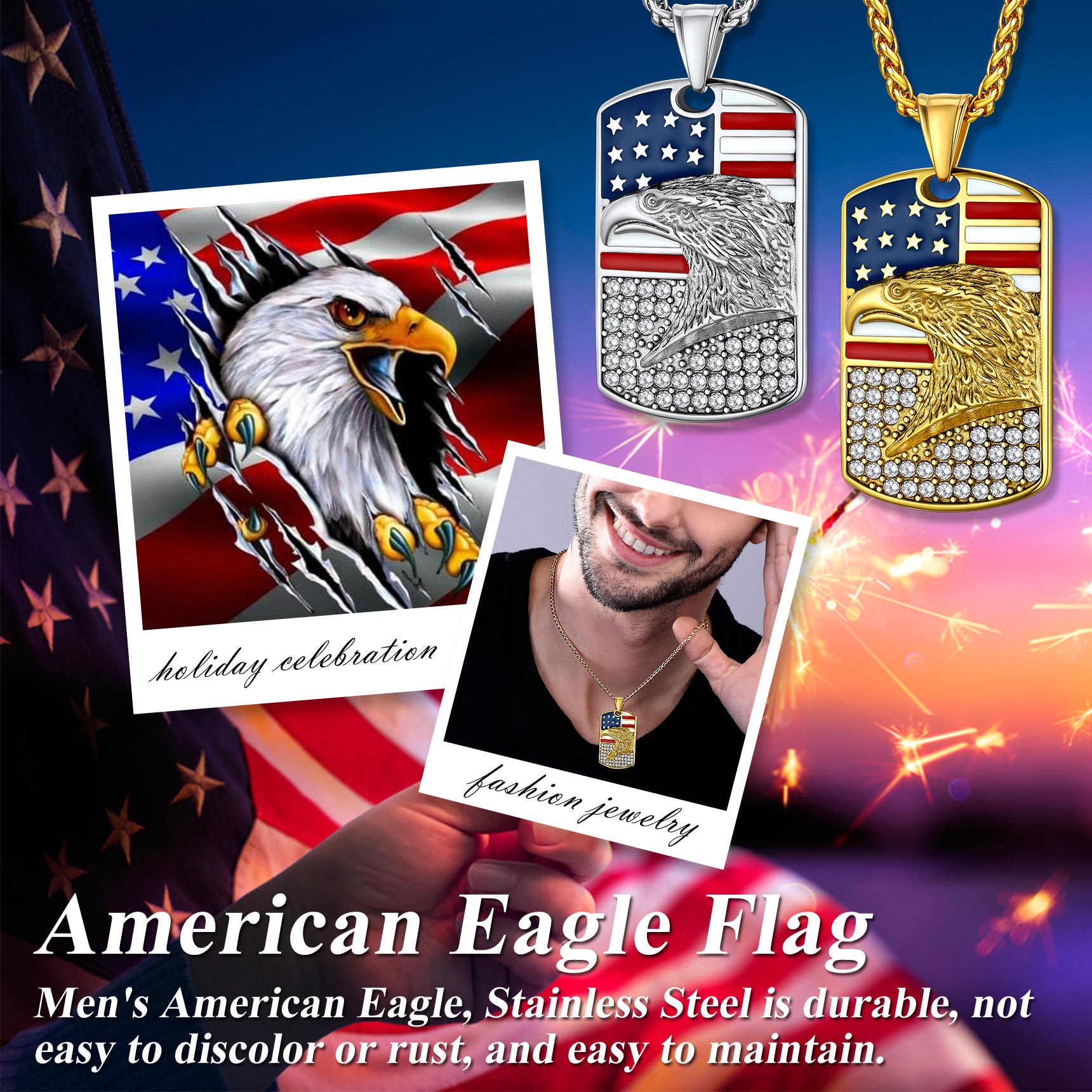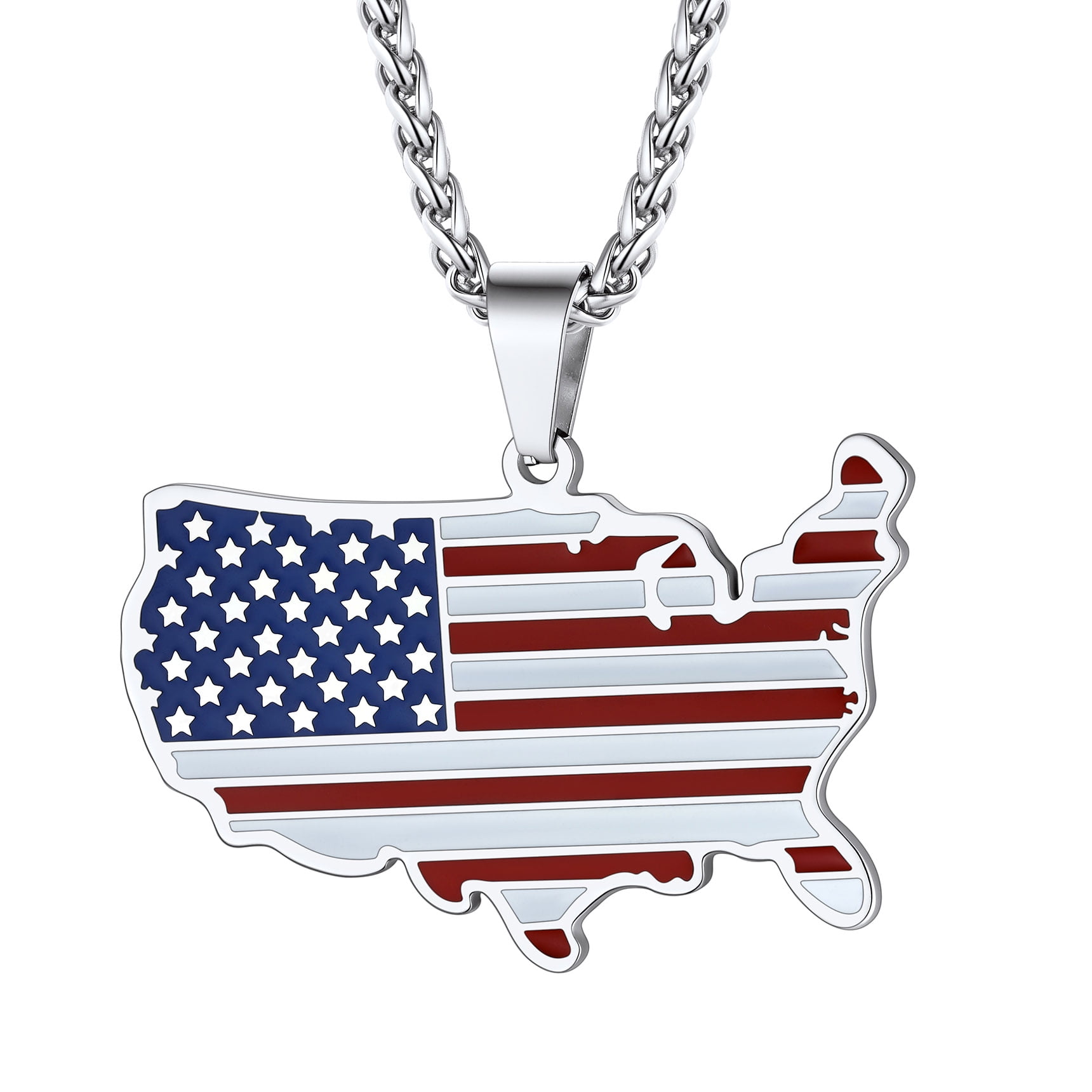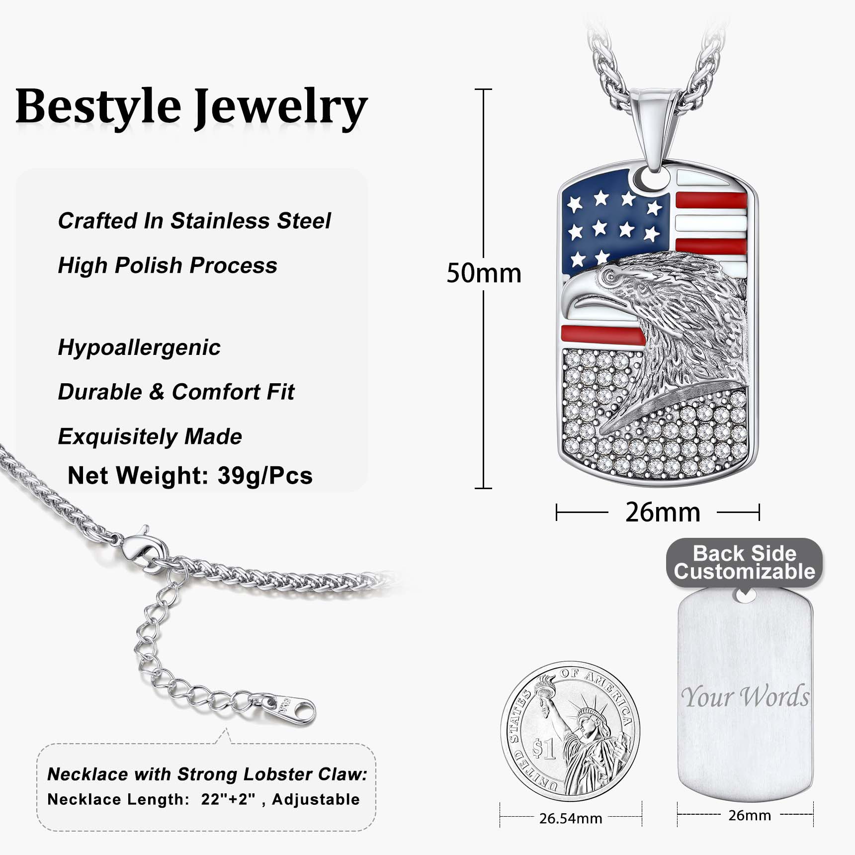 【Bestyle American Flag Patriotic Necklace】This necklace features a dog tag and beautifully engraved American Flag and Cubic Zirconia Bald Eagle. Bald Eagle and American flag are great symbols of USA, Strength and Determination! Wear this US flag necklace to show your faith in US religion and the faith in US country! The blue and red shine compliments literally any outfit and for every age. Cool Solid and Heavy Necklace for Patriots. Wear the US flag with pride!