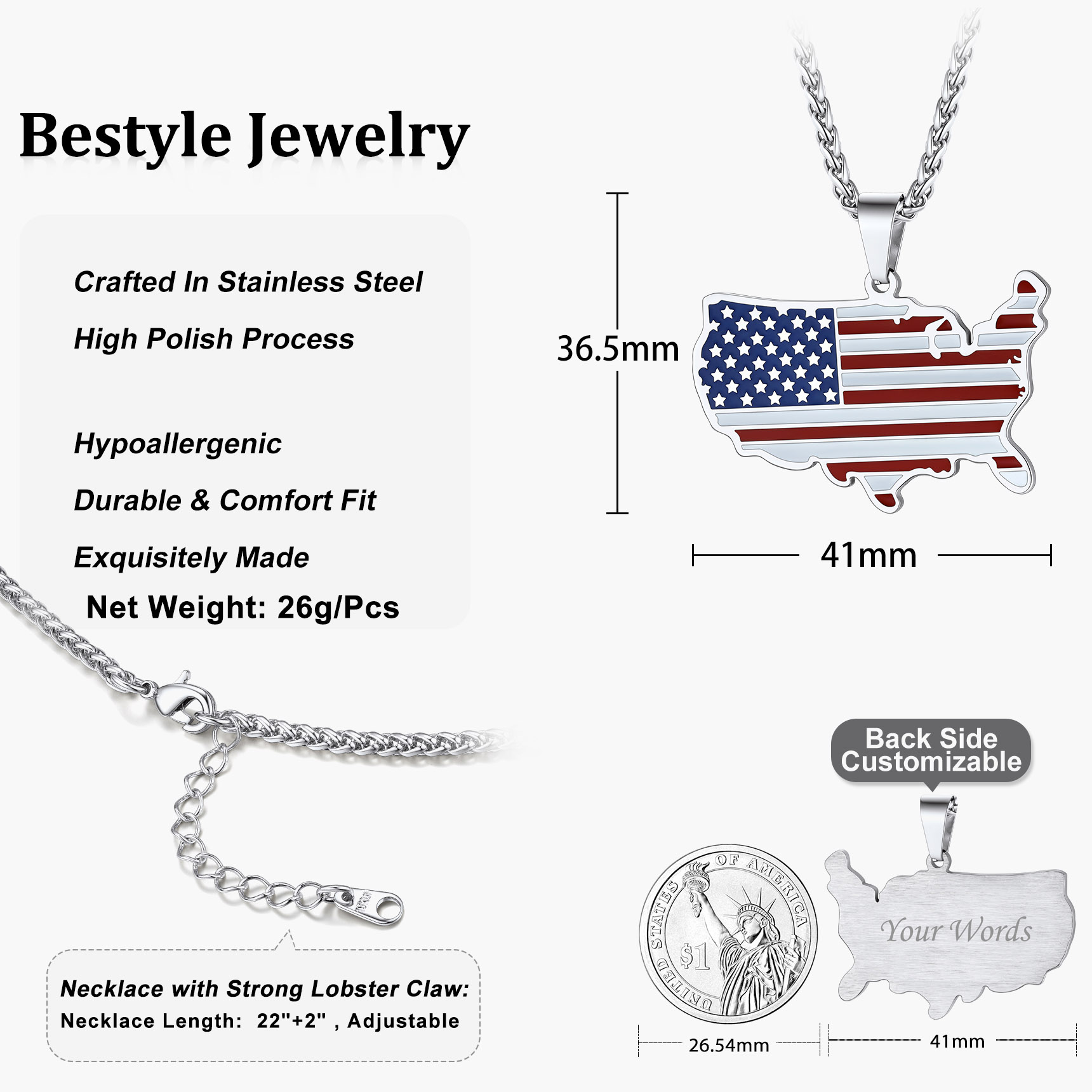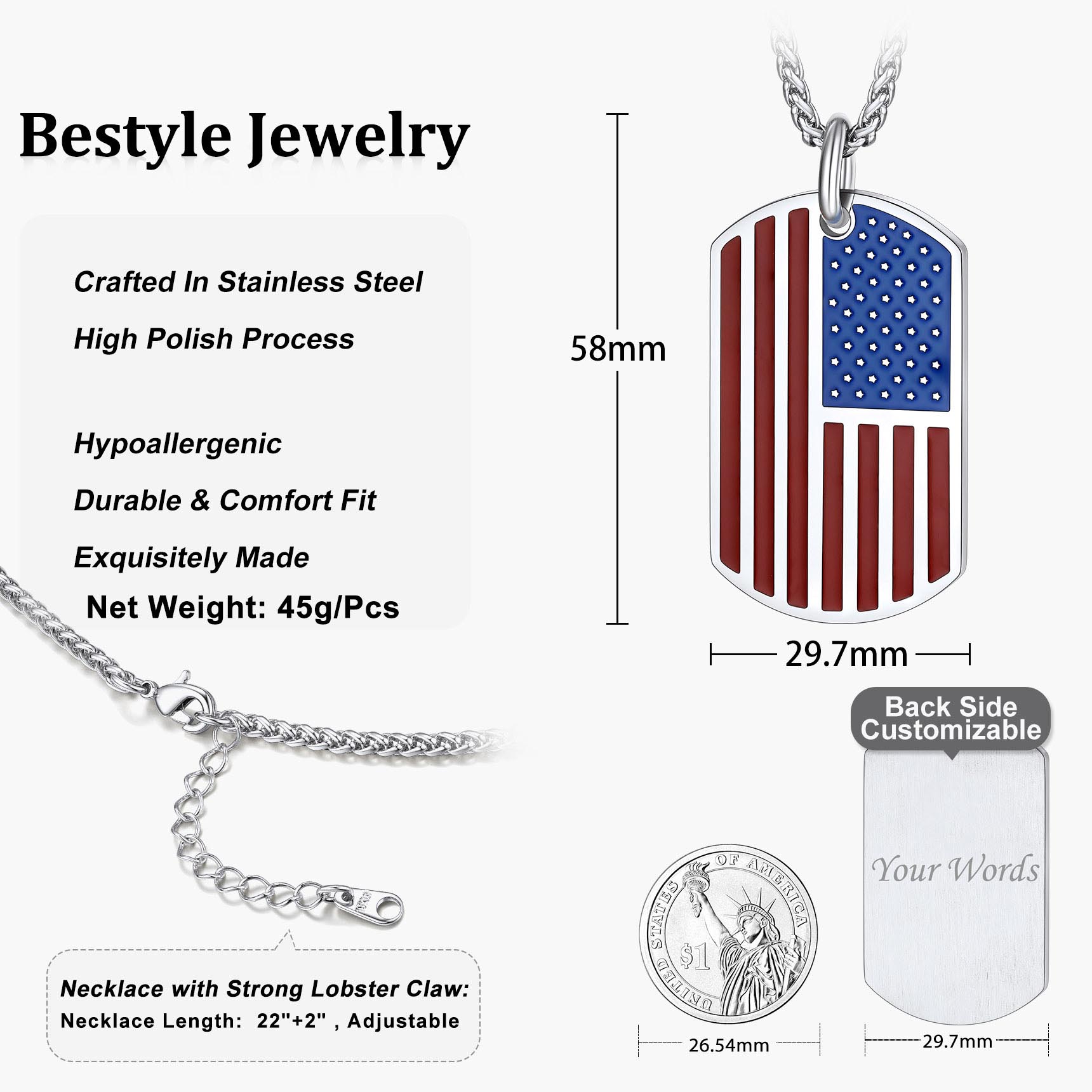 💝【Great US Gift】Bestyle Gift Package with black velvet. Ready to be gifted and make a surprise. A great gift for solider, airman, and those who fight for American dreams. And also a great necklace for Naturalization Ceremony/ July 4th Independence Day/ Enlistment Ceremony.