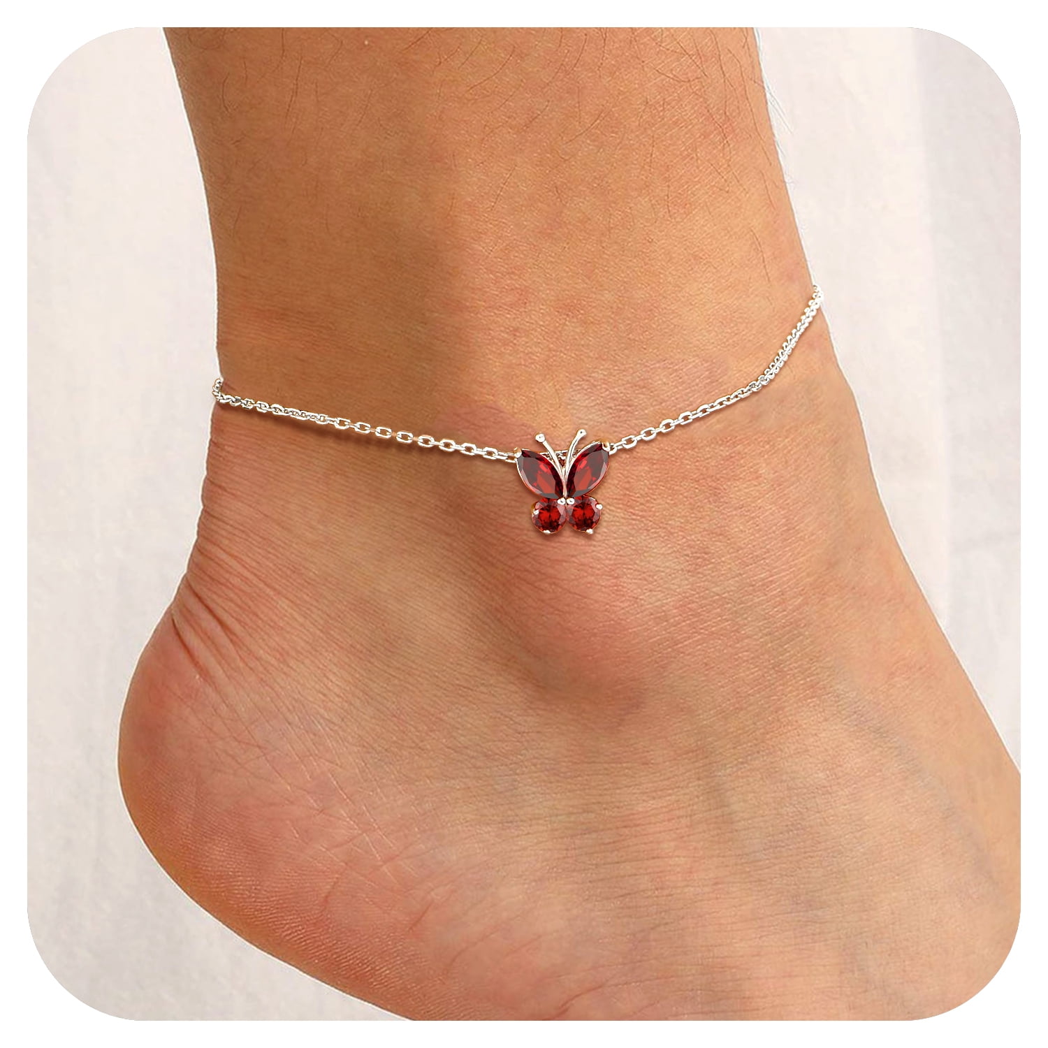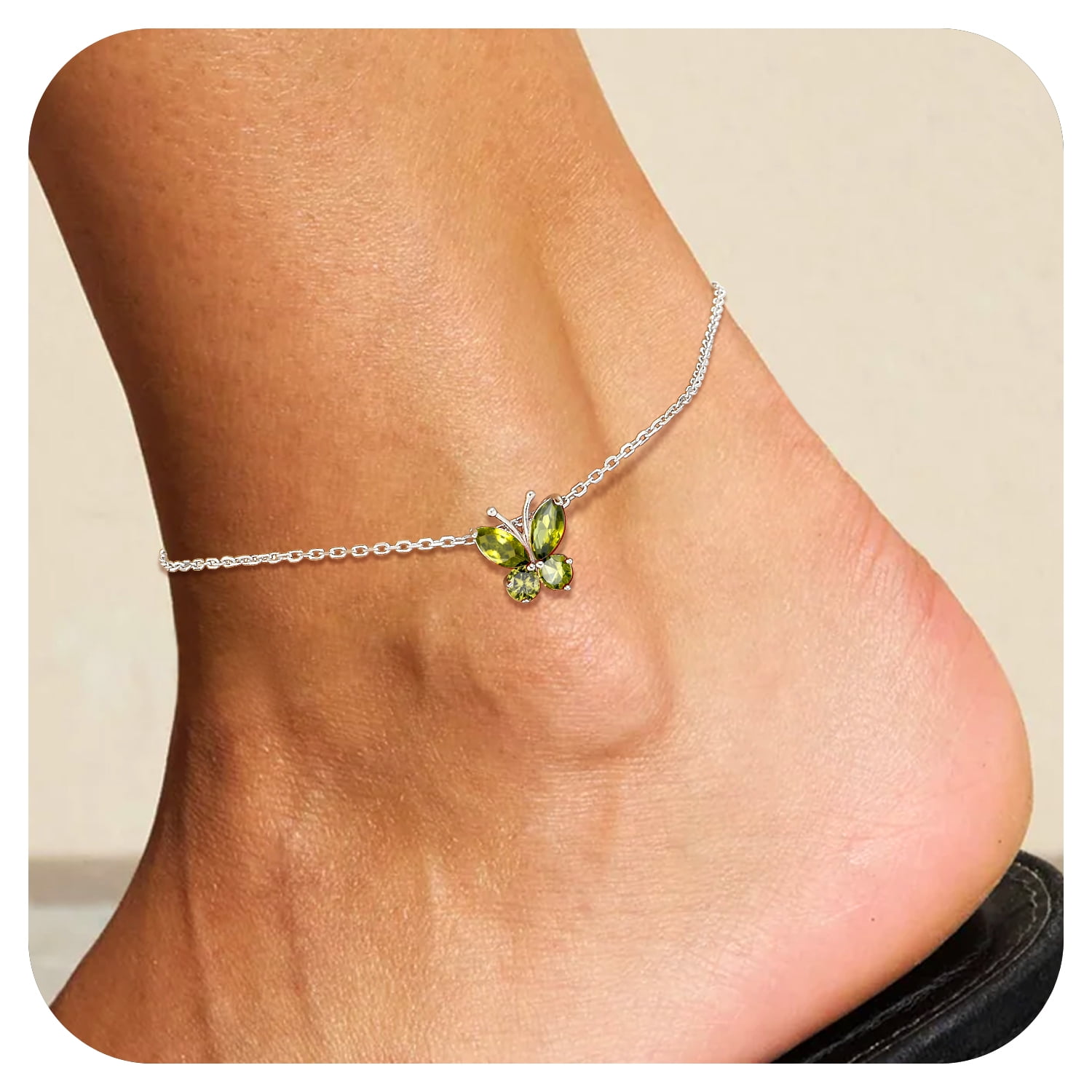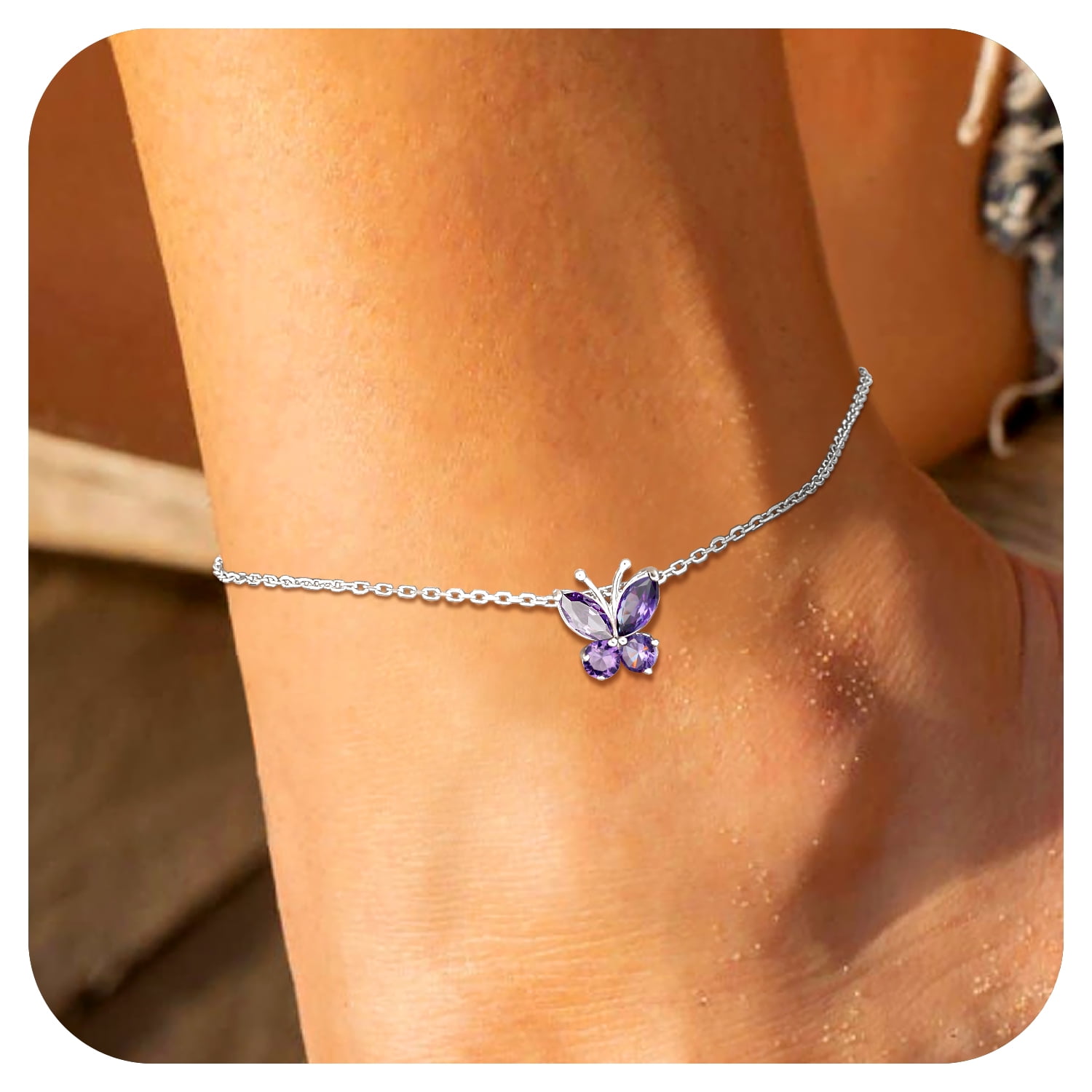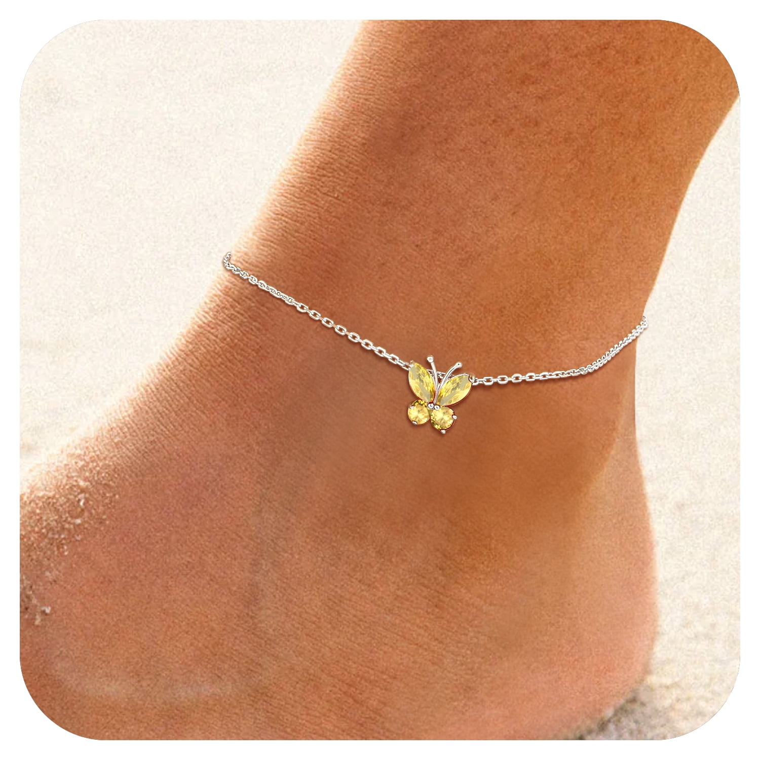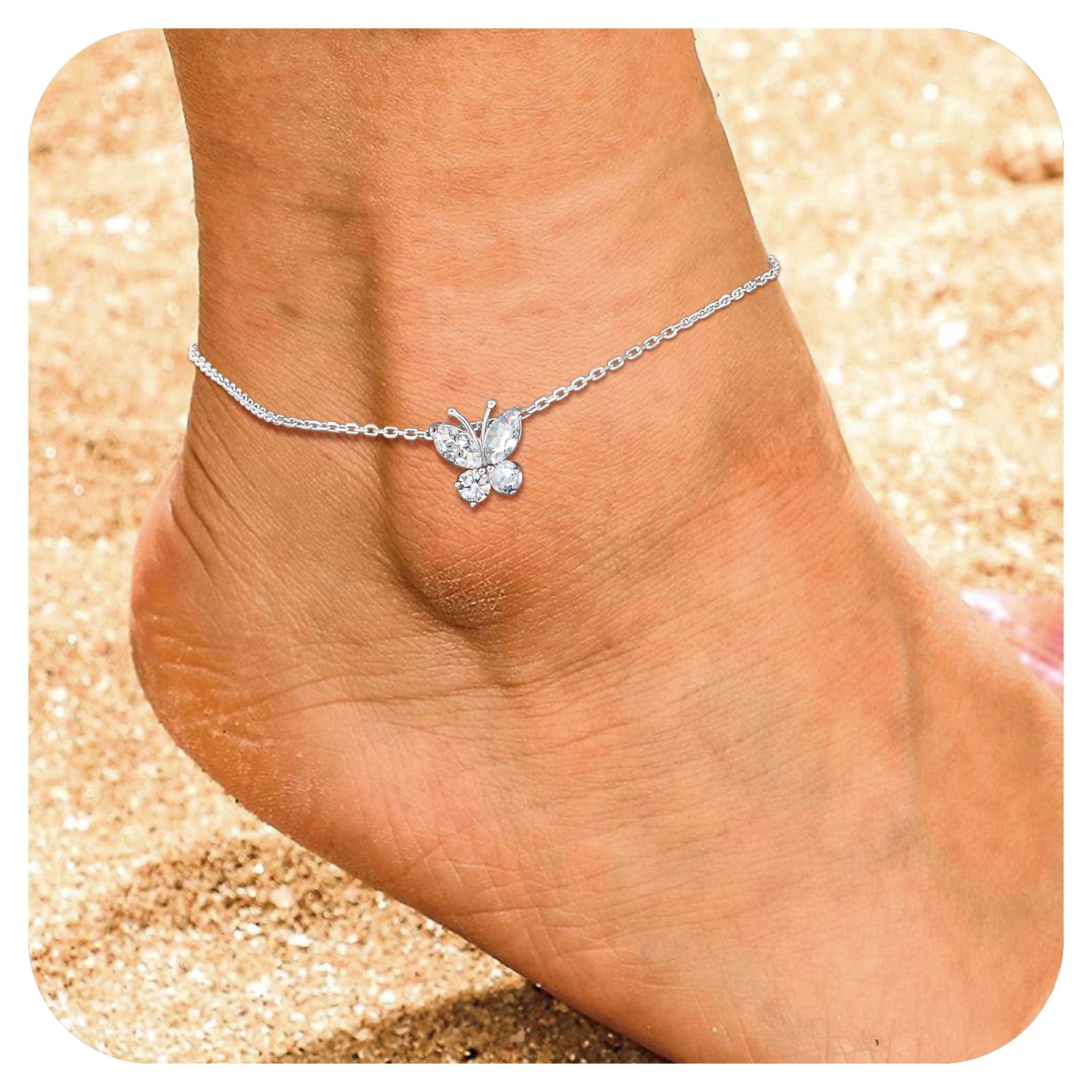 Summer Beach Foot Jewelry for Women - Made of S925 Sterling Silver and High Quality Clear Crystal, Hypoallergenic and Nickle&Lead Free. Butterfly Size: 12.6mm(H)*11.6mm(W), Anklet Chain Length: 8.6" + 2" Adjustable, Net Weight: 2.3g/pcs, lightweight and confirmfit, everyday wear jewelry. Sparkles in any light and is stylishly chic in any situation. Fashioned with Cubic Zirconia accent stones this butterfly compliments any outfit.