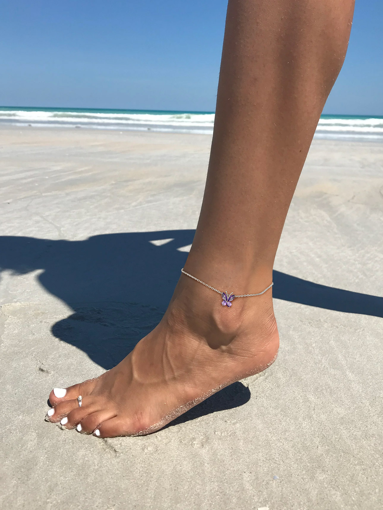 Bestyle Butterfly Anklet Bracelet - Combining whimsy and elegance, this sweet butterfly anklet sparkles with marquise and round-cut crystals. A shimmering must-have! The dainty sterling silver anklet gives your outfits a feminine bohemian style. This charming butterfly silver anklet is a glamorous trending accessory evocative of nature. And it's flaunt-worthy! No wonder it's a favorite amongst the minimalists, adventure-seekers, boho chic, nature lovers and like-minded fashionistas.