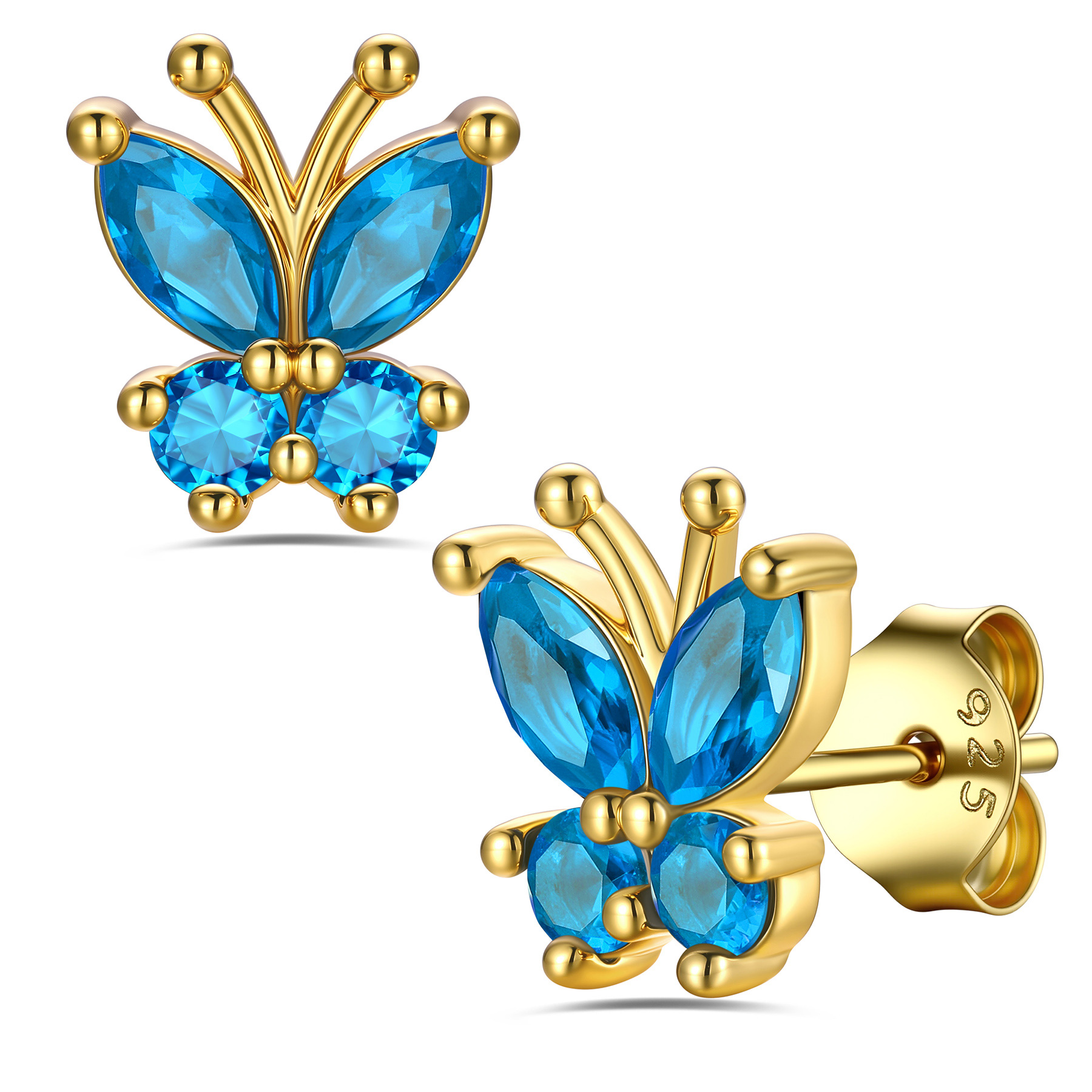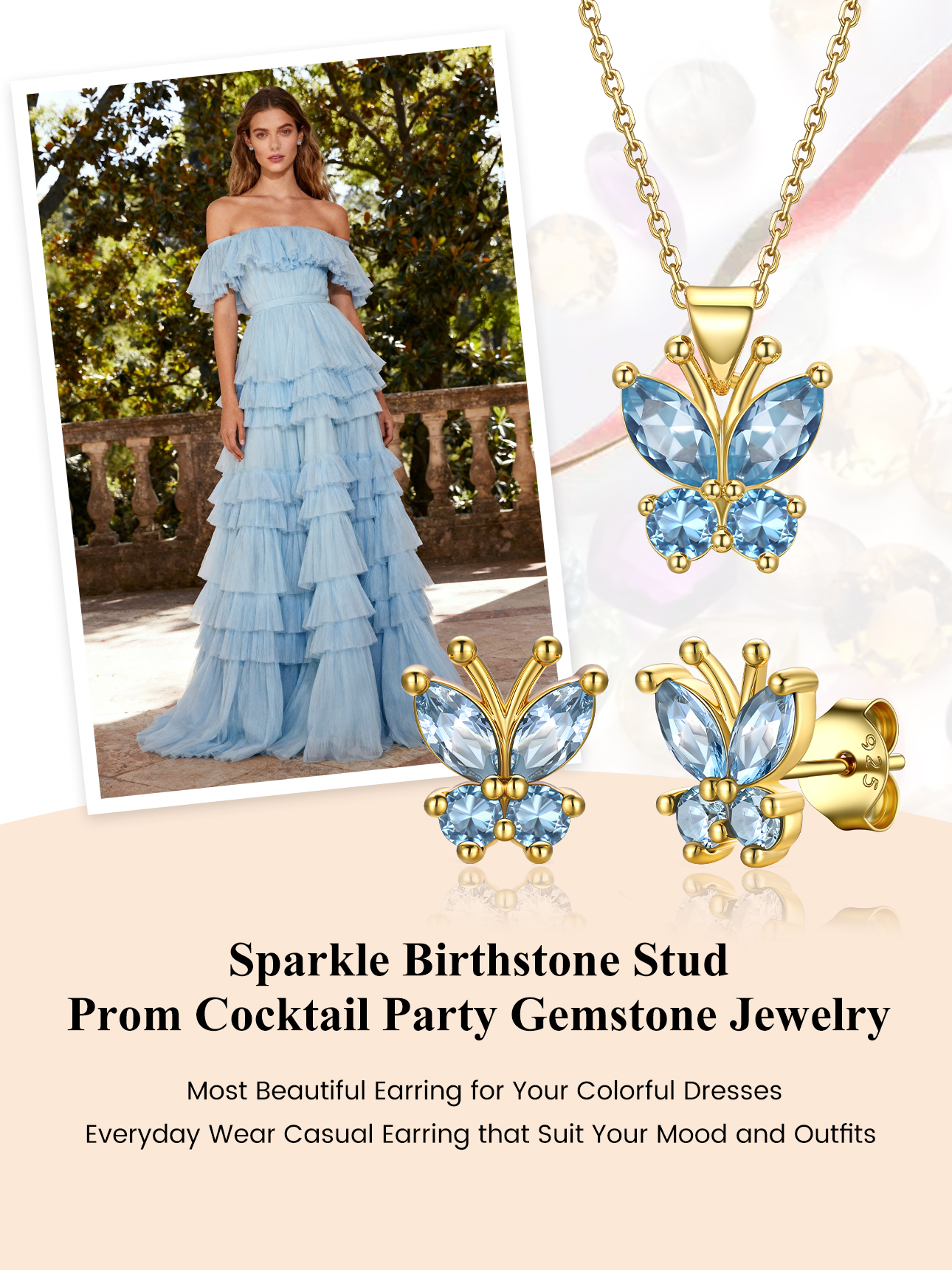 - Material: Brass Base with 925 Sterling Silver Post and 14K Gold Plated, AAA Cubic Zirconia, Synthetic Aquamarine