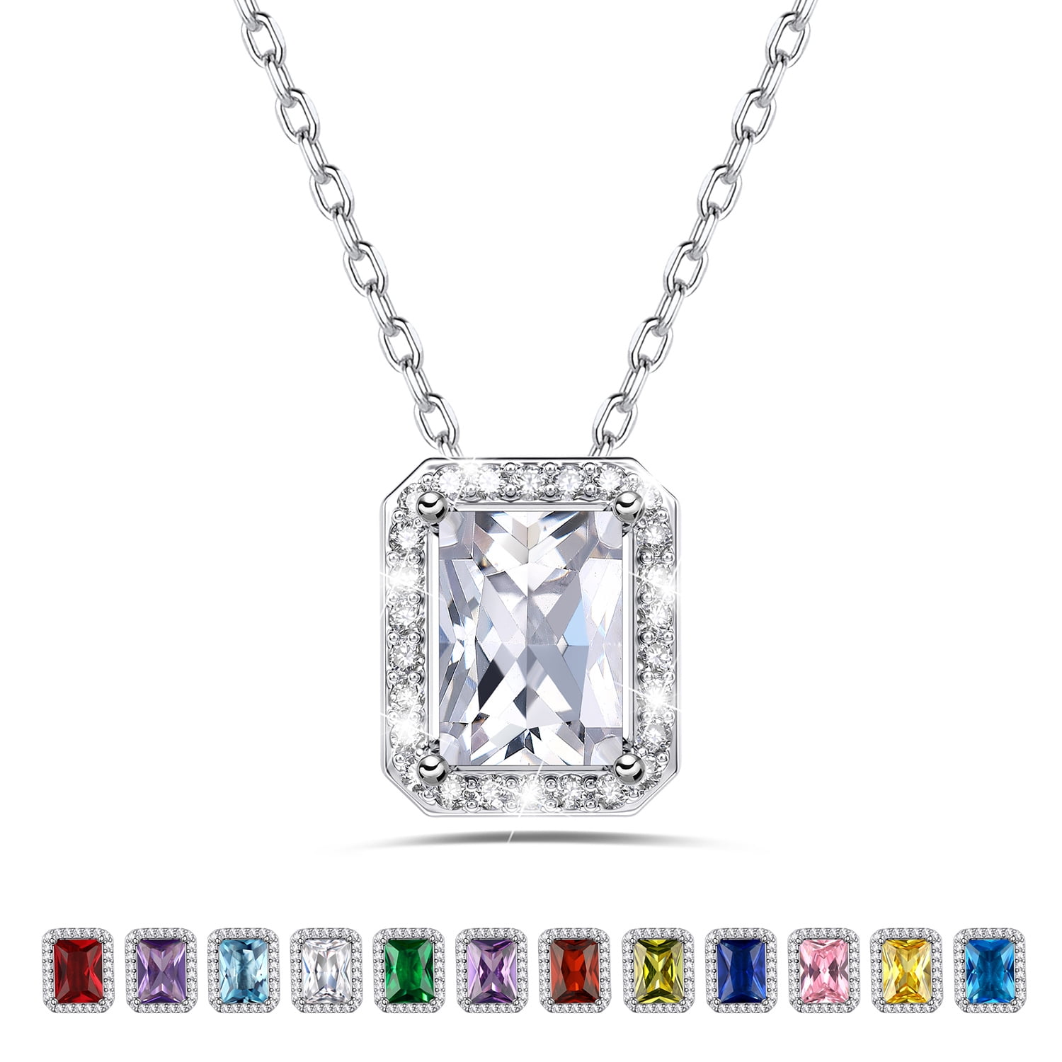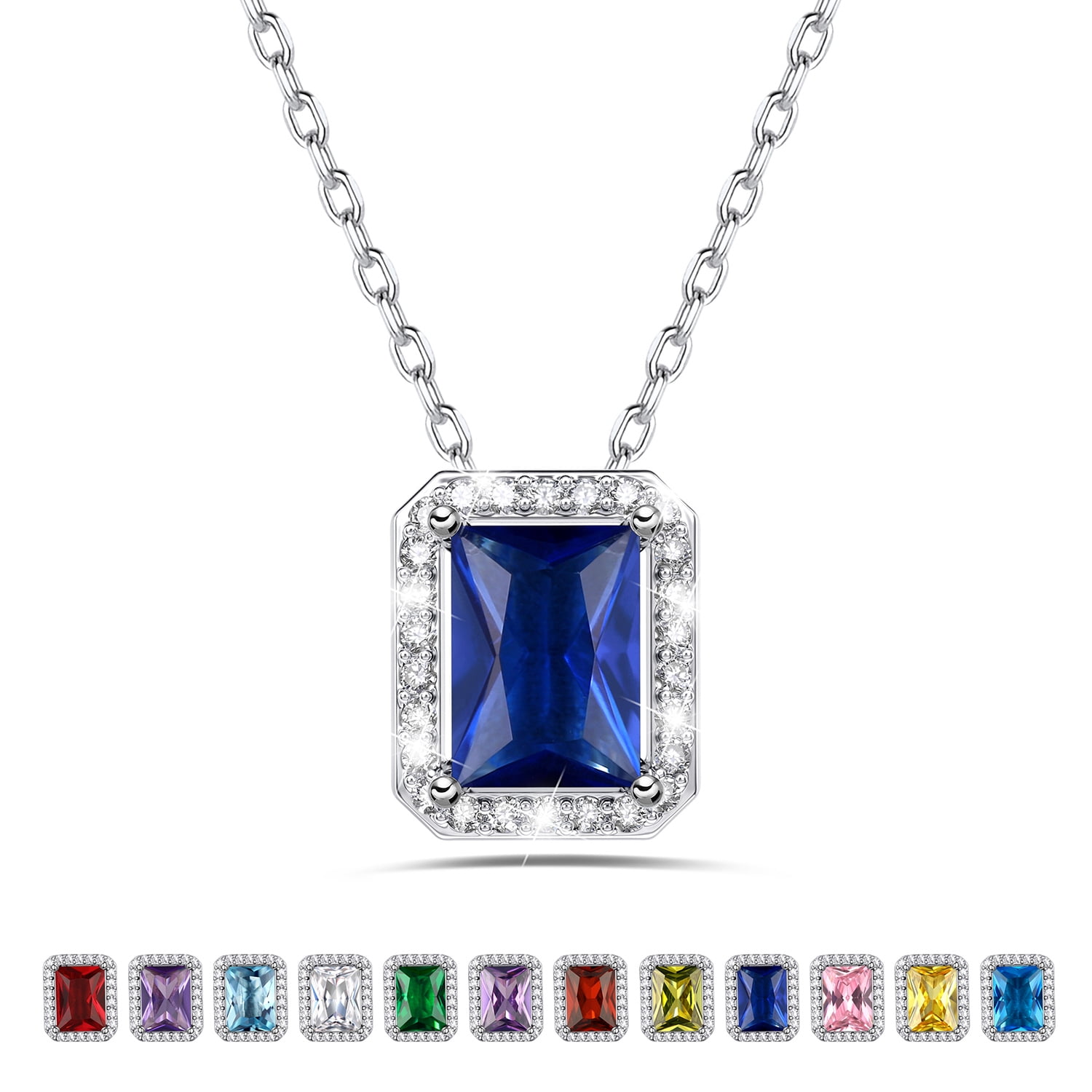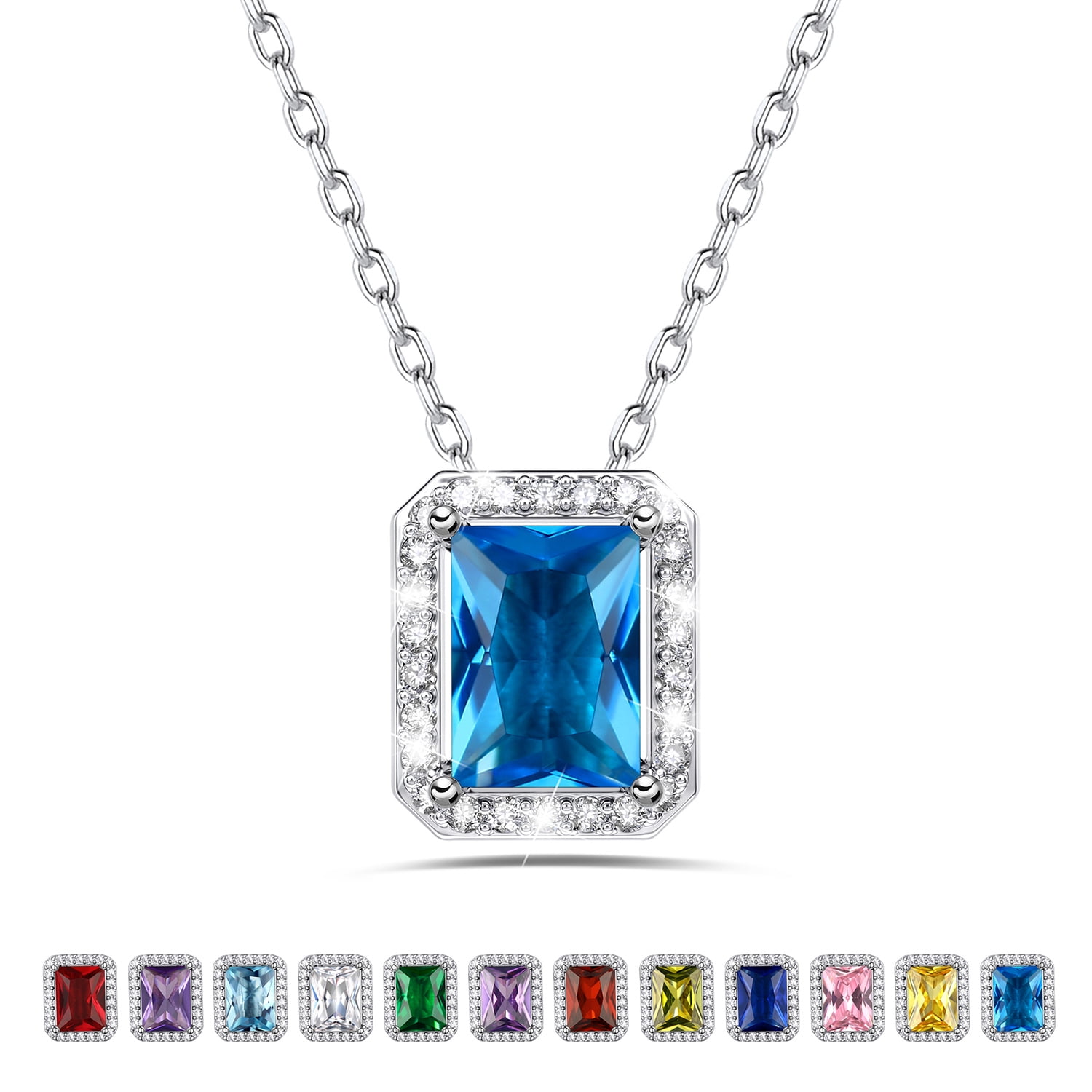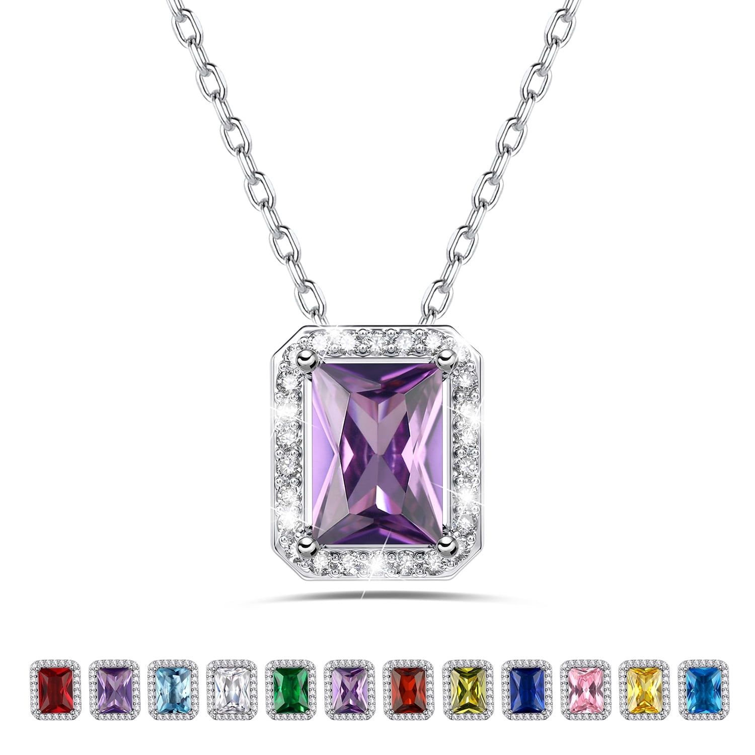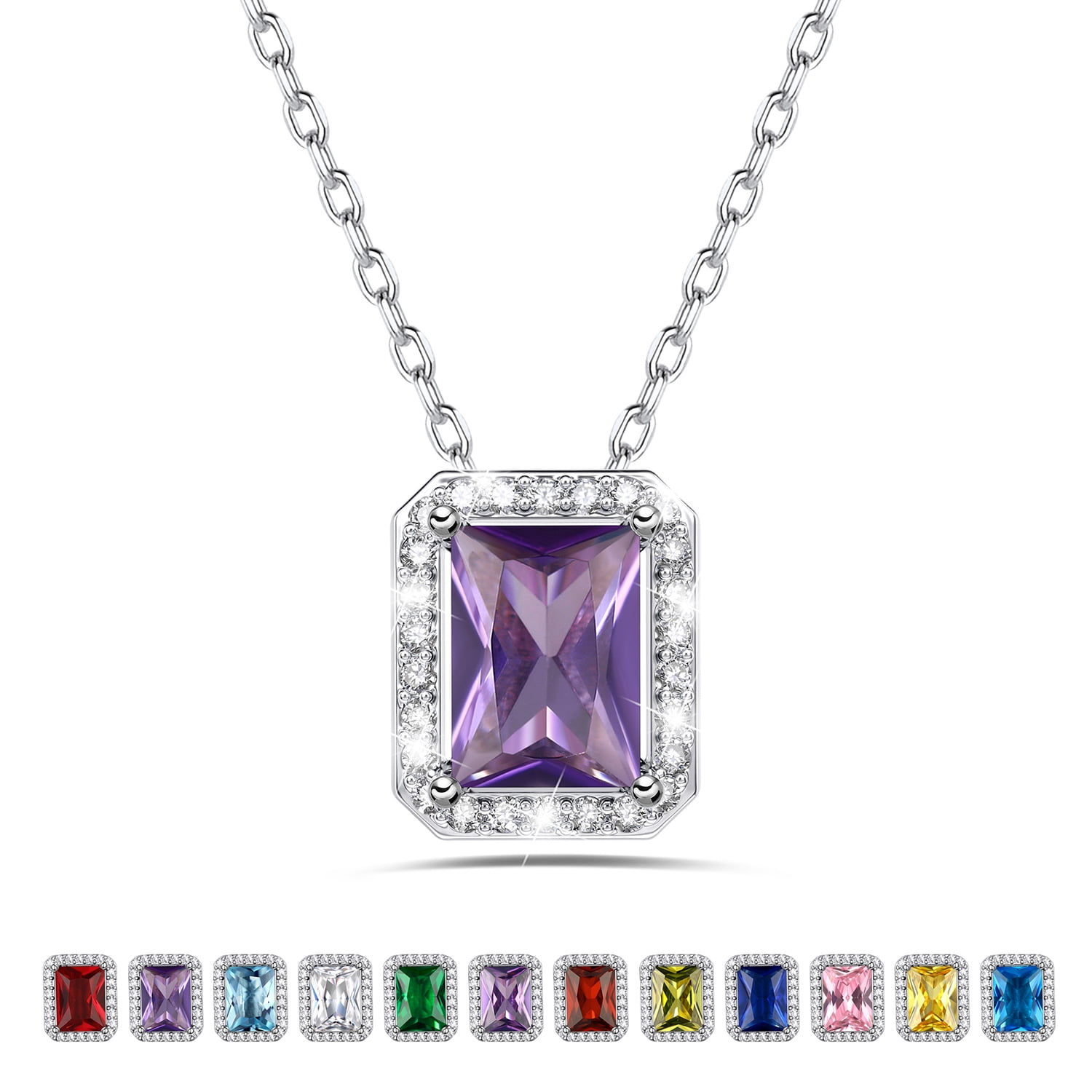 [June - Synthetic Blue Aquamarine Birthstone Necklace] 7mm x 9mm Purple Alexandrite Gemstone Necklace embellished with 1mm white Cubic Zirconia, exquisitely inlaid in high polished 925 Sterling Silver. These glittering crystals will shimmer with the slightest movement. So flattering and sparkling, just like the real diamond! There are 12 different colors of Gemstones, corresponding to the birthstone of each month. You can choose the color according to the birth month.