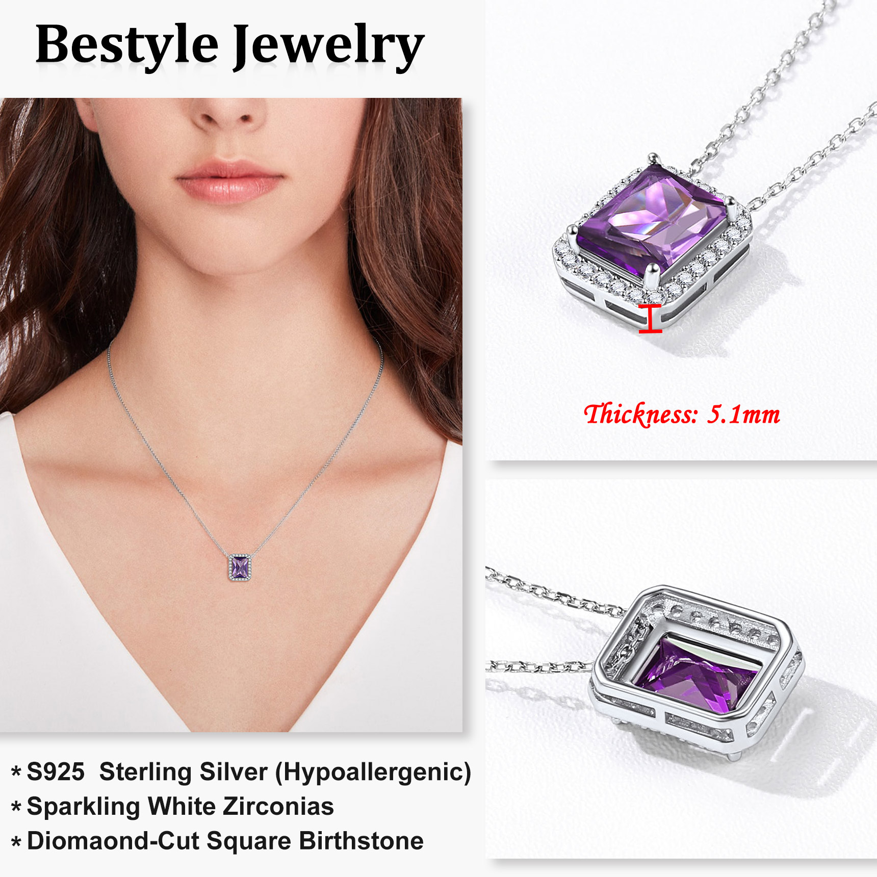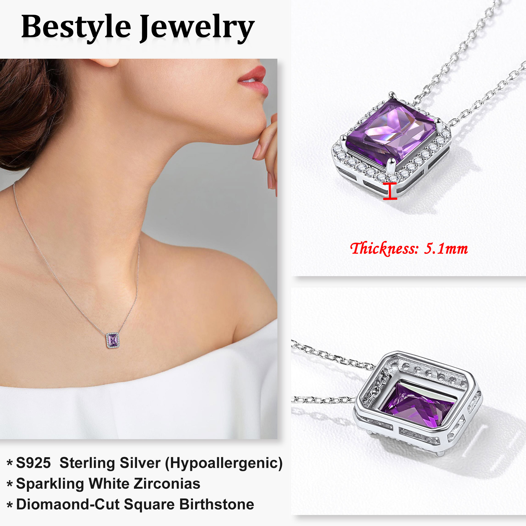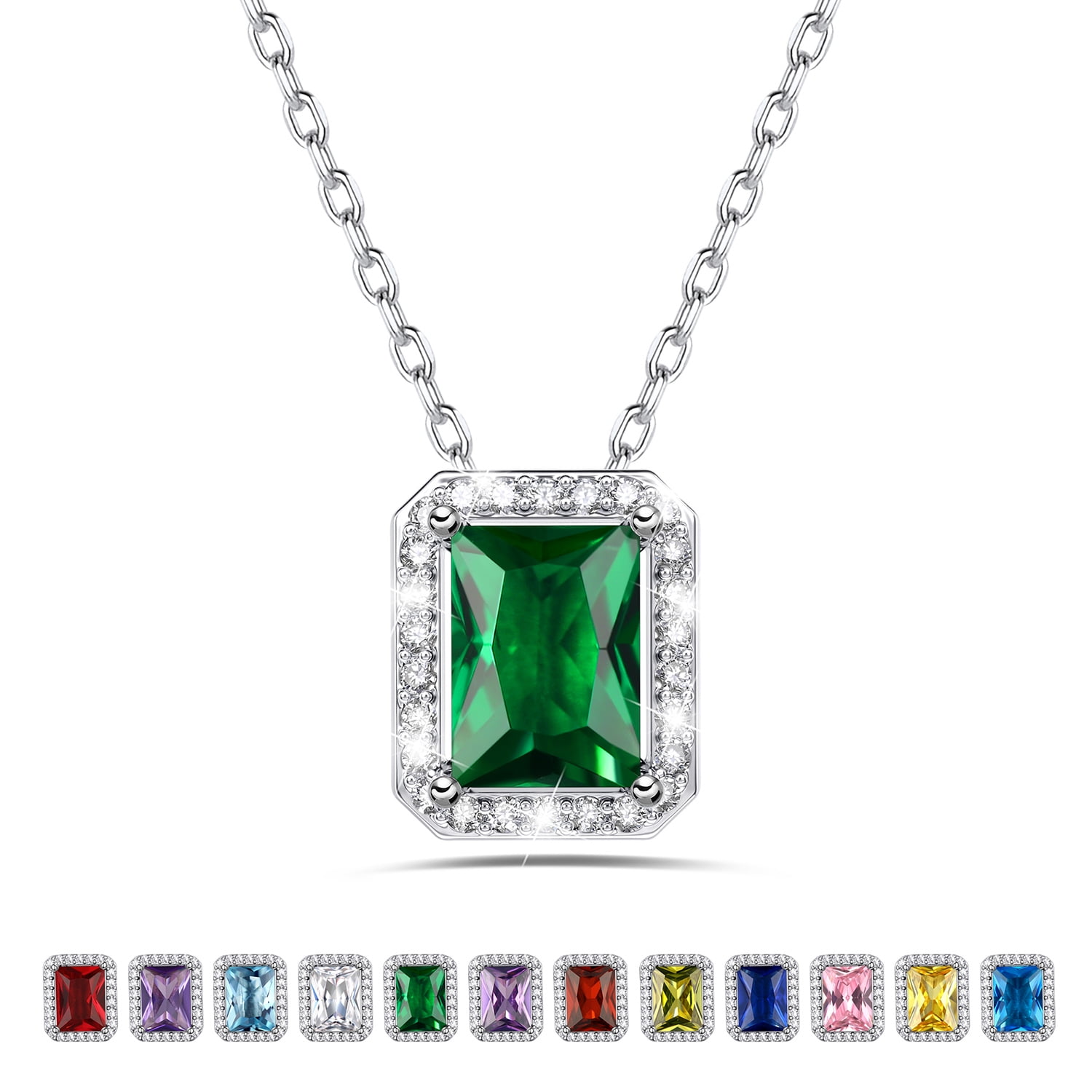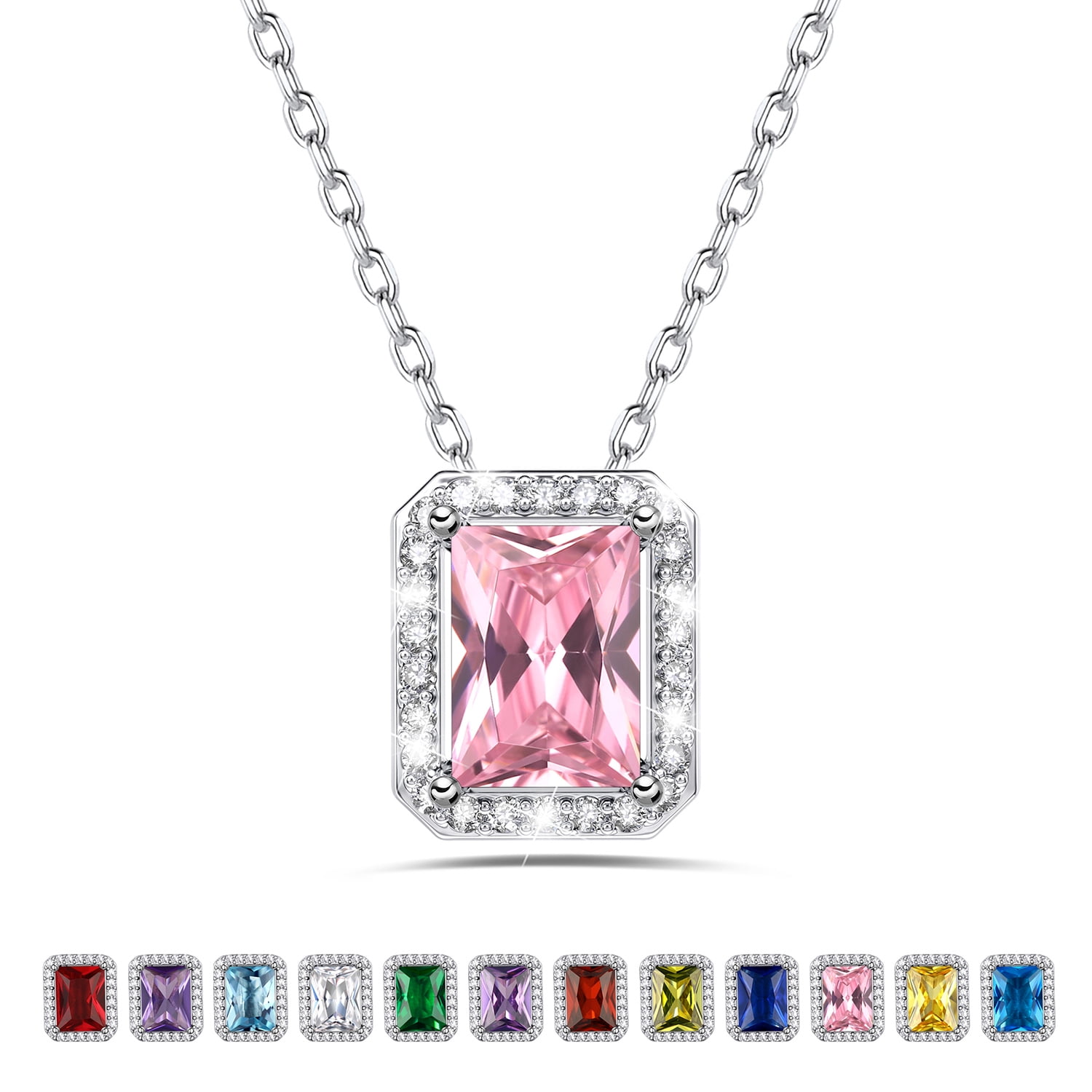 [June - Synthetic Blue Aquamarine Birthstone Necklace] 7mm x 9mm Purple Alexandrite Gemstone Necklace embellished with 1mm white Cubic Zirconia, exquisitely inlaid in high polished 925 Sterling Silver. These glittering crystals will shimmer with the slightest movement. So flattering and sparkling, just like the real diamond! There are 12 different colors of Gemstones, corresponding to the birthstone of each month. You can choose the color according to the birth month.