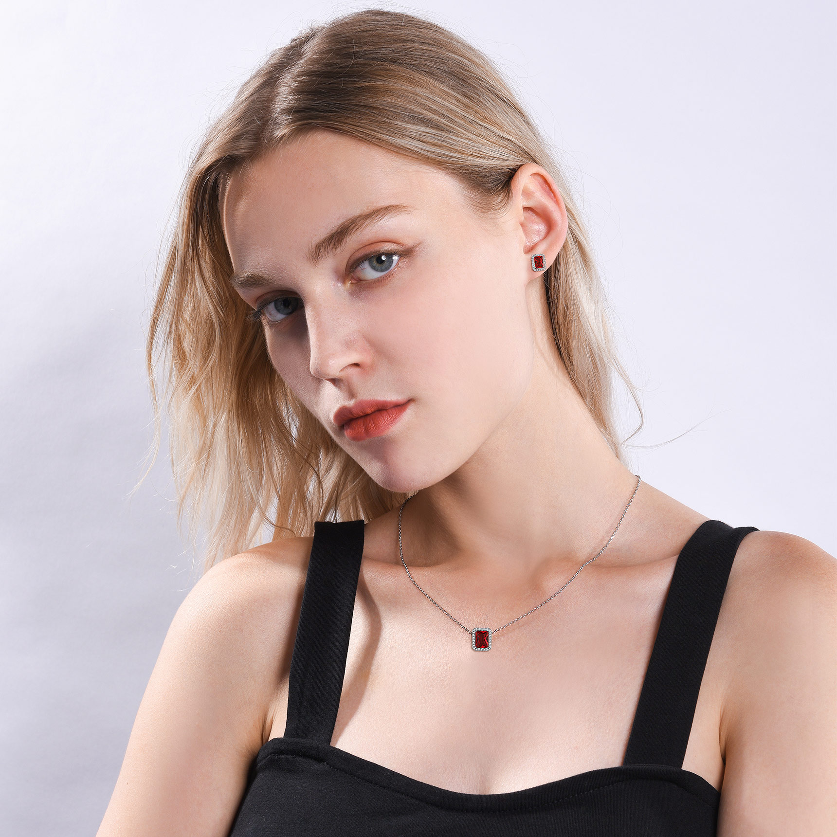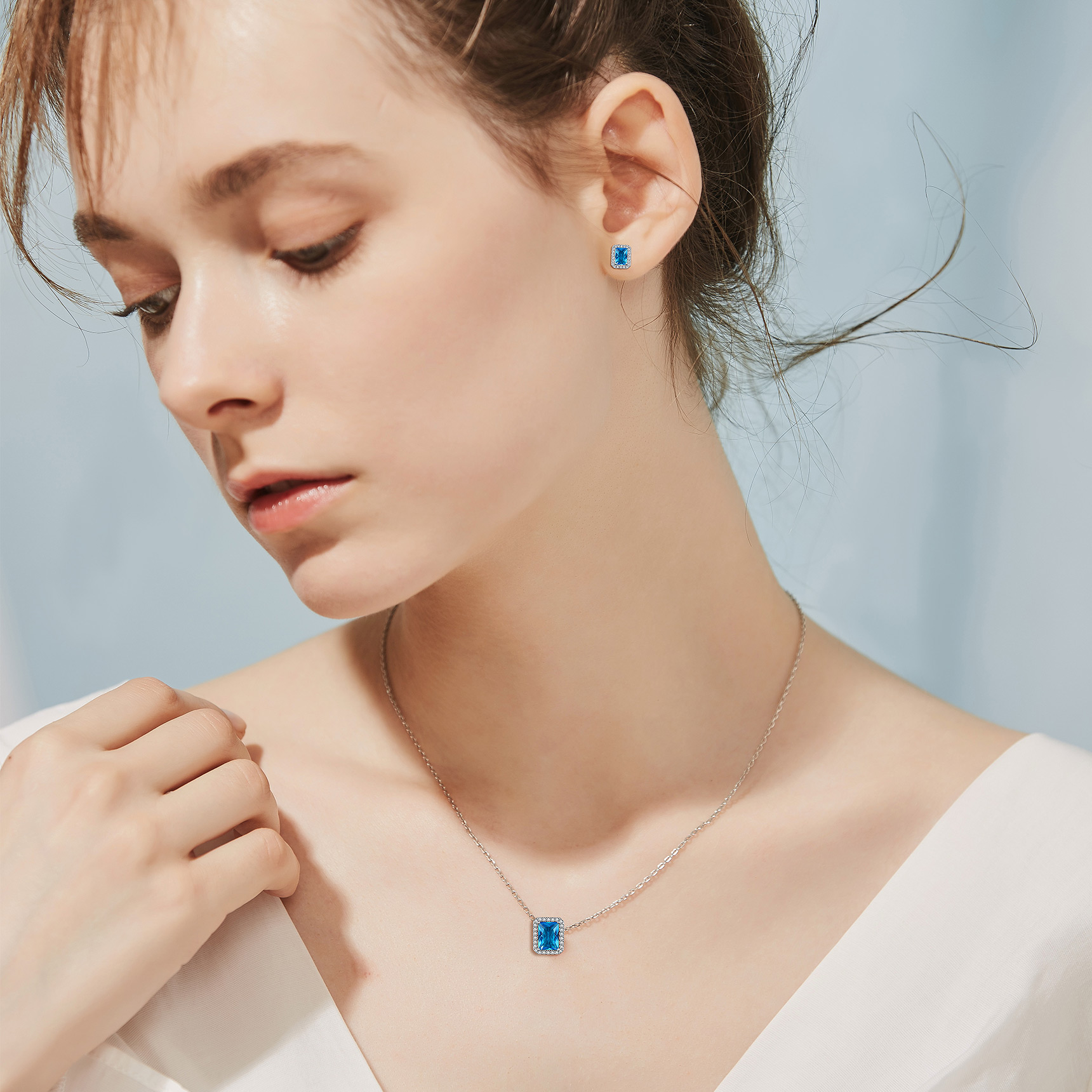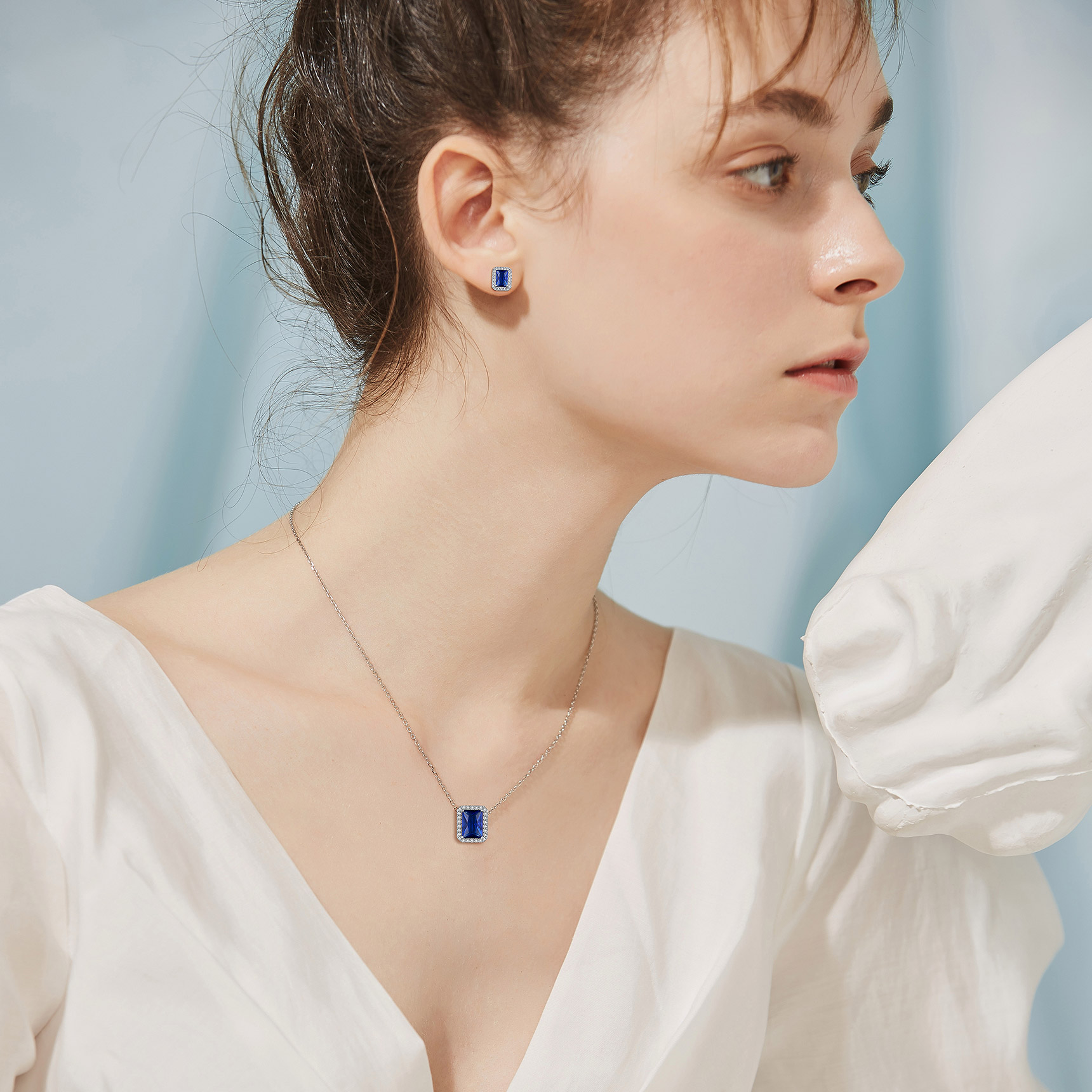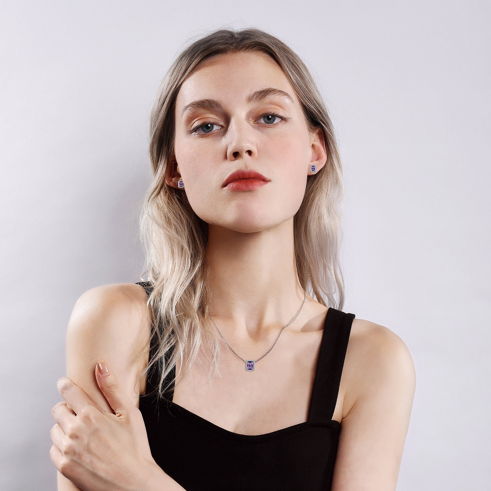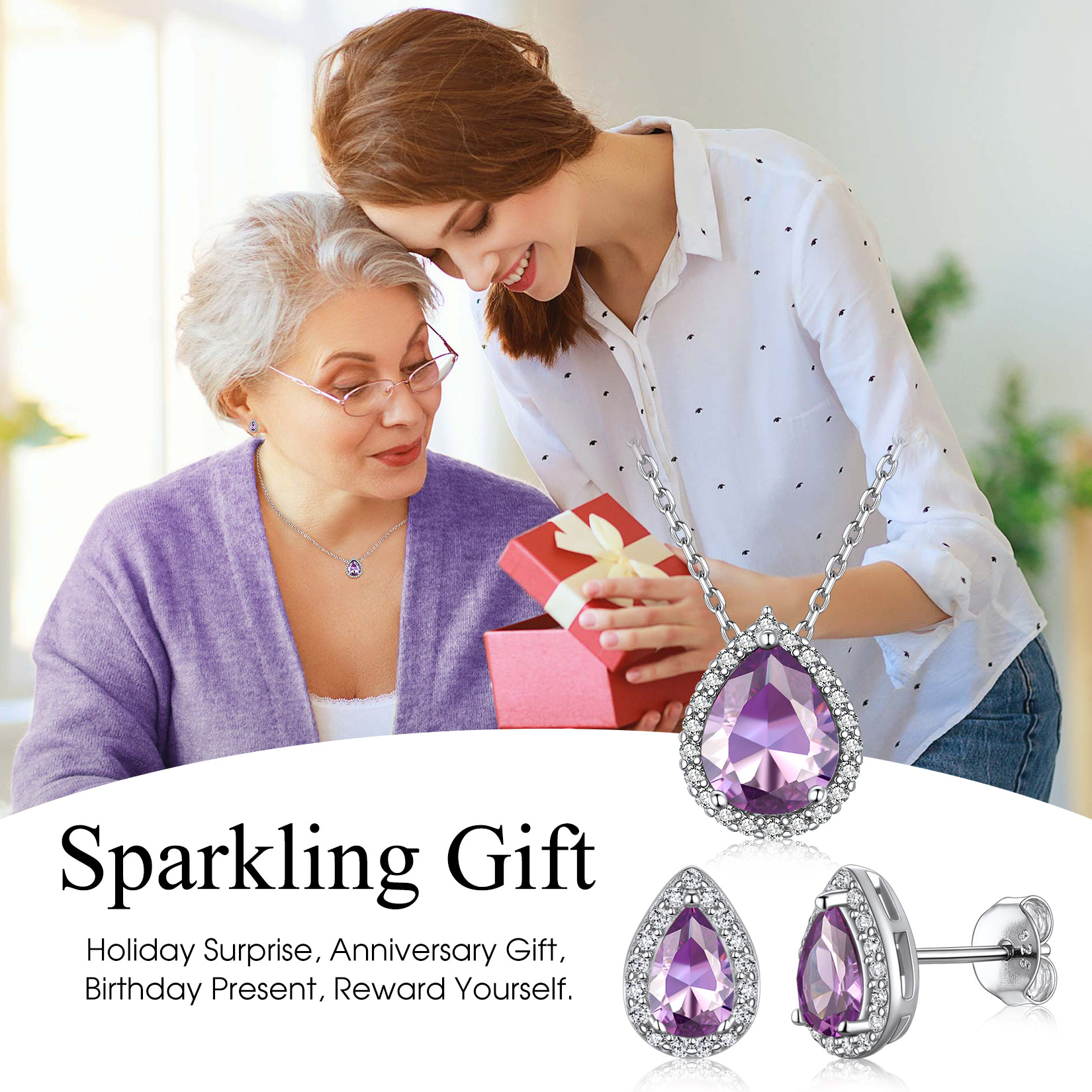 [June - Synthetic Blue Aquamarine Birthstone Necklace] 7mm x 9mm Purple Alexandrite Gemstone Necklace embellished with 1mm white Cubic Zirconia, exquisitely inlaid in high polished 925 Sterling Silver. These glittering crystals will shimmer with the slightest movement. So flattering and sparkling, just like the real diamond! There are 12 different colors of Gemstones, corresponding to the birthstone of each month. You can choose the color according to the birth month.