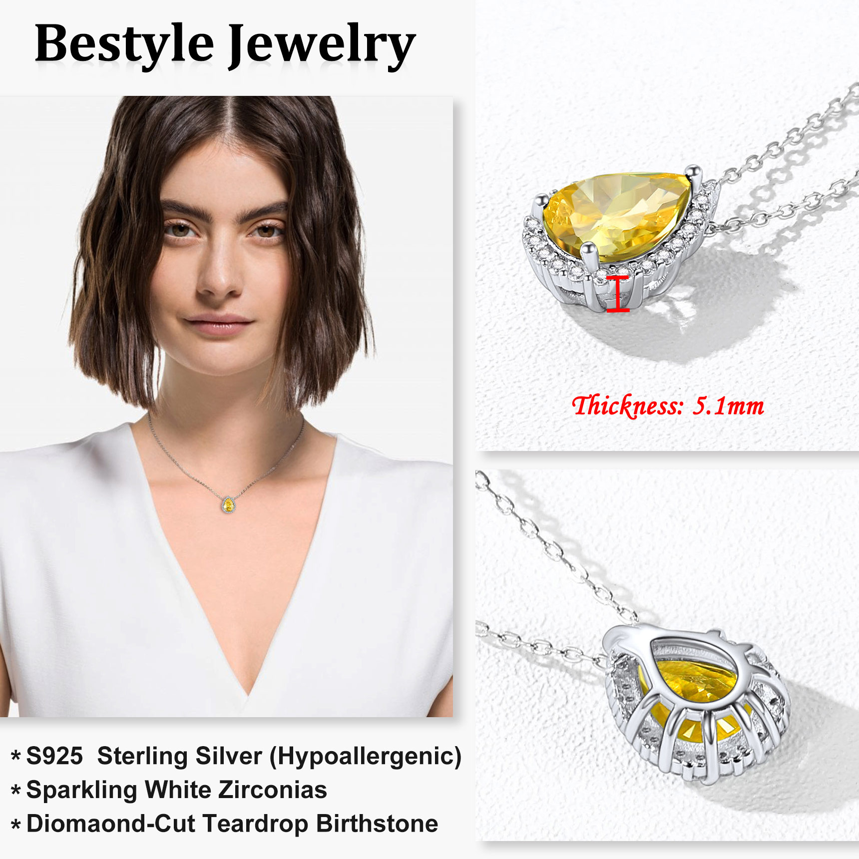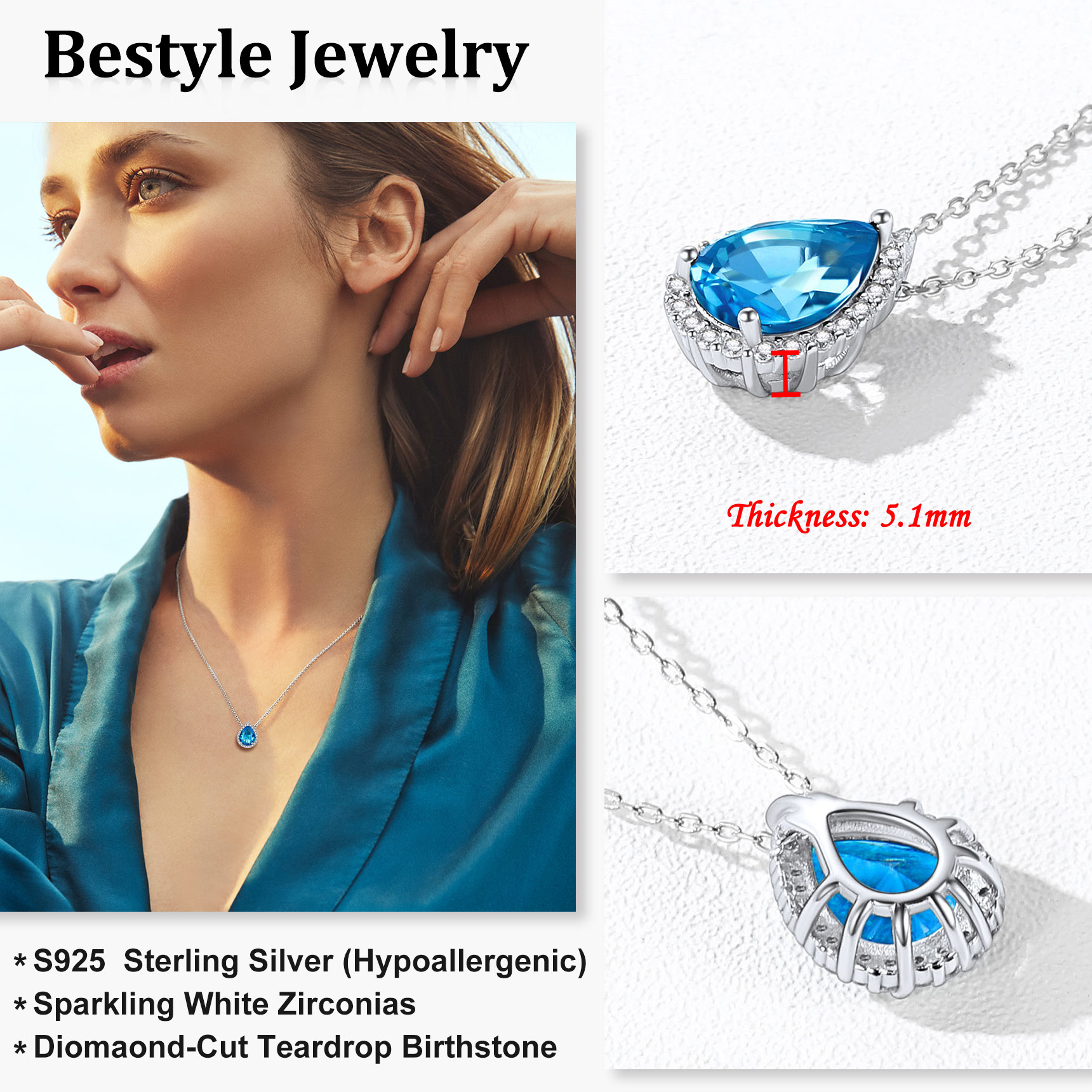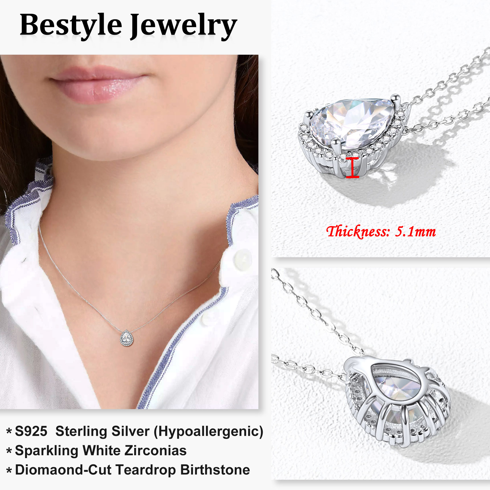 [Women Teardrop Cut Diamond Pendant Necklace] For a timeless, elegant style, there is nothing better than the Bestyle Diamond Necklace jewelry! This teardrop crystal chain necklace is undying neck fashion among the trend-conscious. It will create an elegant look around your neck and illuminate your face. Sterling silver birthstone necklace is shiny and classic which will make you special, so stylish to catch your audience's eyes and stand out the crowed.