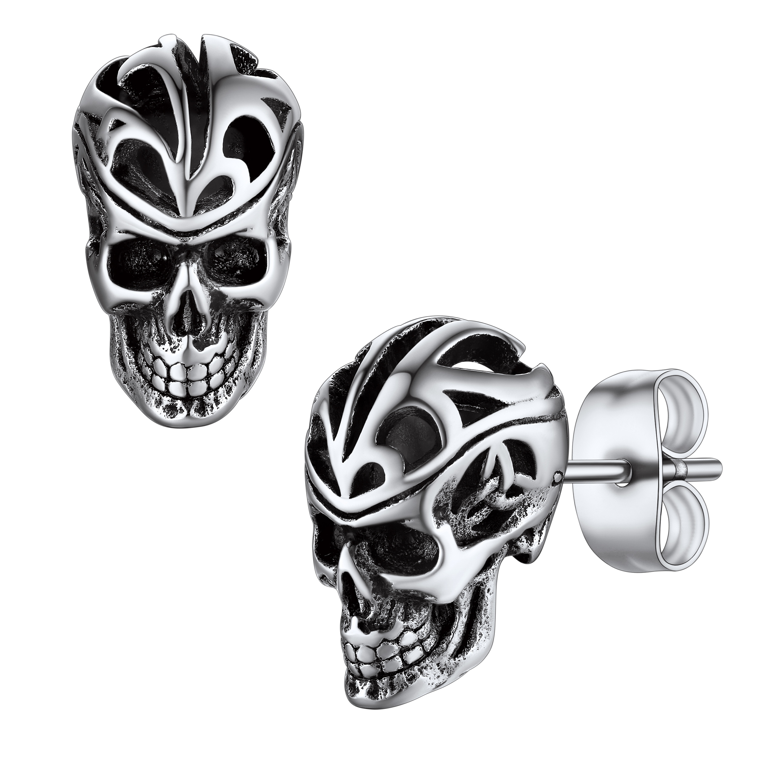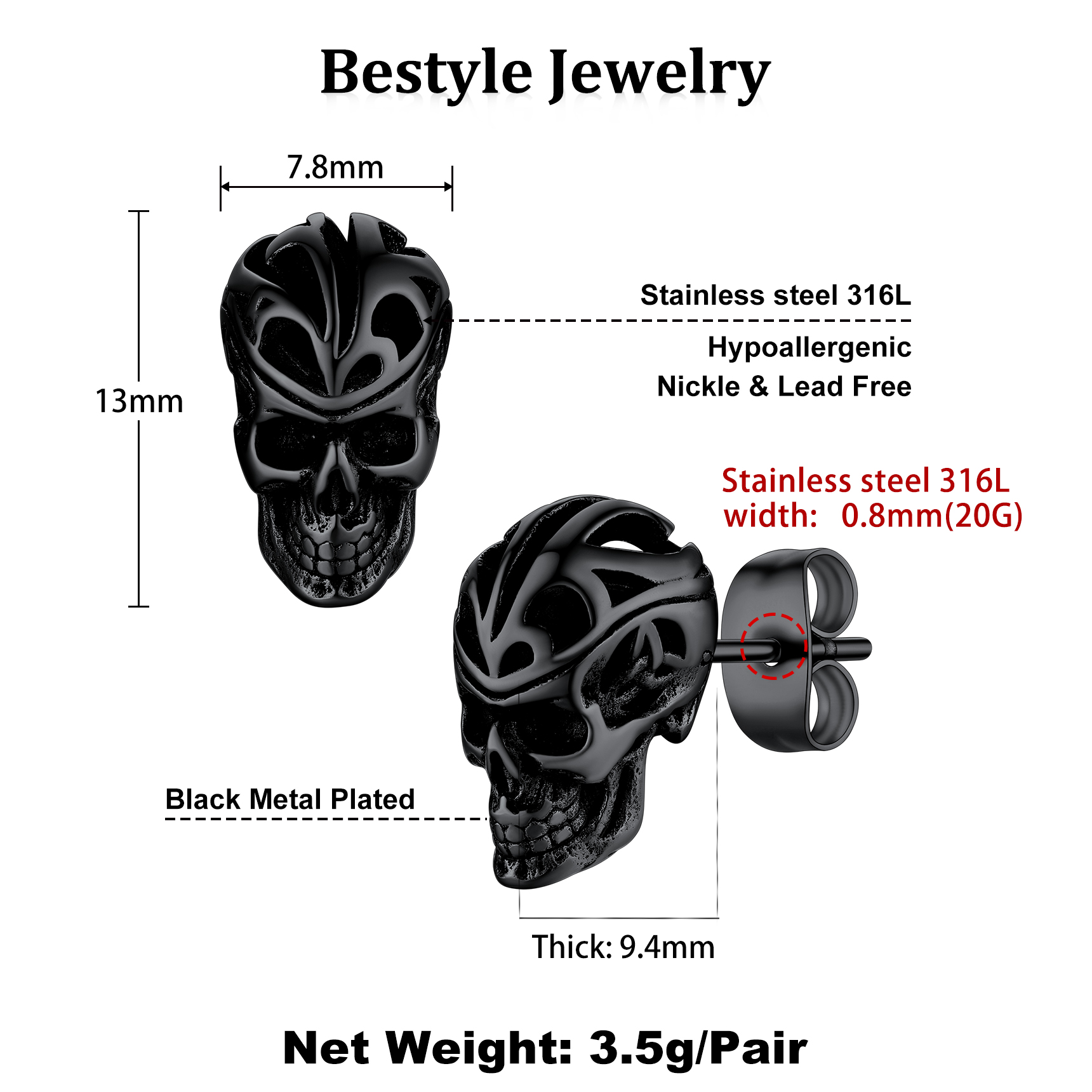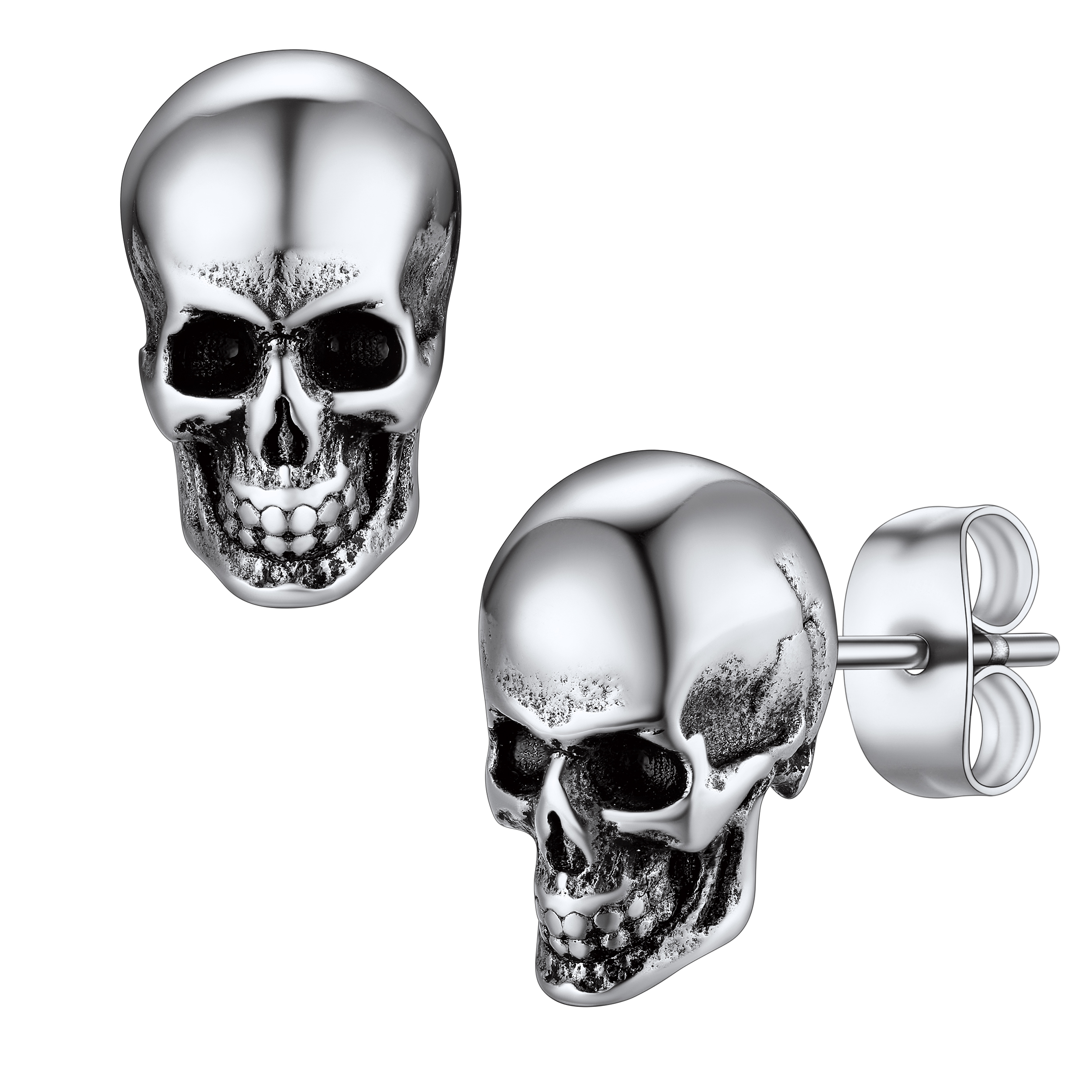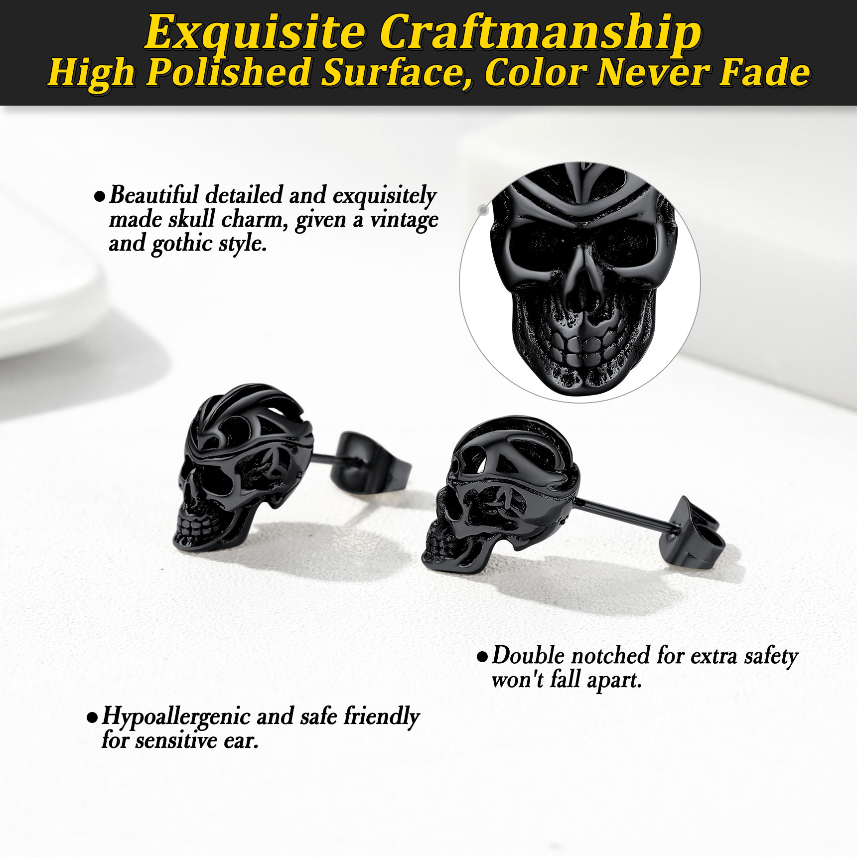 Punk Earrings for Teen Boys - Skull stud size: 12 x 7.8x 9.4mm, Net weight: 3.5g/pair; Lightweight, Comfort Fit.