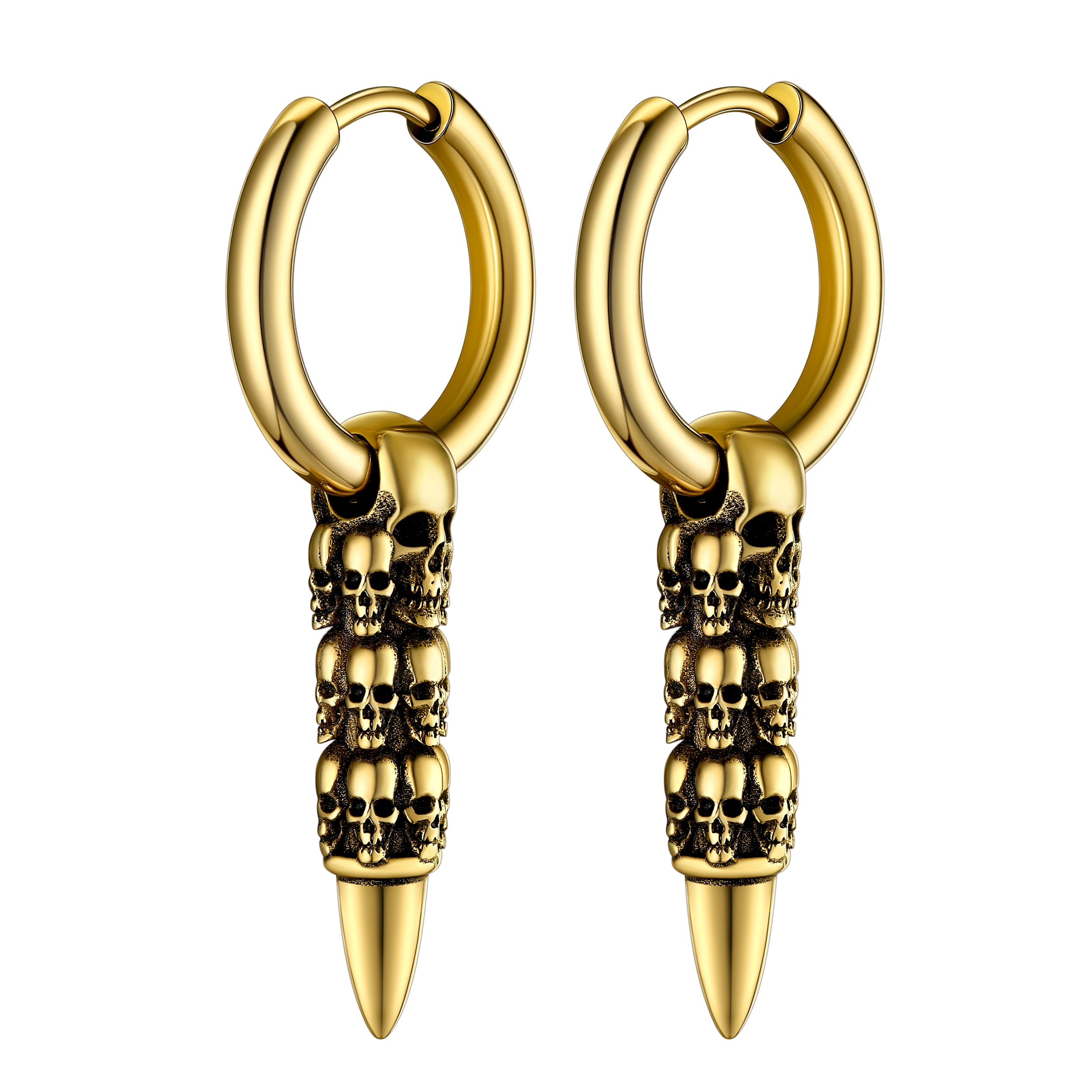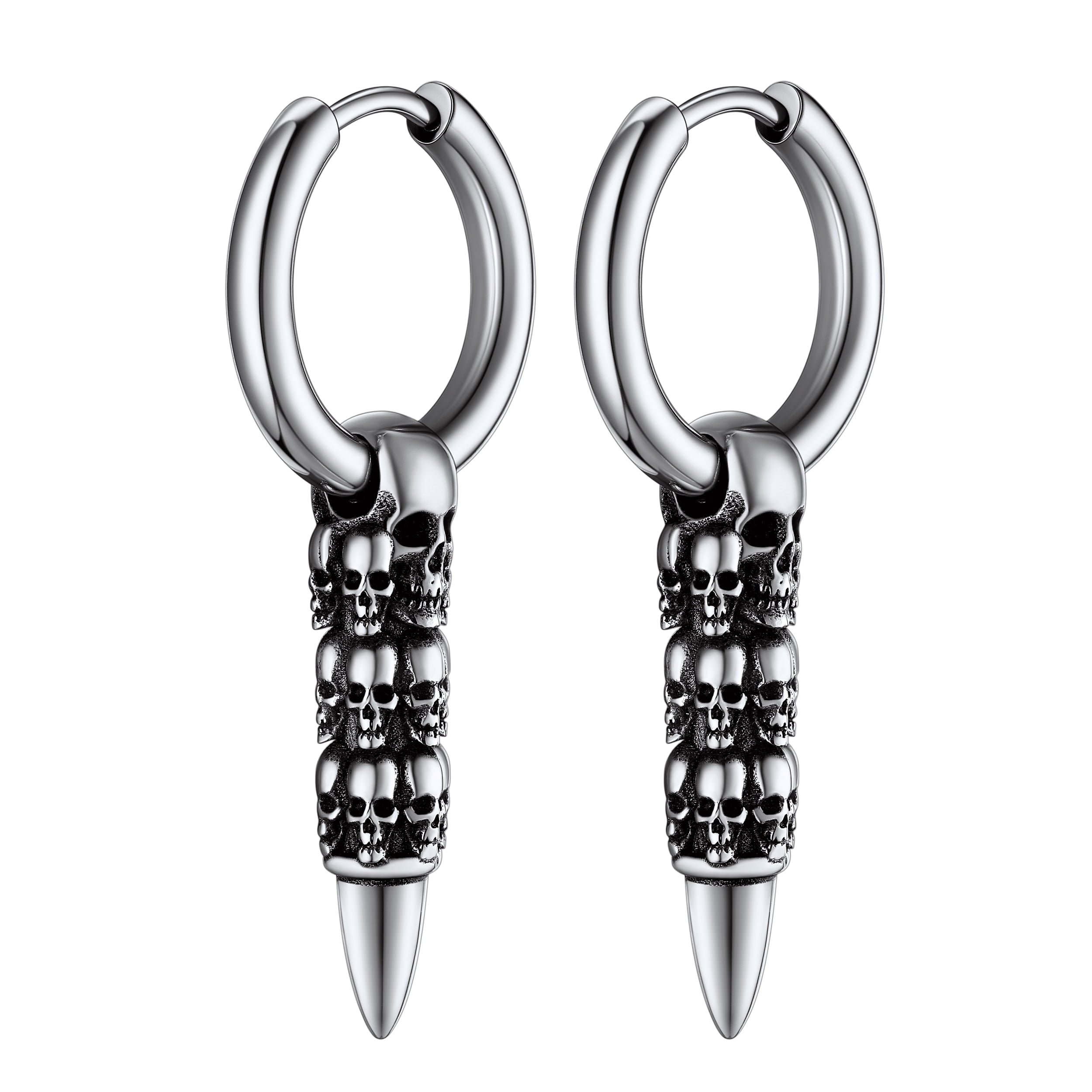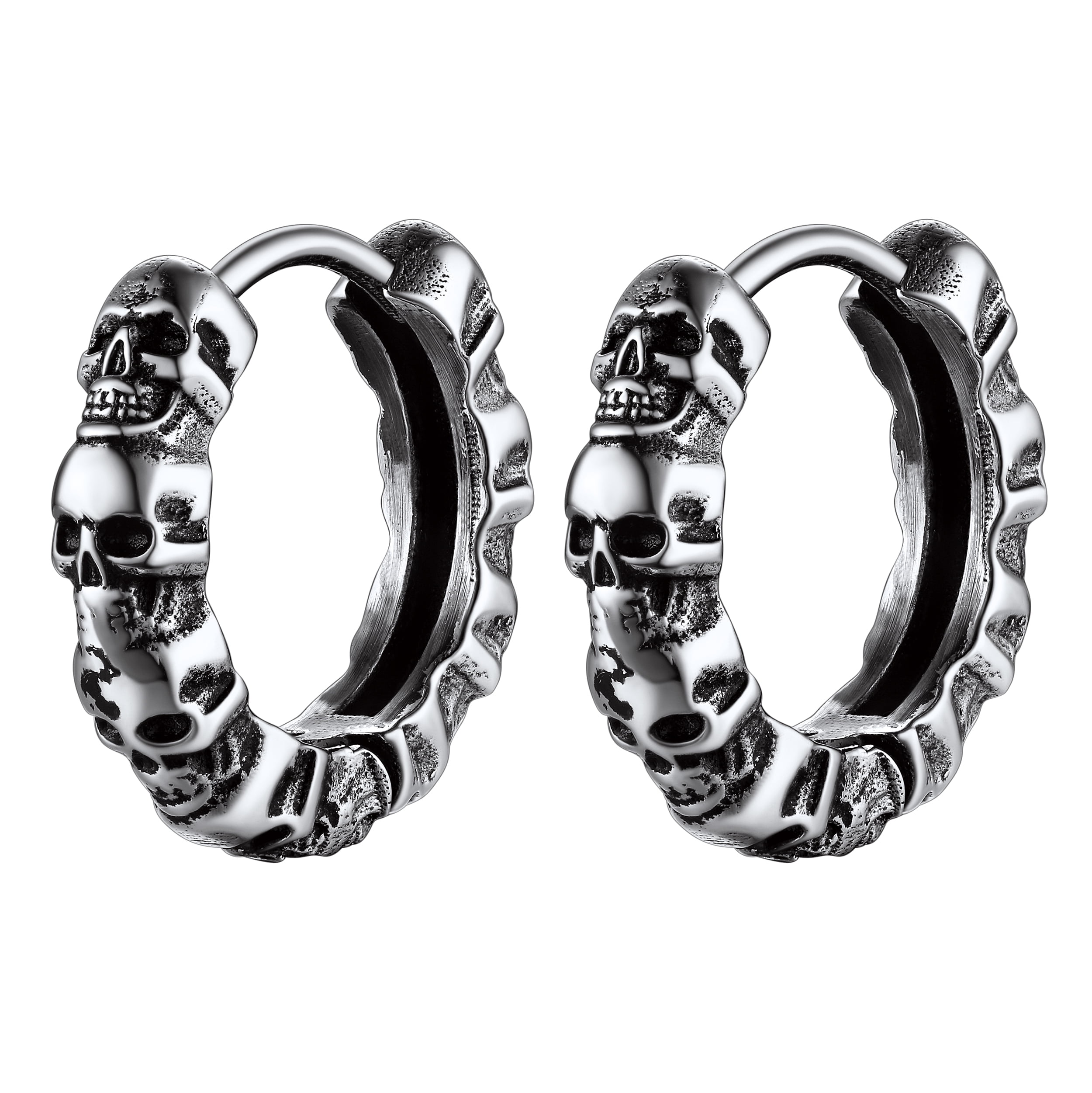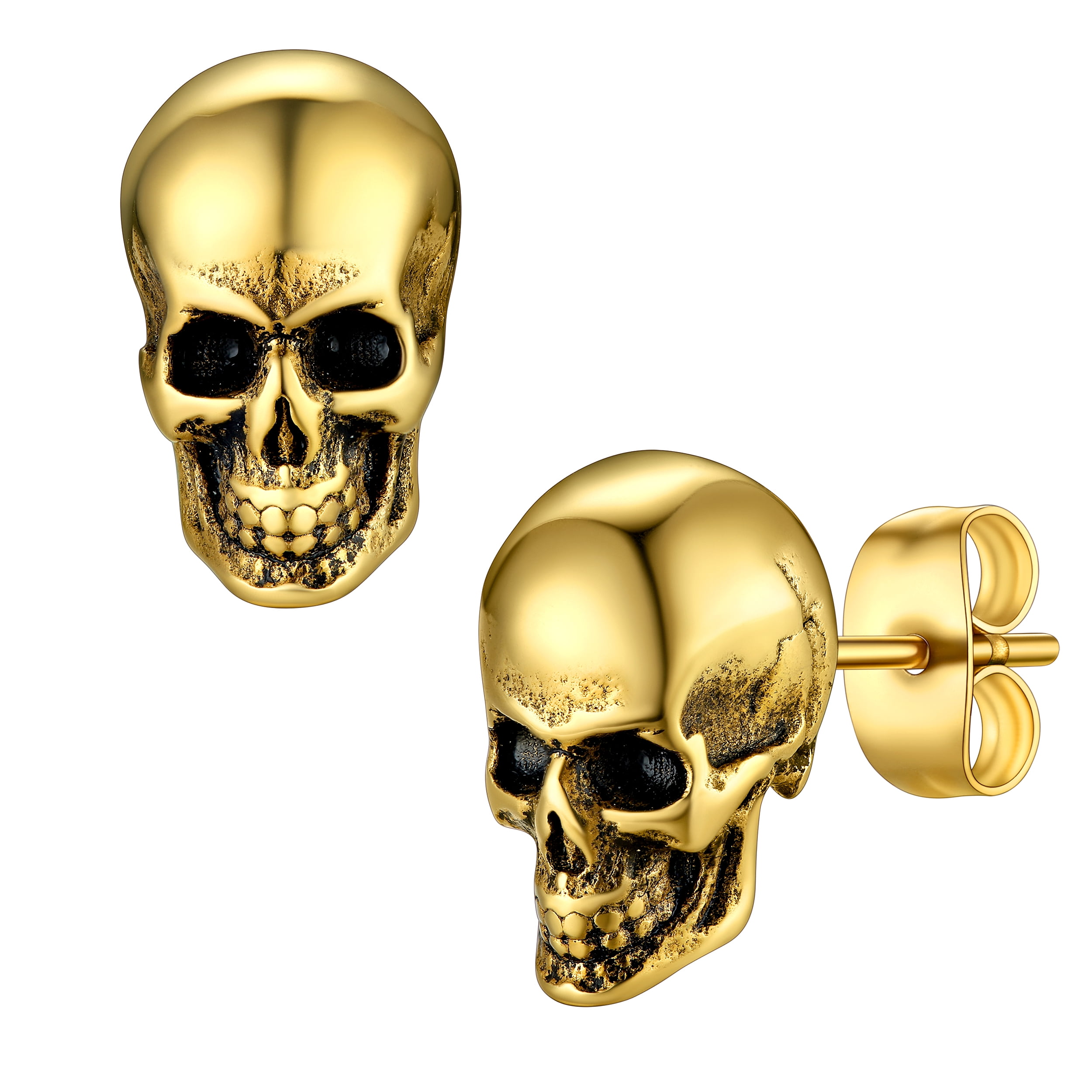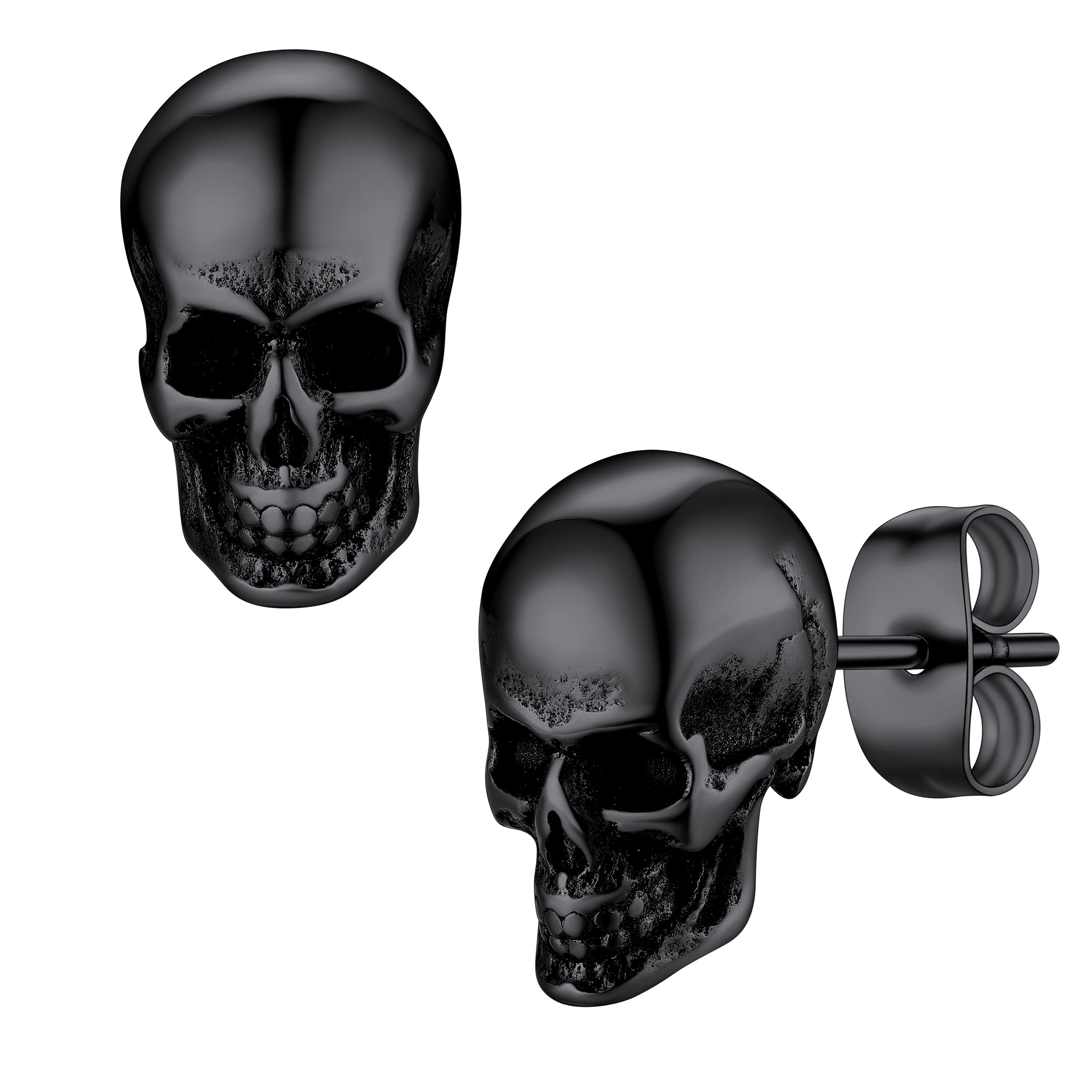 Punk Earrings for Teen Boys - Skull stud size: 12 x 7.8x 9.4mm, Net weight: 3.5g/pair; Lightweight, Comfort Fit.