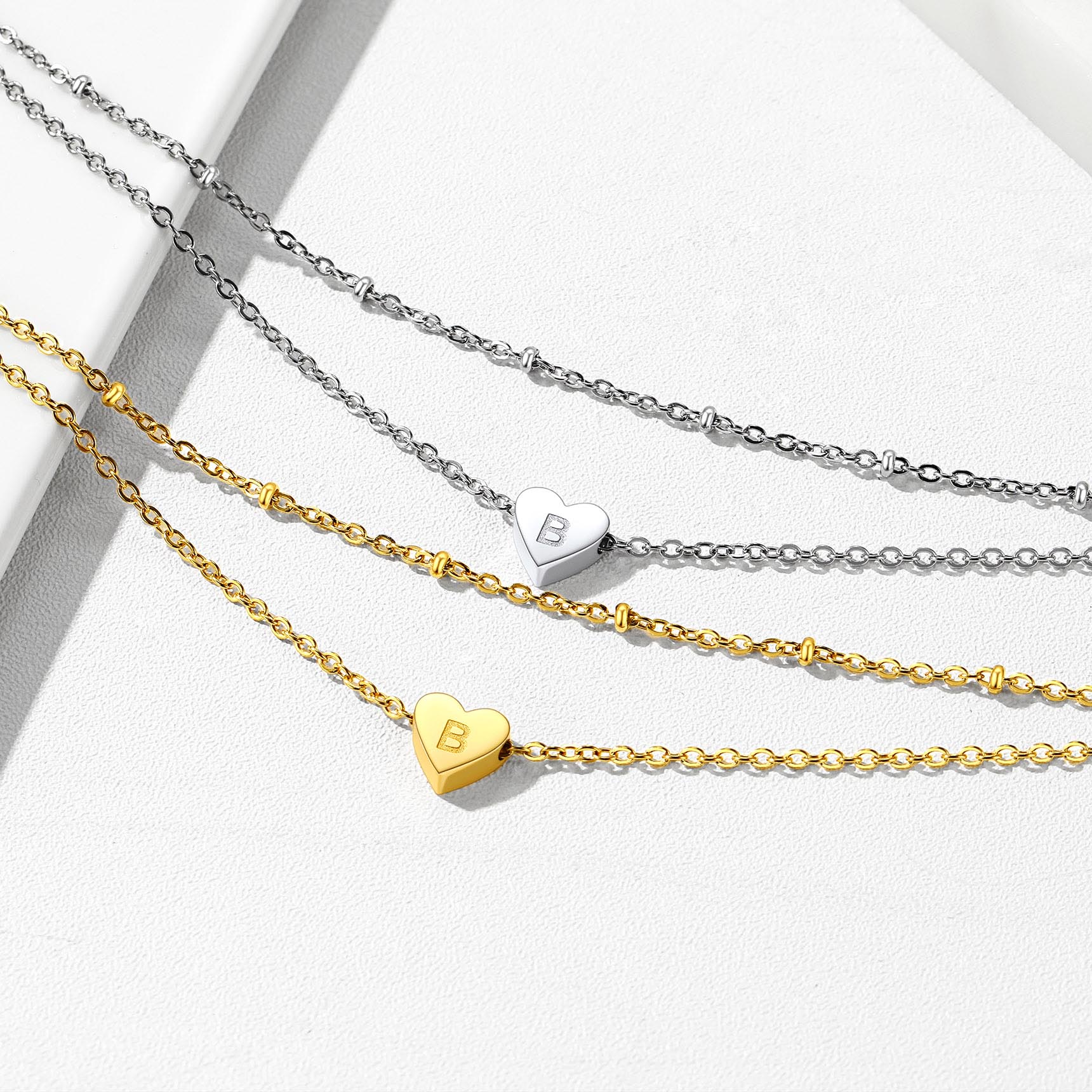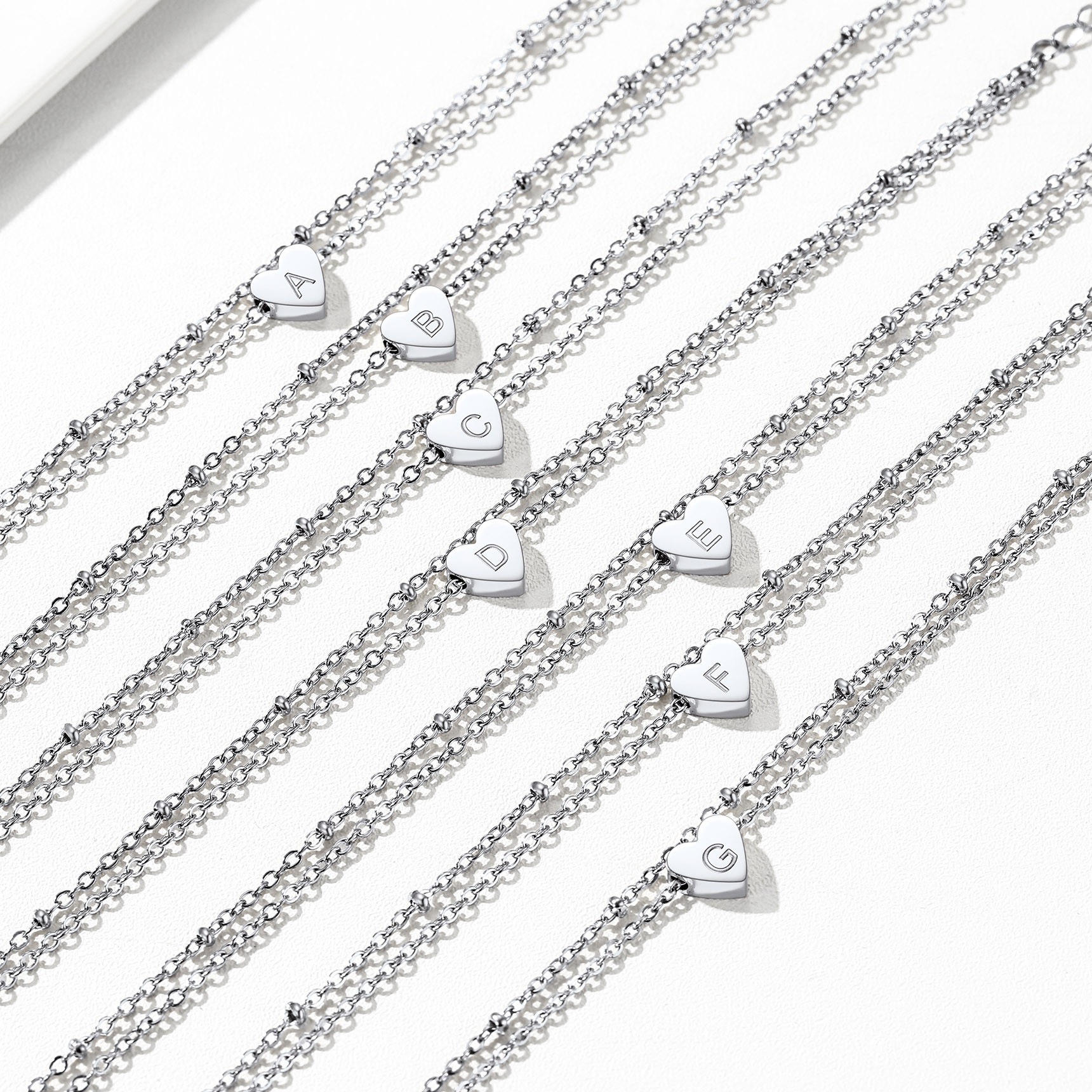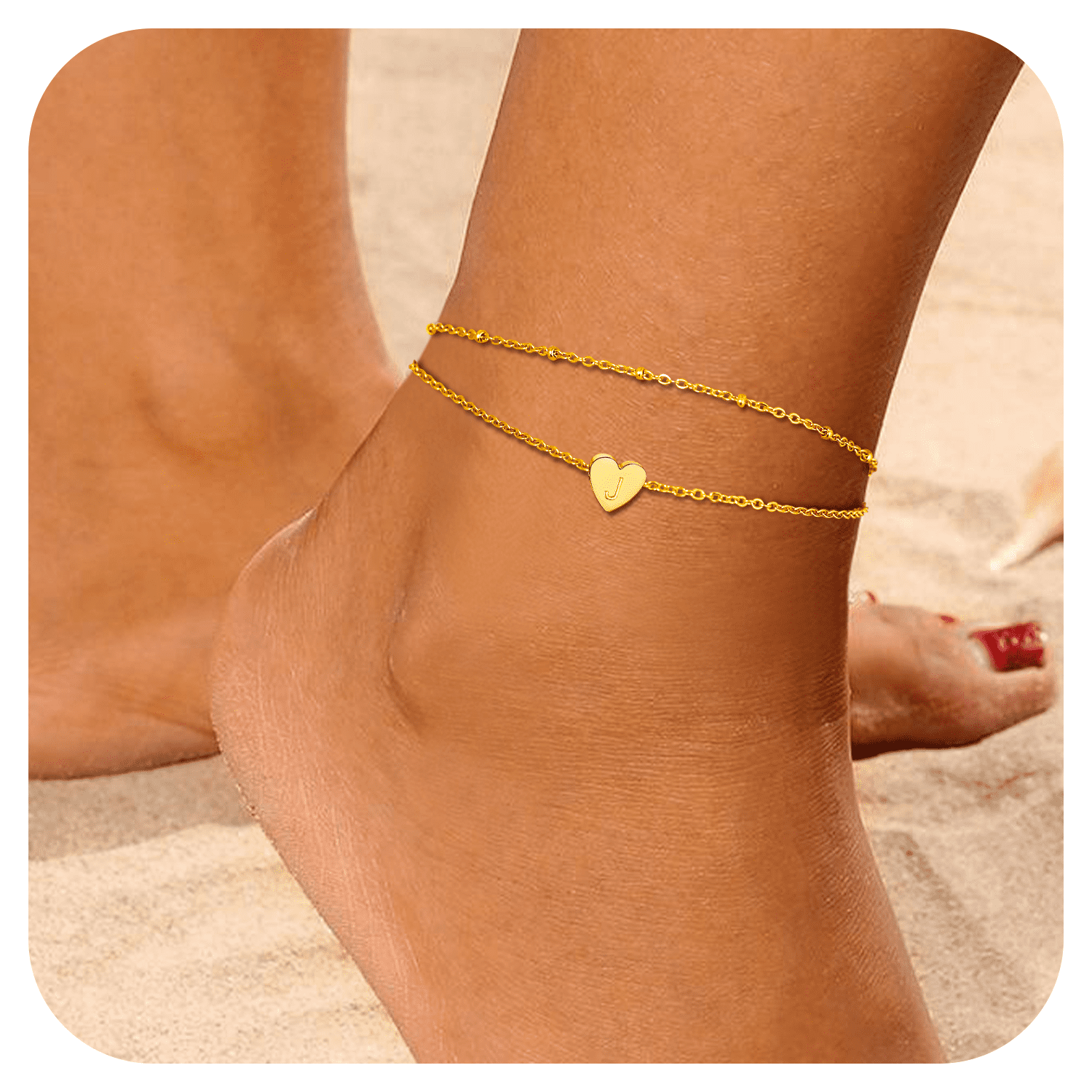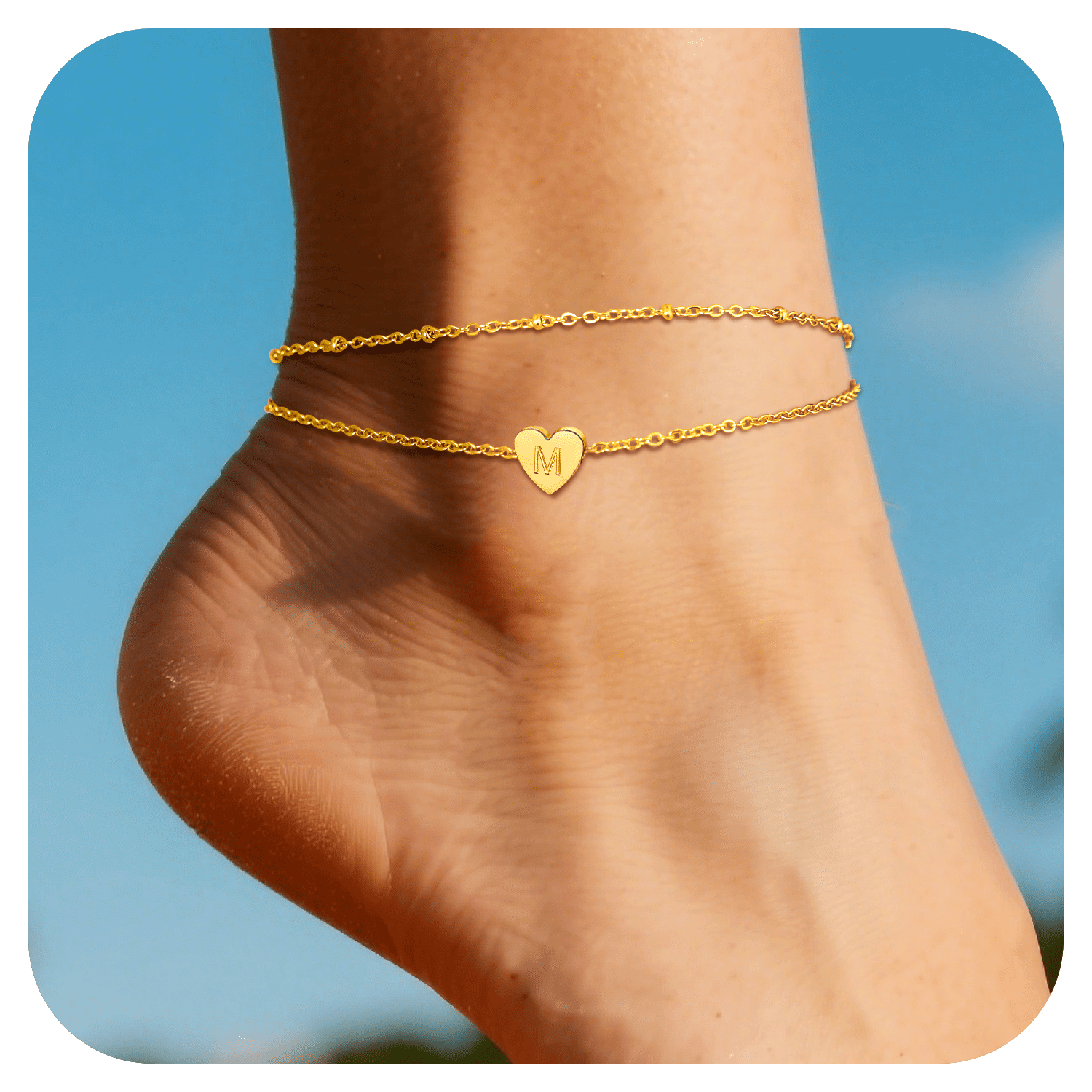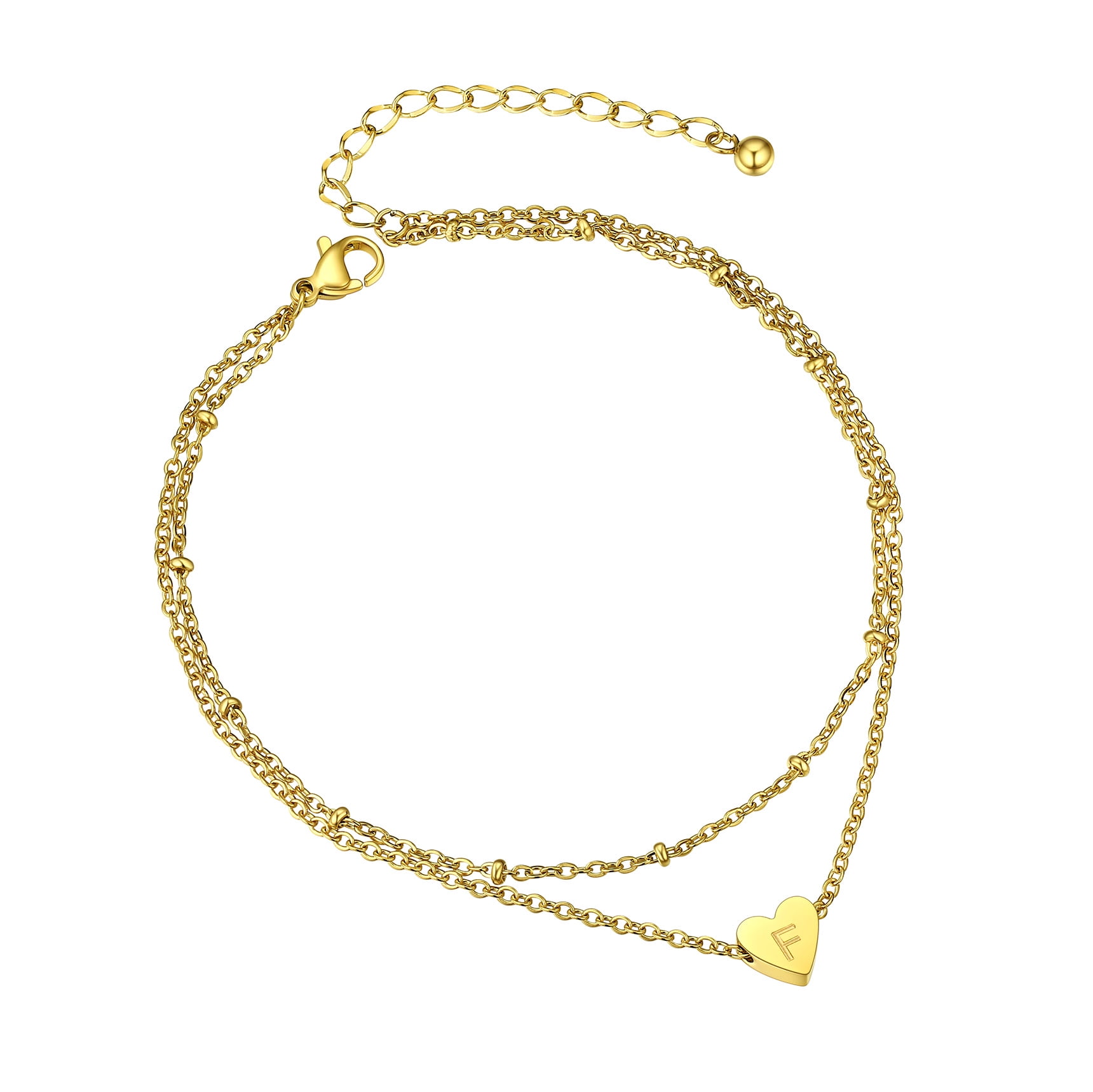 Heart Initial Anklets Bracelet - Our minimal-but-majorly-cool double chain anklet is twice as nice! This layered design features both a delicate rolo chain with heart initial bead and a satellite chain for a simple style that still stands out among all other Plain Anklets.