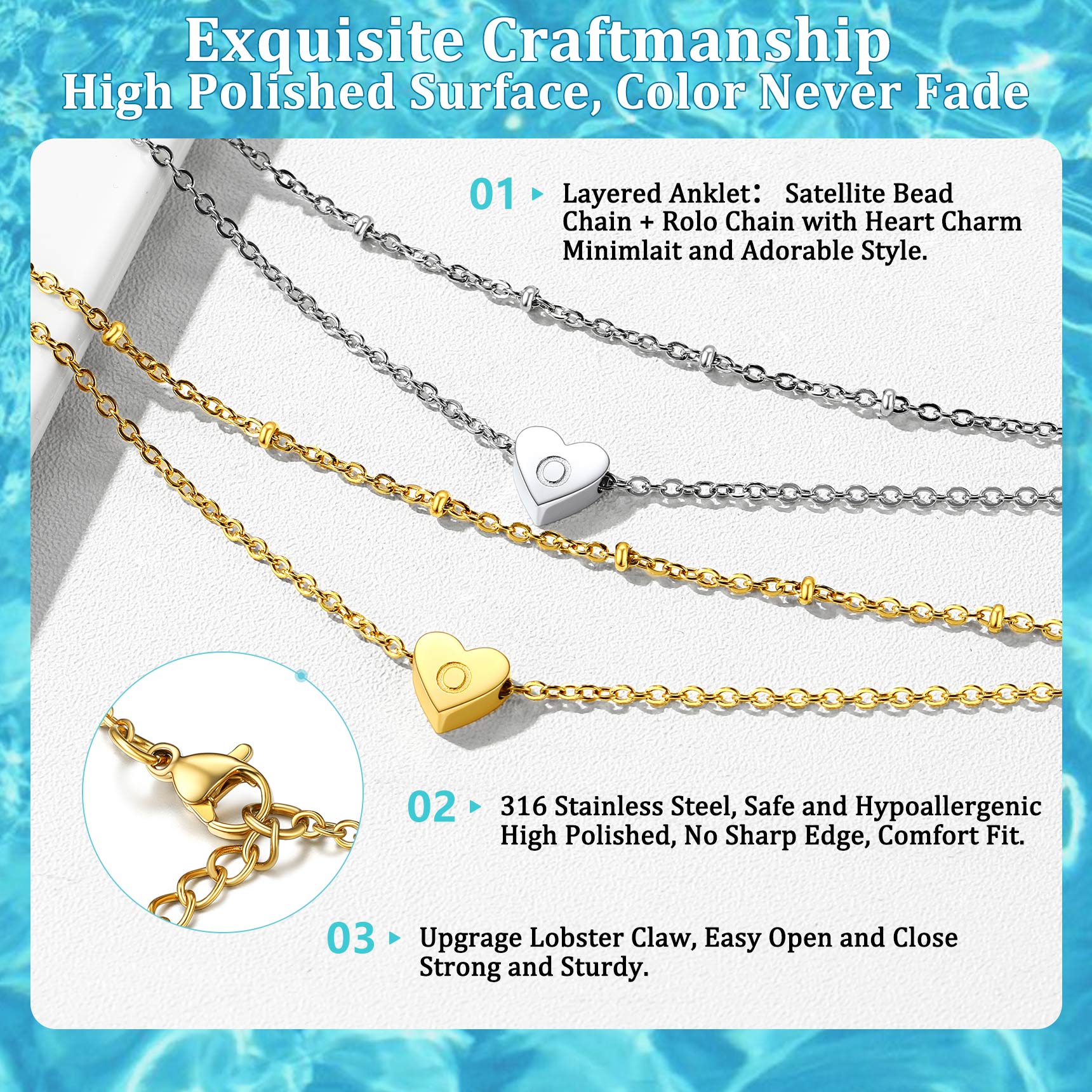 Double Layered Anklet for Women Girls- Size: 8.5”+2” extender, adjustable Ankle Bracelet suitable for most people.