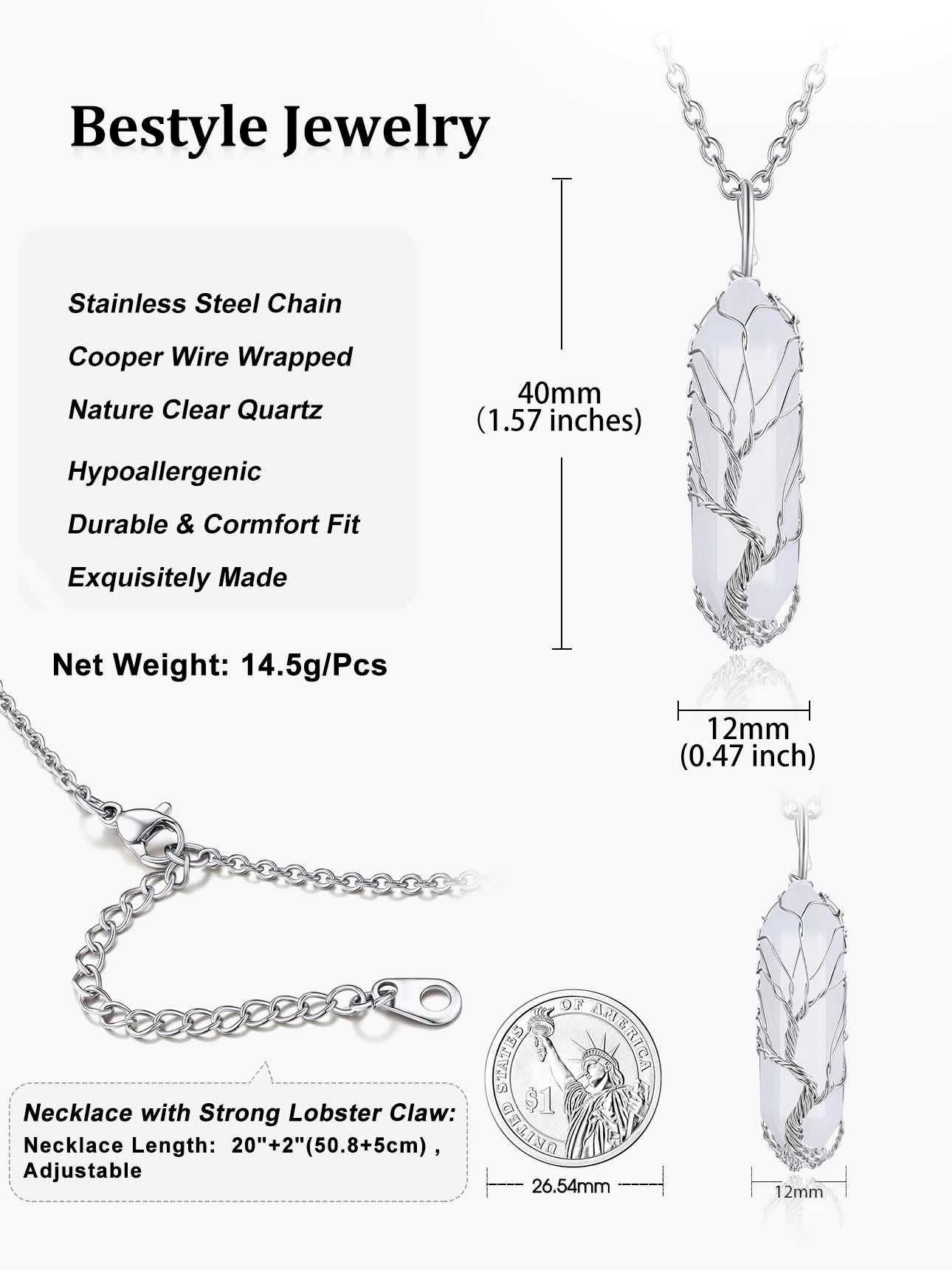 【Healing Teardrop Gemstone Jewelry】Wrapped with copper wrie, the hexagonal crystal size is 40 x 12mm. The rolo necklace chain is made of 316 stainless steel, length 20+2 inch. Total weigh: 14.5g. The whole healing crystal necklace is hypoallergenic, nickel and lead free.