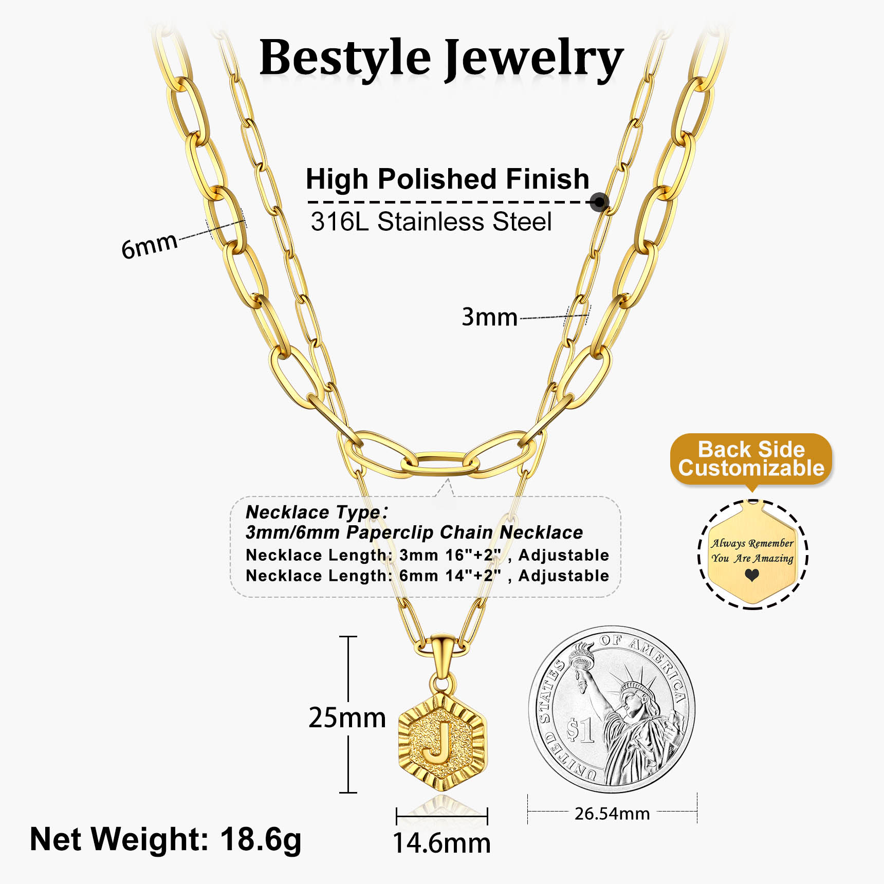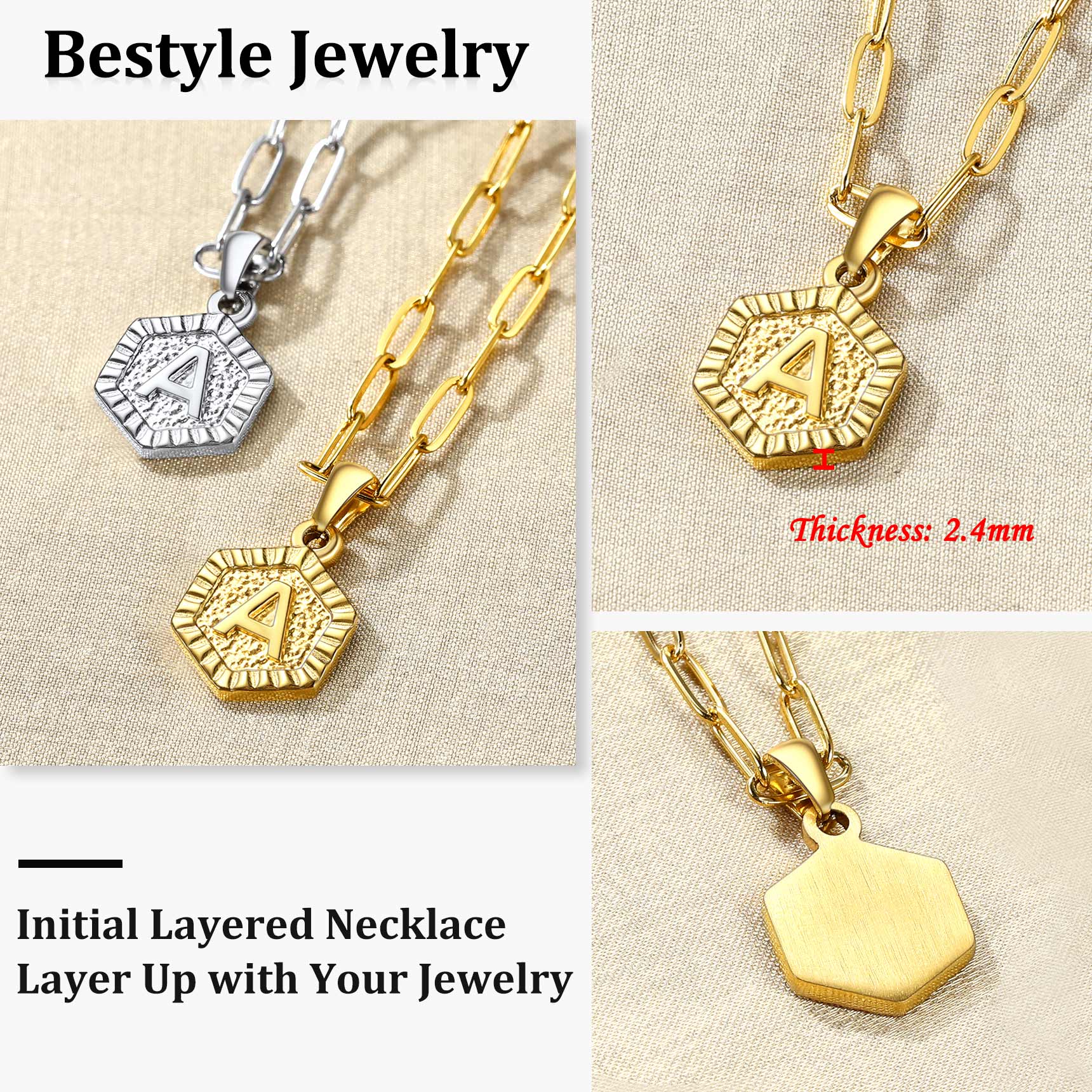 Bestyle Layered Initial Necklace: Comes 2 Pieces Separated Necklace - 1pcs chunky 6mm Herringbone Paperclip Choker Necklace (14"+2") and 1pcs dainty 3mm Paperclip Initial Pendant Necklace (16"+2"). Each can be worn Separately or Together. They have an adjustable length, you can wear them at their longest or shortest. This paperclip chain choker necklace is simple,trendy and dainty, will illuminate your face and add a soft, feminine touch to all your outfits.