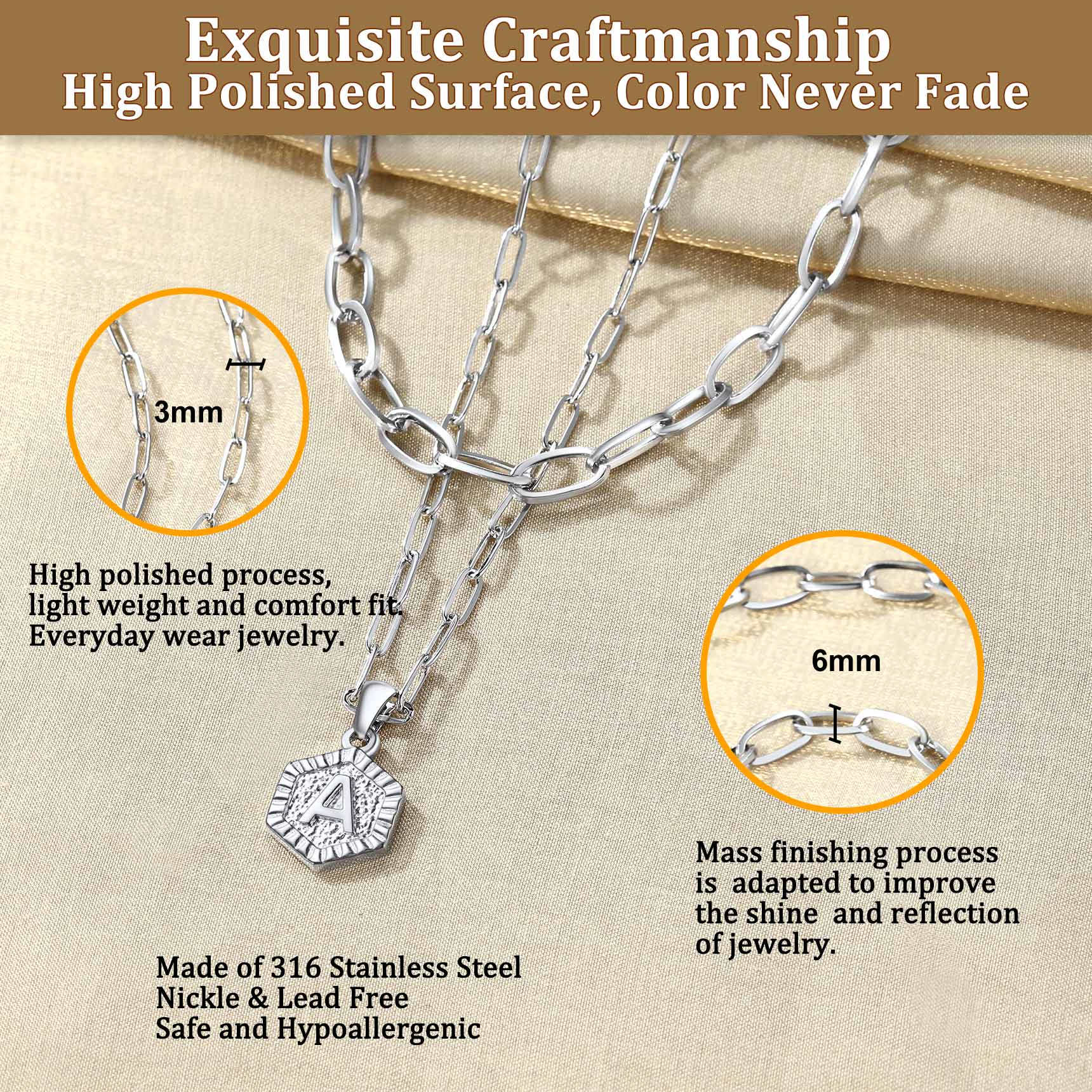 Hypoallergenic Stainless Steel Necklace: The two paperclip chain neclace are all made of 316L stainless steel. Stainless steel aesthetic jewelry is resistance to rust, oxidation and discoloration, make it ideal for long-lasting jewelry designs. Nickle and lead free, safe and hypoallergenic, durable and scratch resistant.