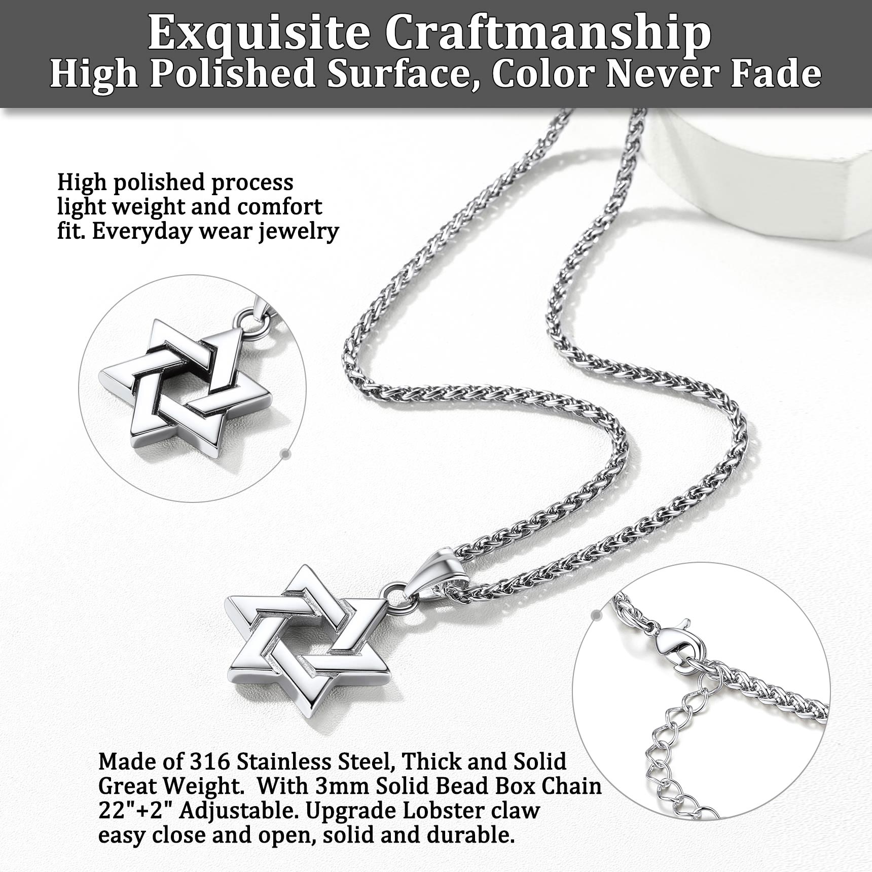 [Star of David Necklace] Simple and elegant design, these star necklaces go well with many styles of clothing, like T-shirt, sweater, vest, dress and so on, they can make you unique, nobody will miss it and you will received a great deal of compliments.