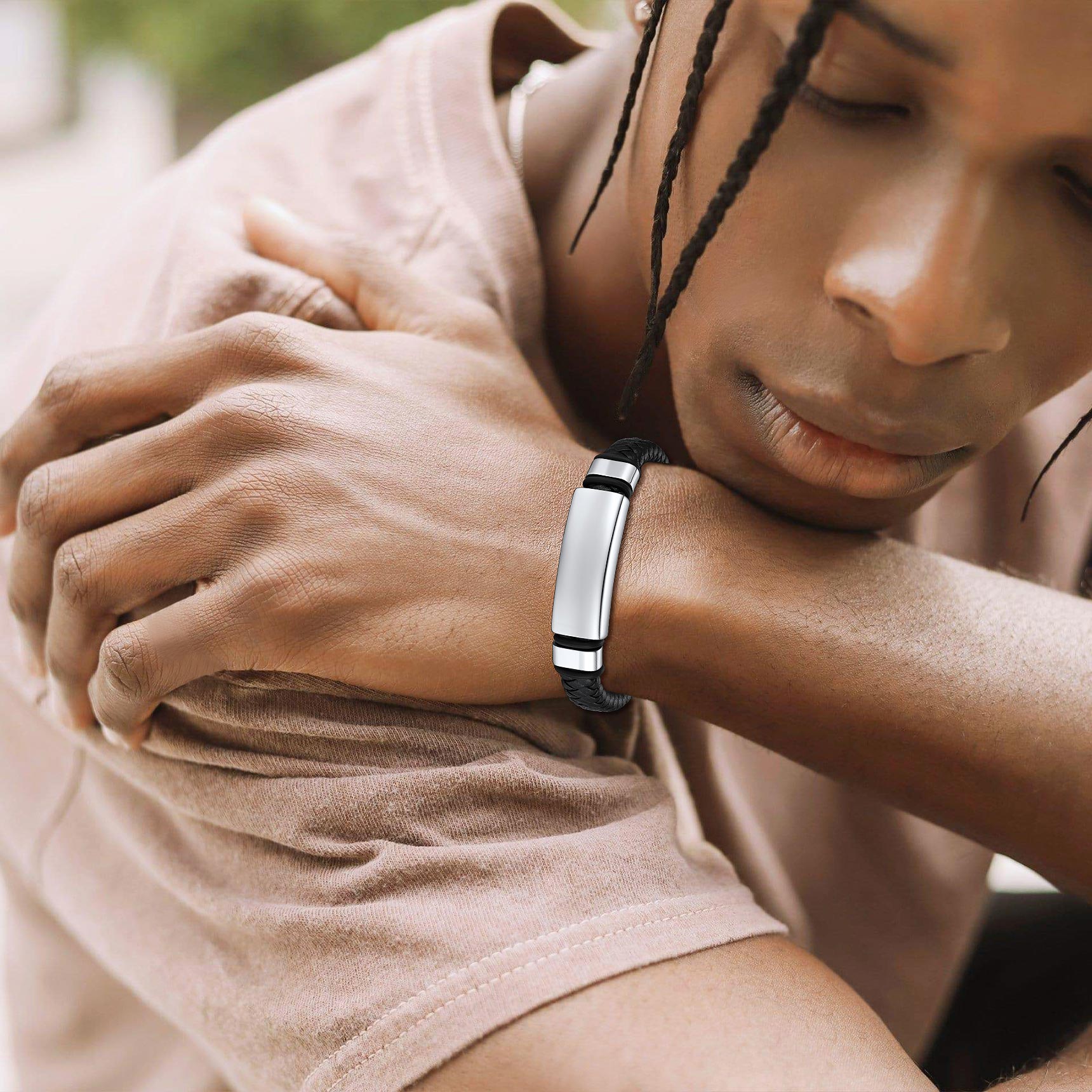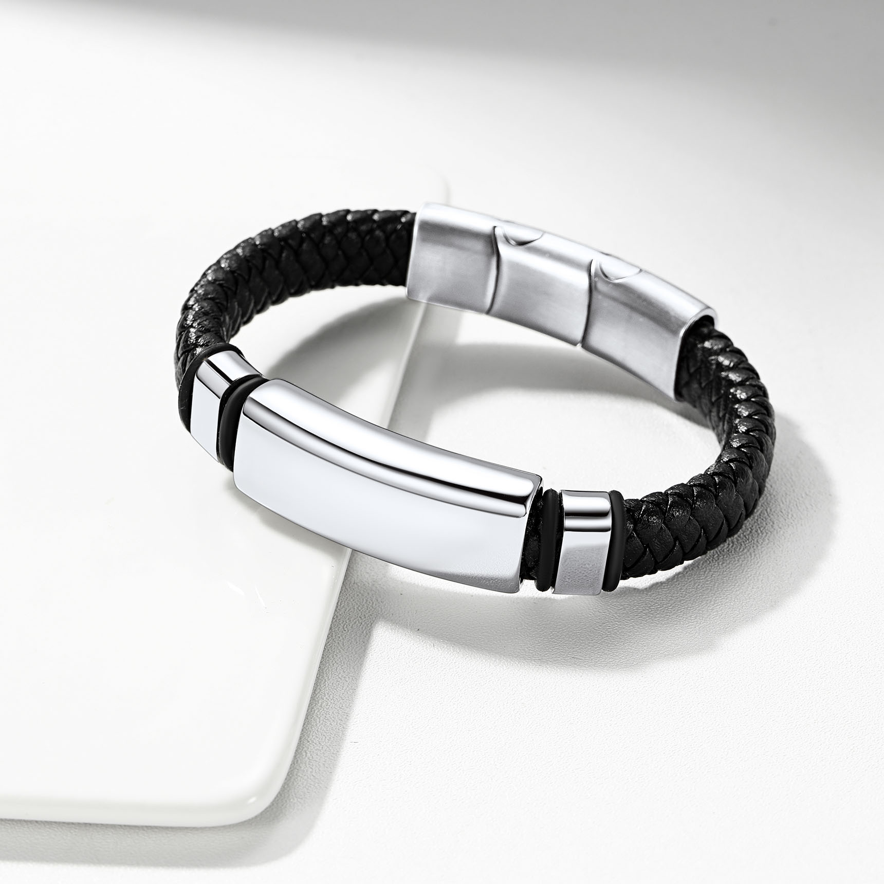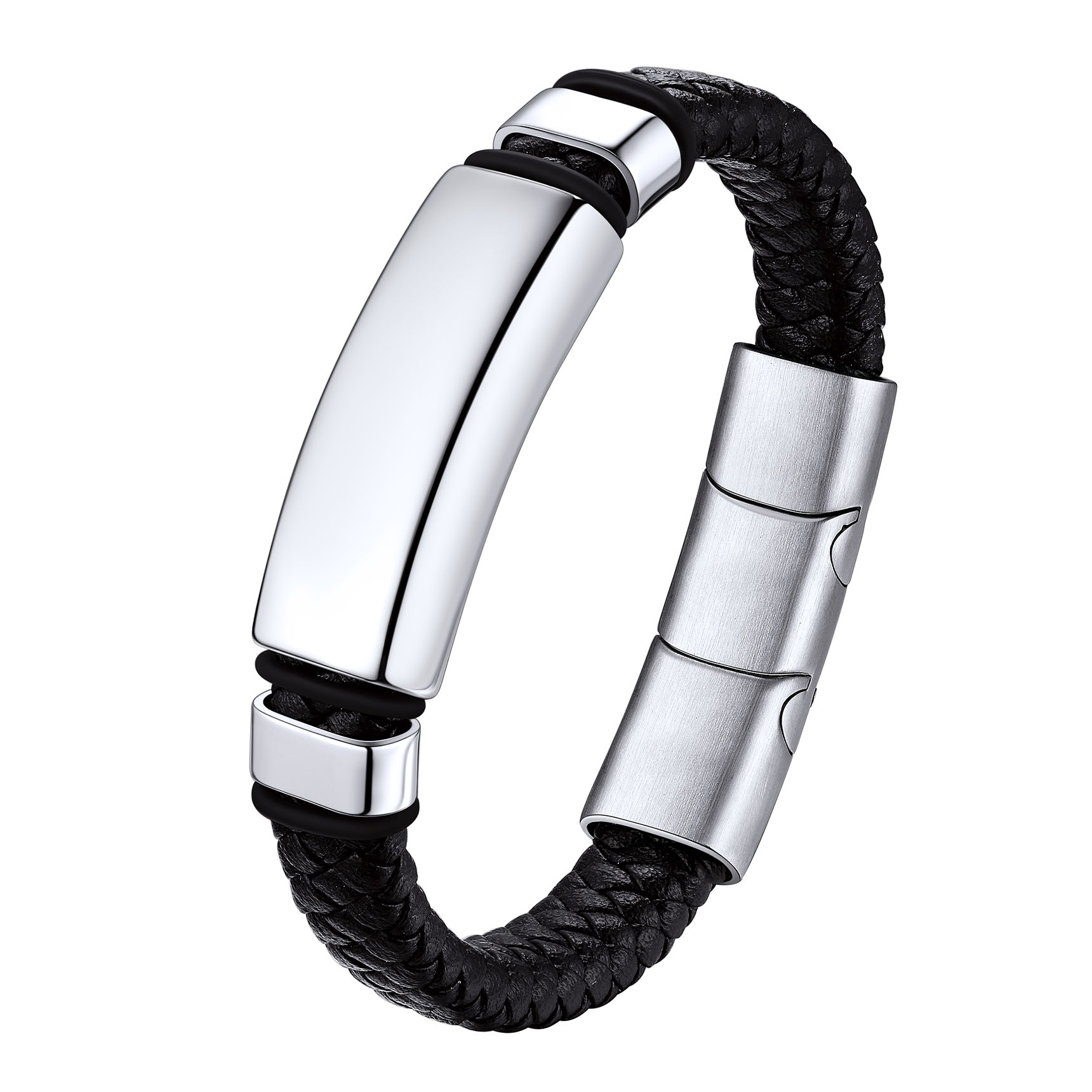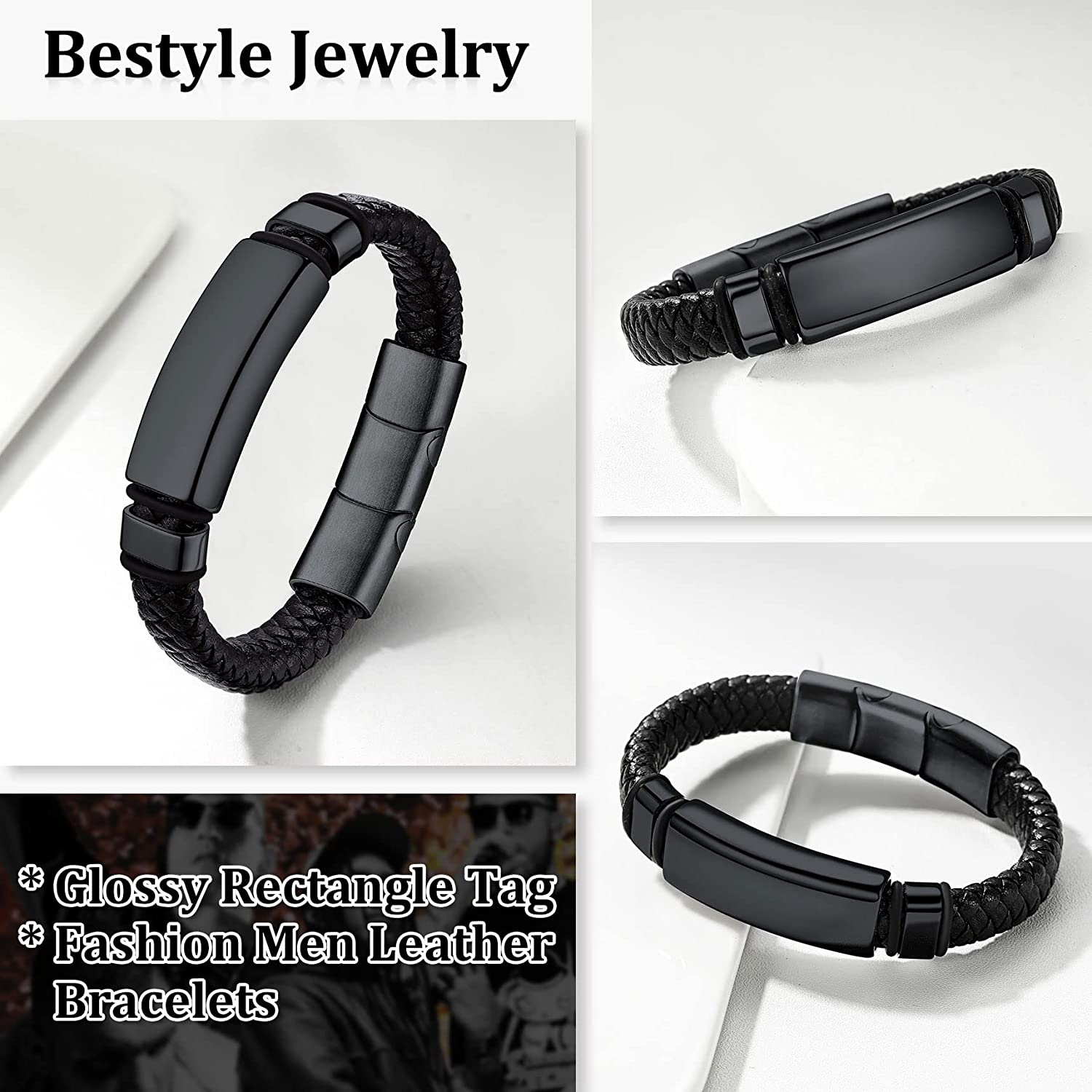 HIGH QUALITY Leather Bracelets: Fine Handcraft, Made of Soft Braided Leather Material and Solid Thick Stainless Steel ID tag. Strong and Durable, will never fade, rust, tarnish, corrode. Free of Lead and Nickel, Hypoallergenic and Healthy.