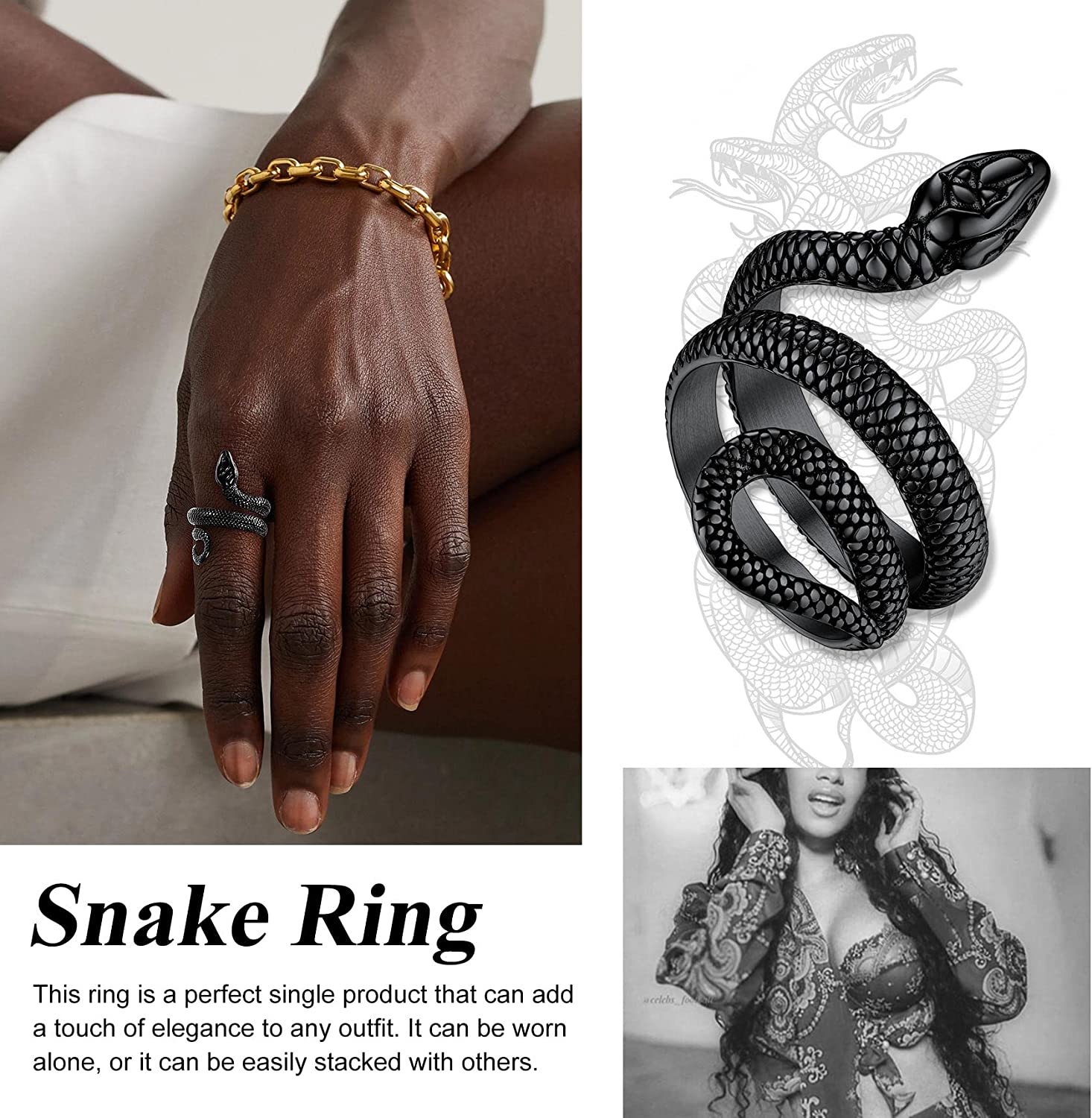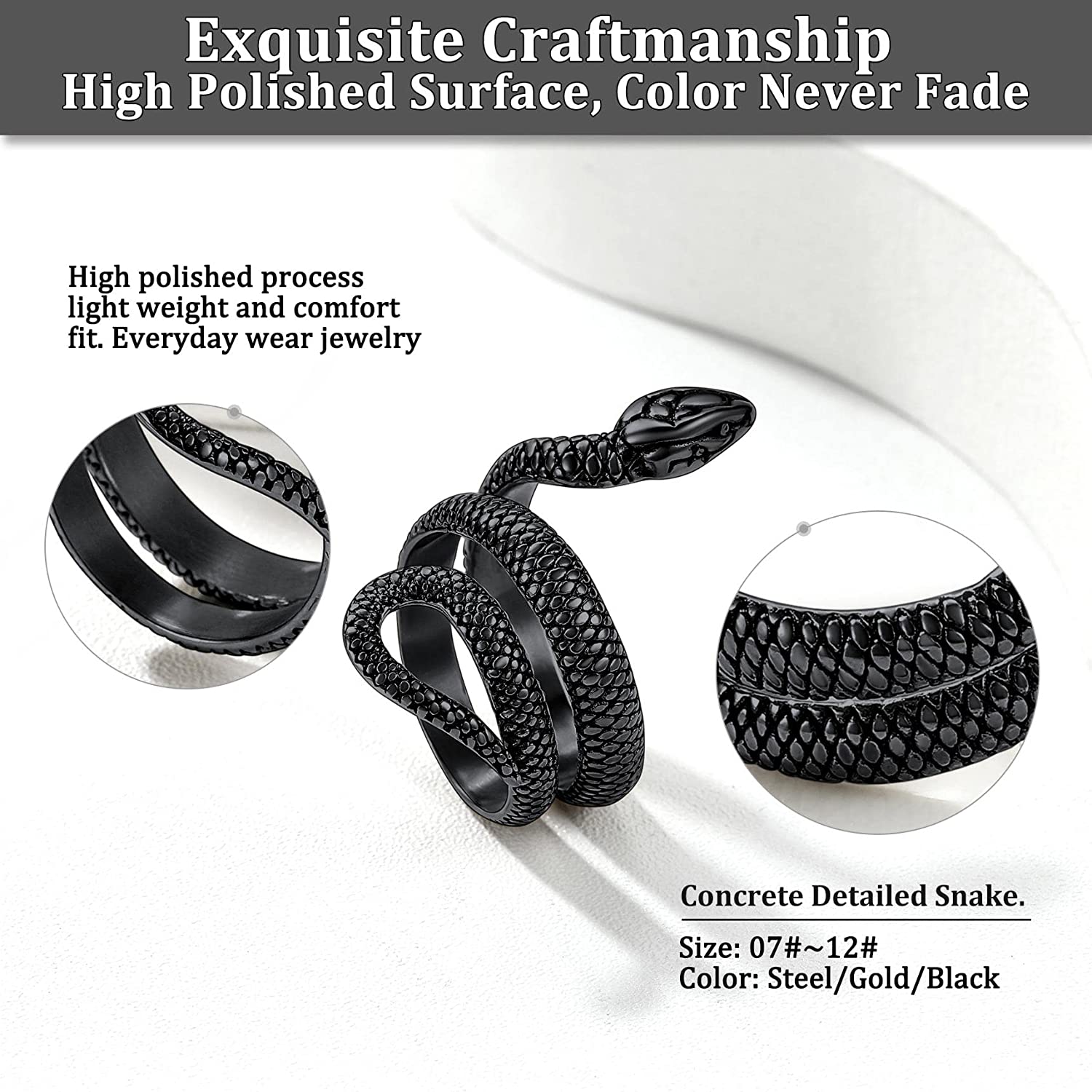 Gothic Rings Jewelry for Men Women- This snake is made of solid sturdy stainless steel. Non-tarnish, anti-allergic and high resistance to rust, corrosion and tarnishing.