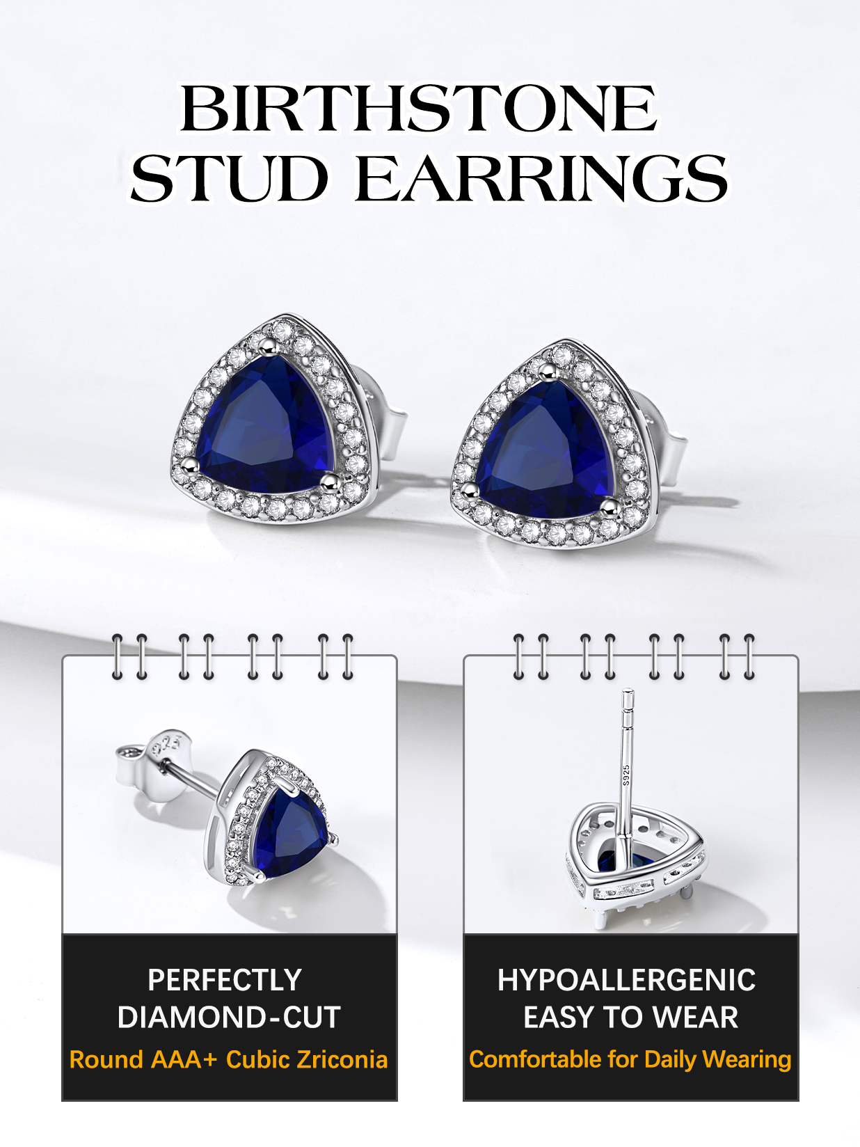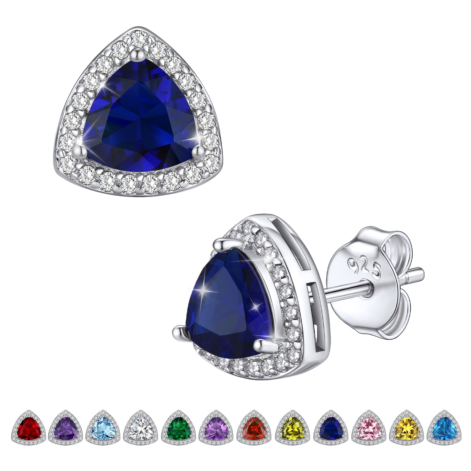 💓[Sepember - Created Blue Sapphire Birthstone Earrings]💓 6mm wide Blue Sapphire Gemstone Earrings embellished with 1mm white Cubic Zirconia, exquisitely inlaid in high polished 925 Sterling Silver. These glittering crystals will shimmer with the slightest movement. So flattering and sparkling, just like the real diamond! There are 12 different colors of Gemstones, corresponding to the birthstone of each month. You can choose the color according to the birth month.