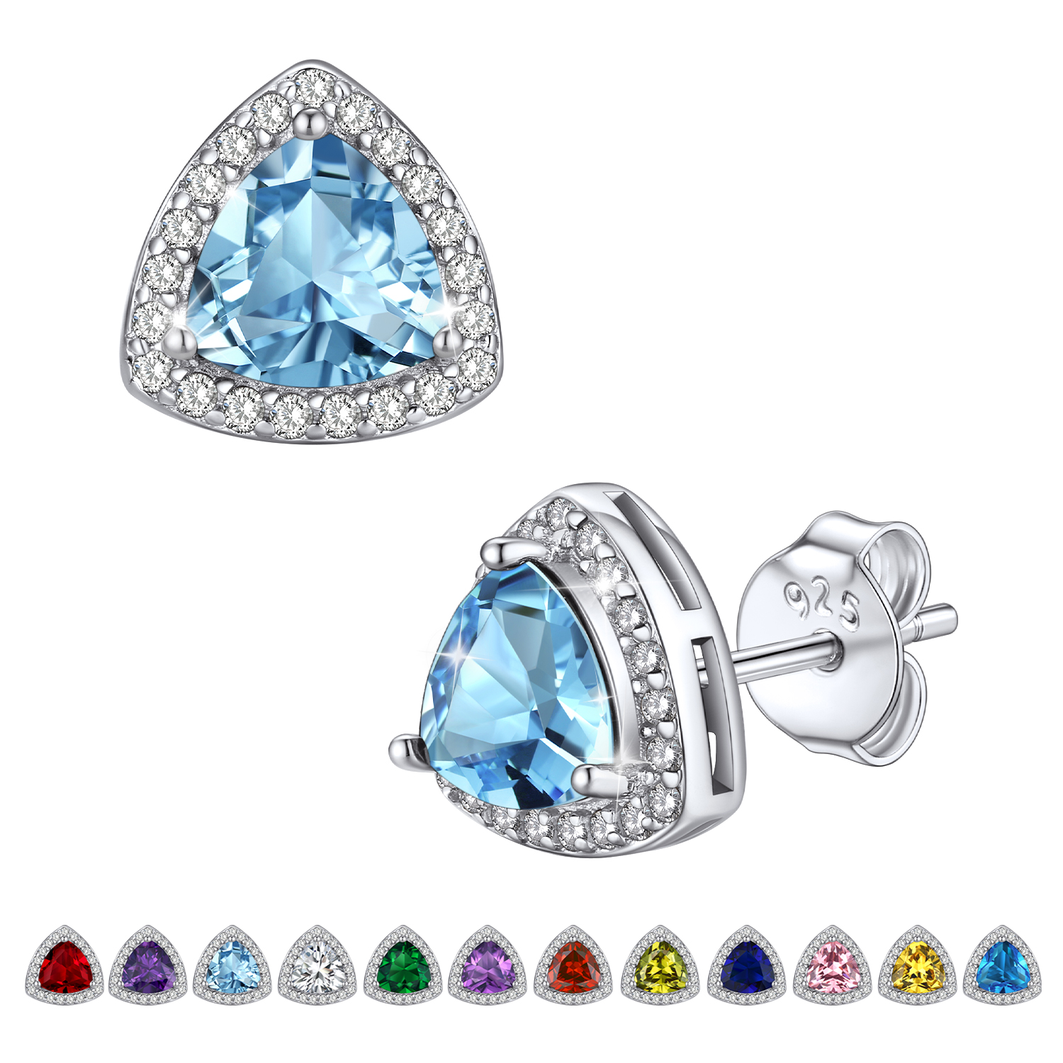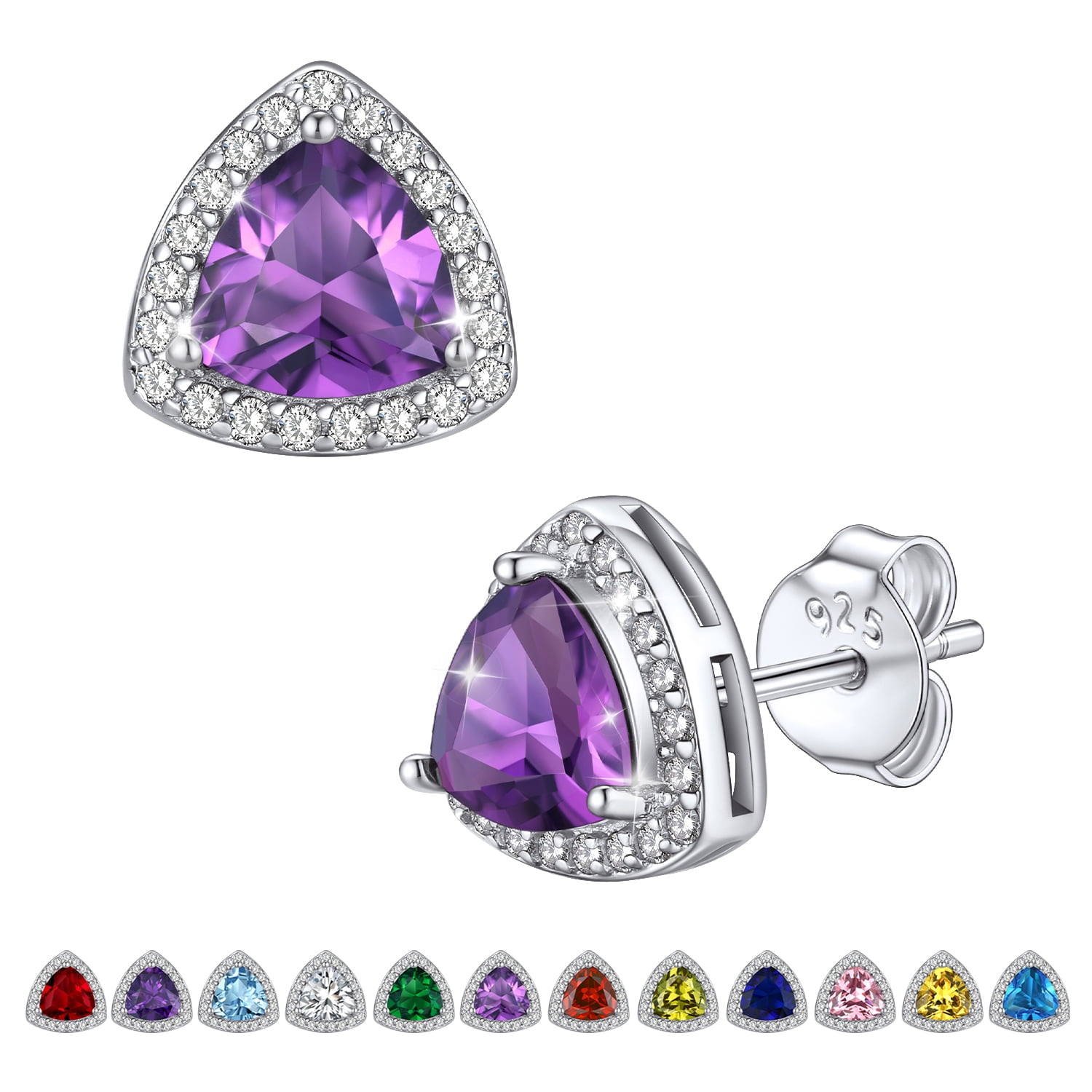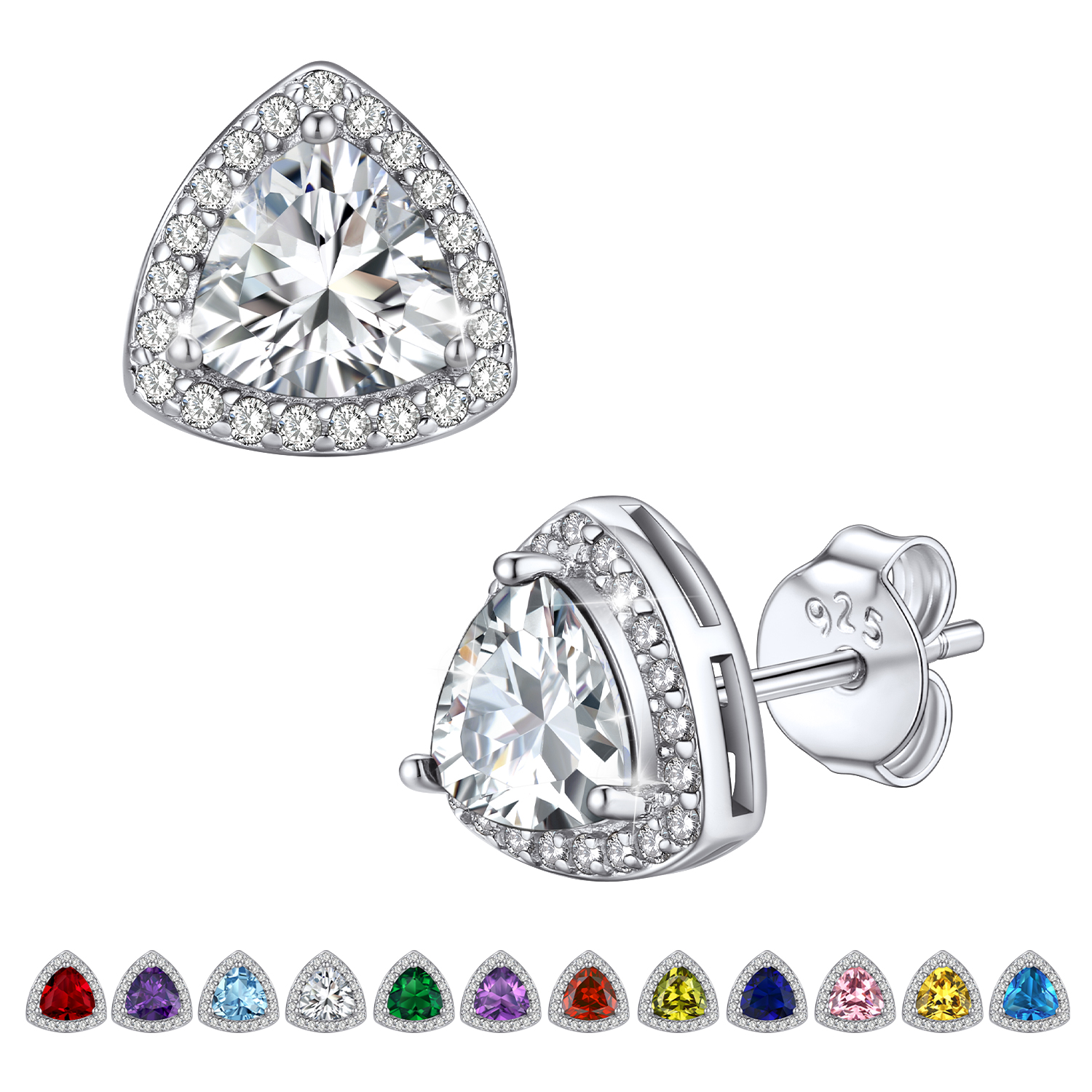 💓[Triangle Diamond Halo Studs for Women Girls]💓 For a timeless, elegant style, there is nothing better than the Bestyle birthstone jewelry! This triangle diamond stud earrings is undying ear fashion among the trend-conscious. It will create an elegant look around your ear and illuminate your face. Crystal birthstone earrings is shiny and classic which will make you special, so stylish to catch your audience's eyes and stand out the crowed.