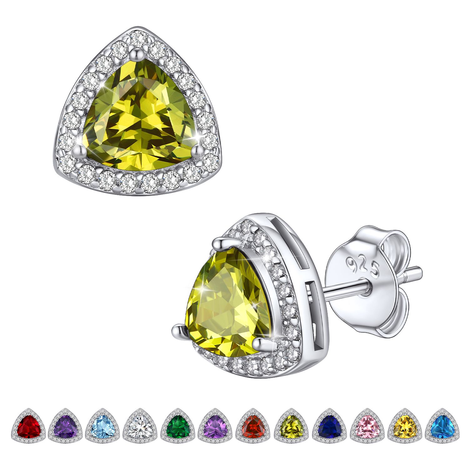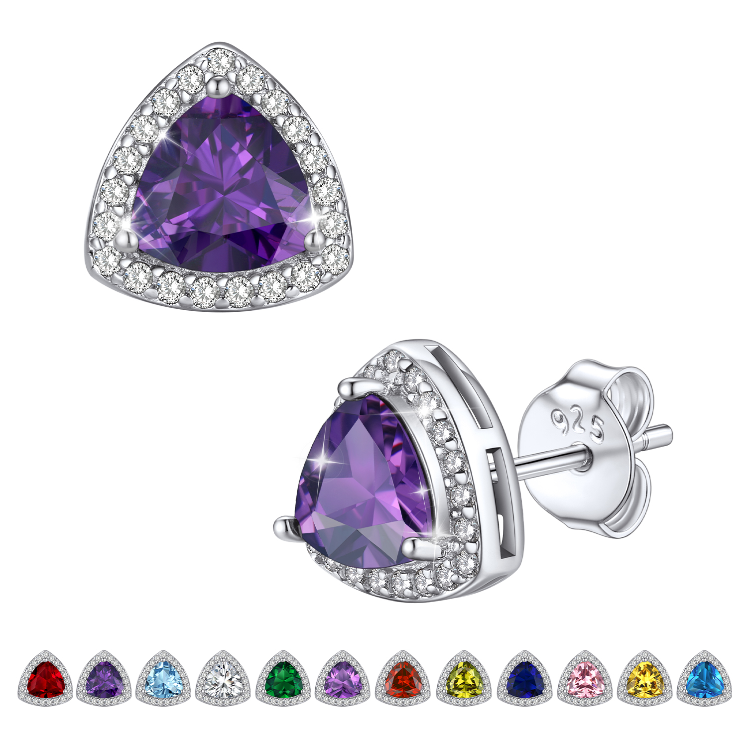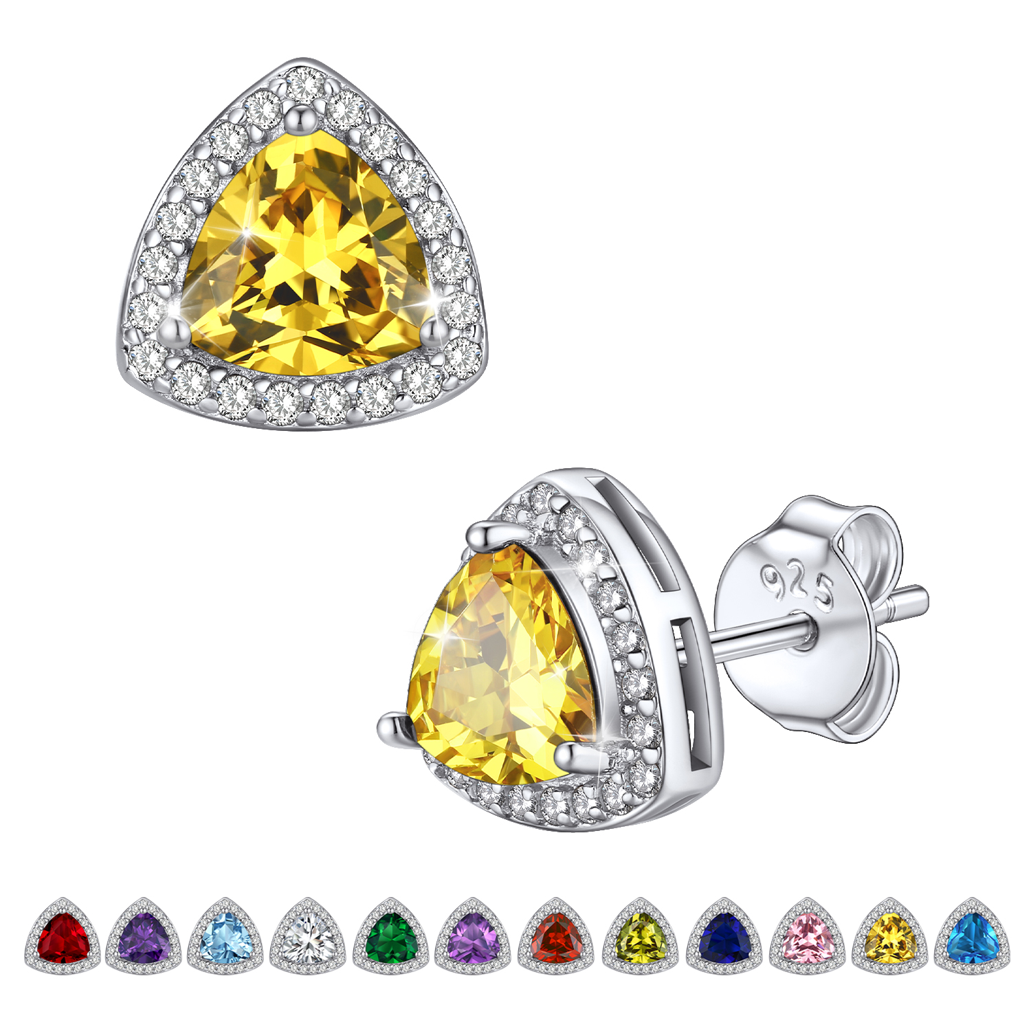 💓[Triangle Diamond Halo Studs for Women Girls]💓 For a timeless, elegant style, there is nothing better than the Bestyle birthstone jewelry! This triangle diamond stud earrings is undying ear fashion among the trend-conscious. It will create an elegant look around your ear and illuminate your face. Crystal birthstone earrings is shiny and classic which will make you special, so stylish to catch your audience's eyes and stand out the crowed.