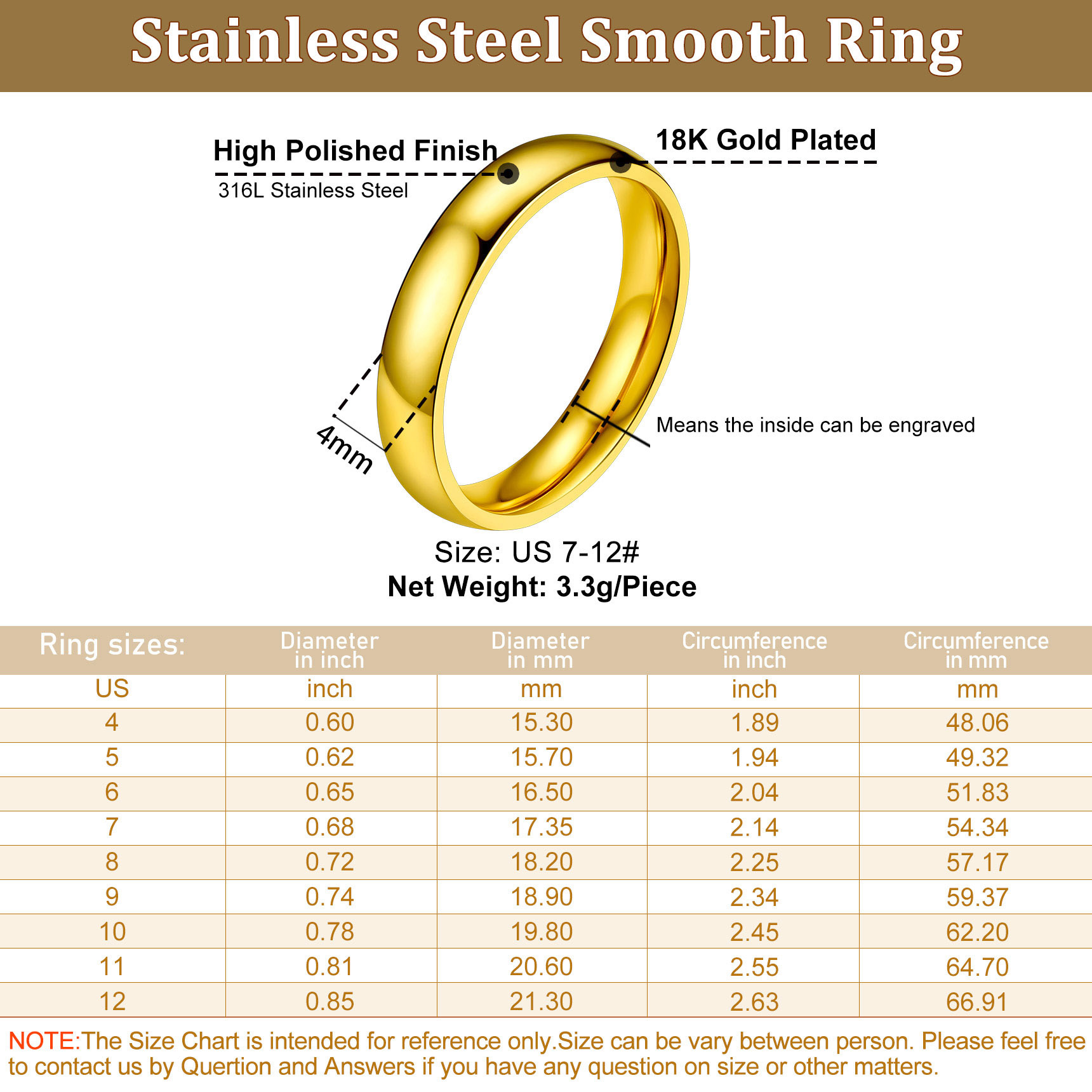 [Stainless Steel Ring for Teen Boys Girls] Made of high Quality 316L Stainless Steel and 18K gold plated. Stainless steel jewelry is resistance to rust, oxidation and discoloration, nickel-free, lead-free, safe and hypoallergenic, Non-irritating to skins.