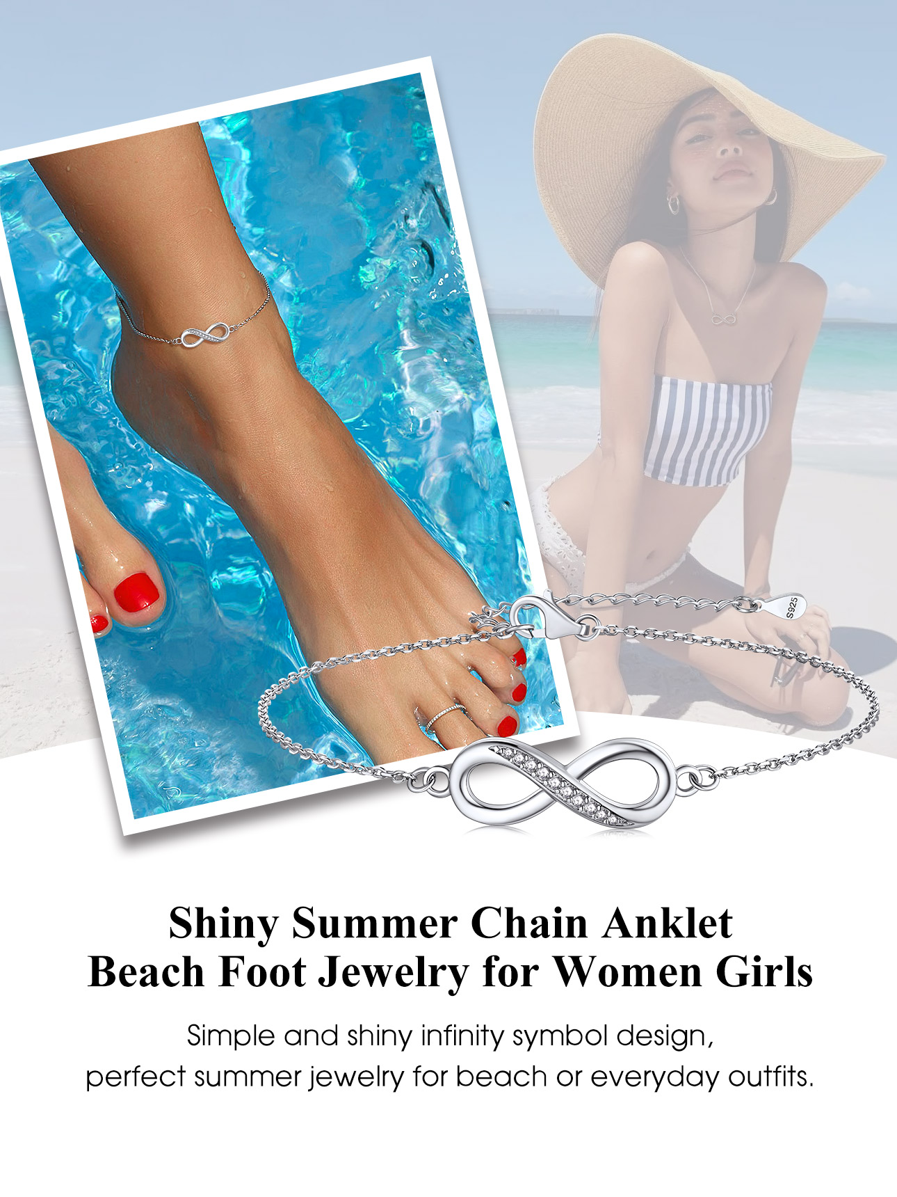 Sterling Silver Foot Chain - Made of S925 Sterling Silver and High Quality Clear Crystal, Hypoallergenic and Nickle&Lead Free. Butterfly Size: 12.9mm(H) * 11.5mm(W), Anklet Chain Length: 8.6" + 2" Adjustable, Net Weight: 2.7g/pcs, lightweight and confirmfit, everyday wear jewelry. Sparkles in any light and is stylishly chic in any situation. Fashioned with Cubic Zirconia accent stones this butterfly charms compliments any outfit.