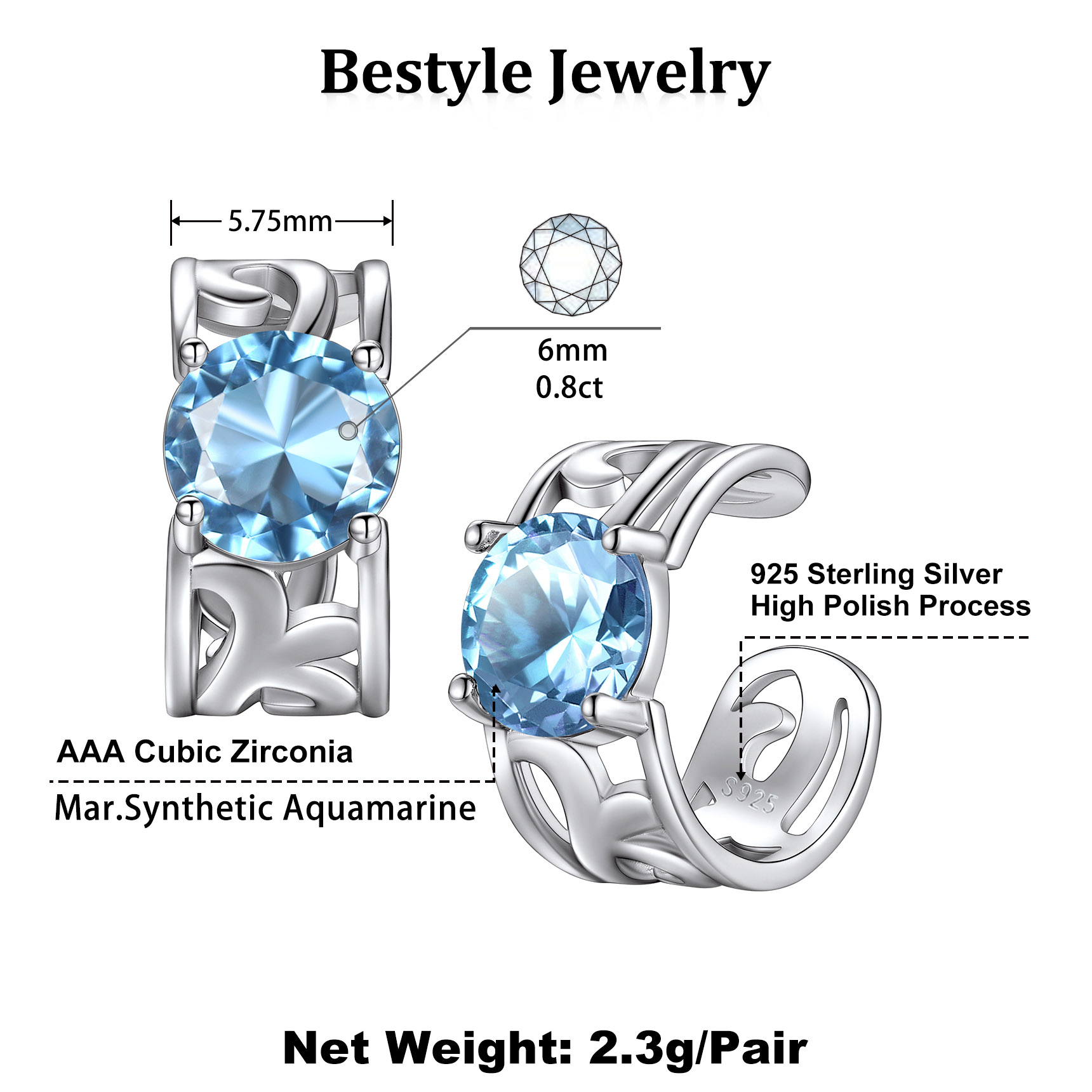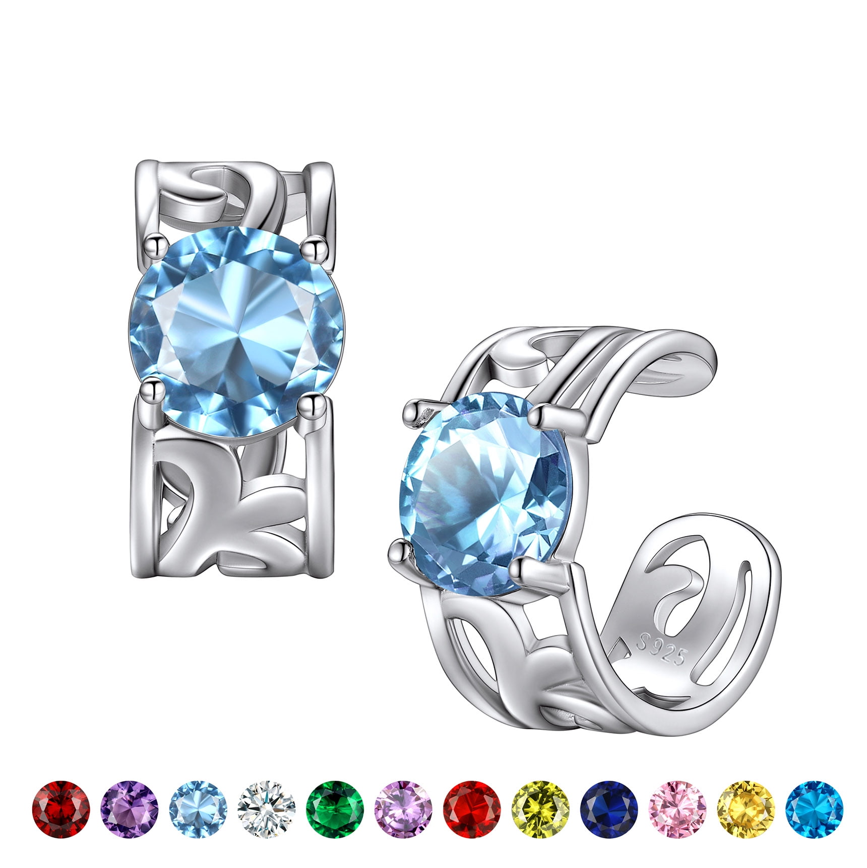 March Created Blue Aquamarine Birthstone Earrings - Blue Aquamarine Gemstone Earrings embellished in the high polished vintage 925 sterling silver celtic knot, So flattering and sparkling to catch your audience! There are 12 different colors of Gemstones, corresponding to the birthstone of each month. You can choose the color according to the birth month.