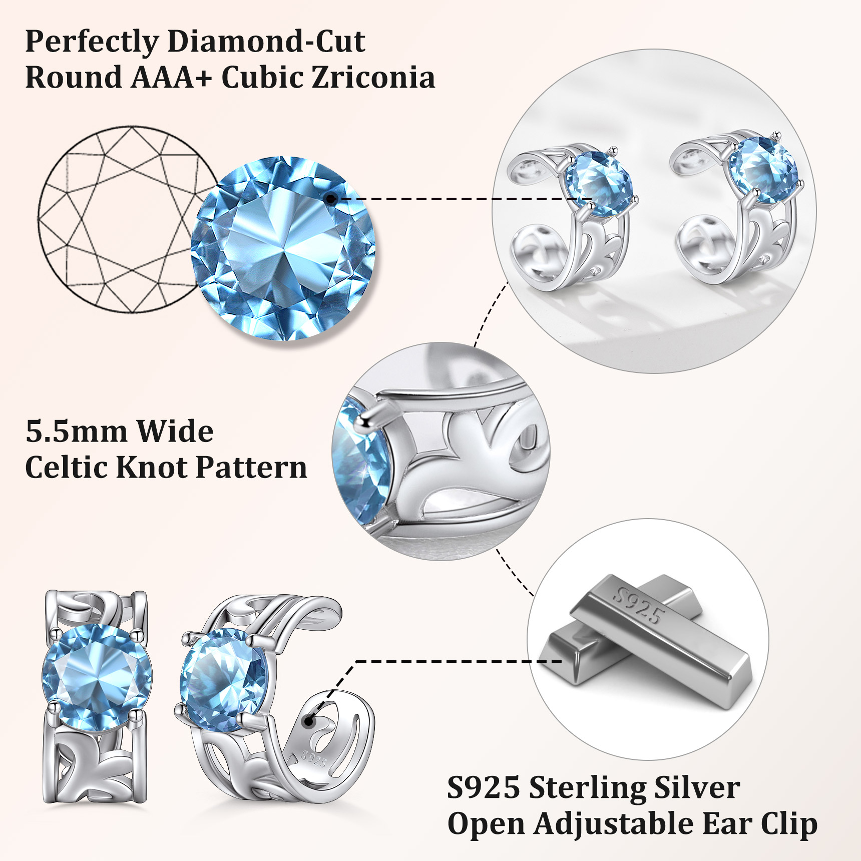 Celtic Knot Ear Cuffs - Infinite Love statement jewelry, Celtic Knot represents eternity and everlasting thing. This can be in love, faith, hope, loyalty, and friendship, an ancient treasure symbolizing Infinity and love. Give this dainty birthstone earrings to your Mom/ Wife/ Daughter/ Girlfriends to make a love statement.