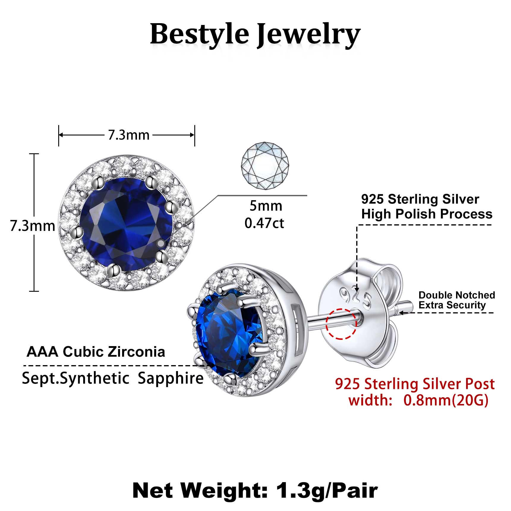 - Earring Size: 7.5mm x 7.2mm