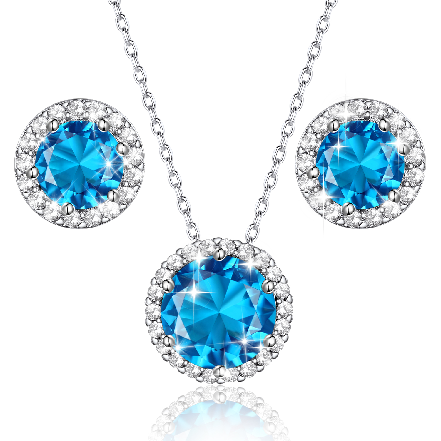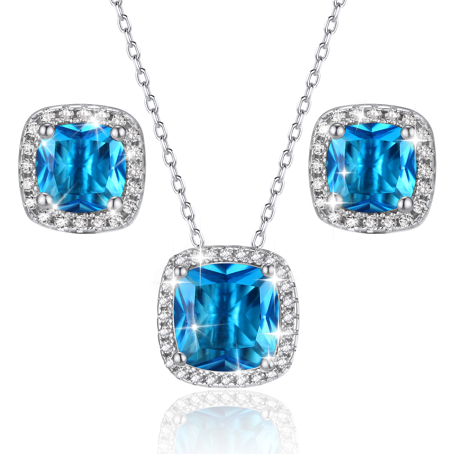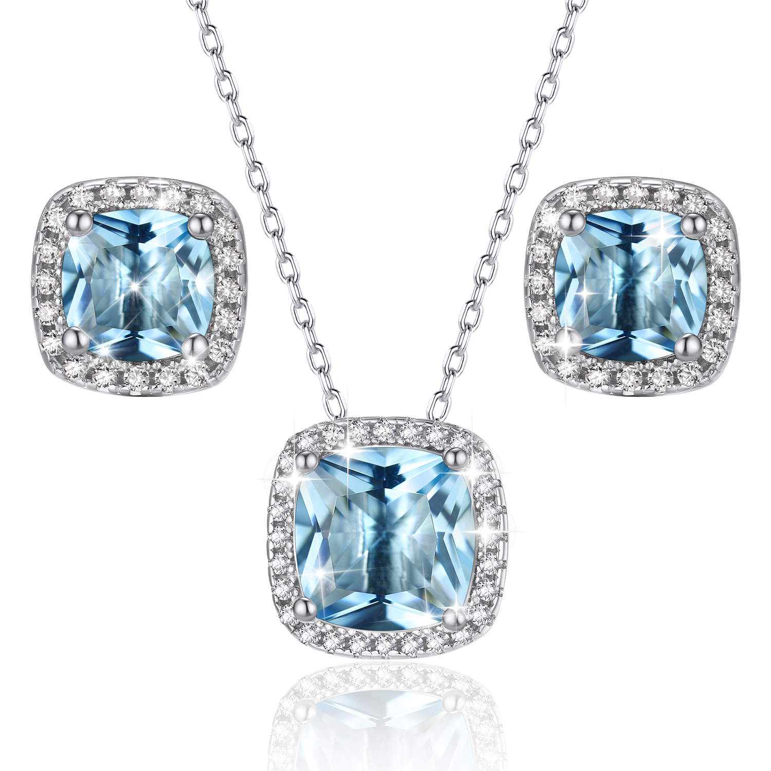 - Material: S925 Sterling Silver, AAA Cubic Zirconia, Synthetic Aquamarine