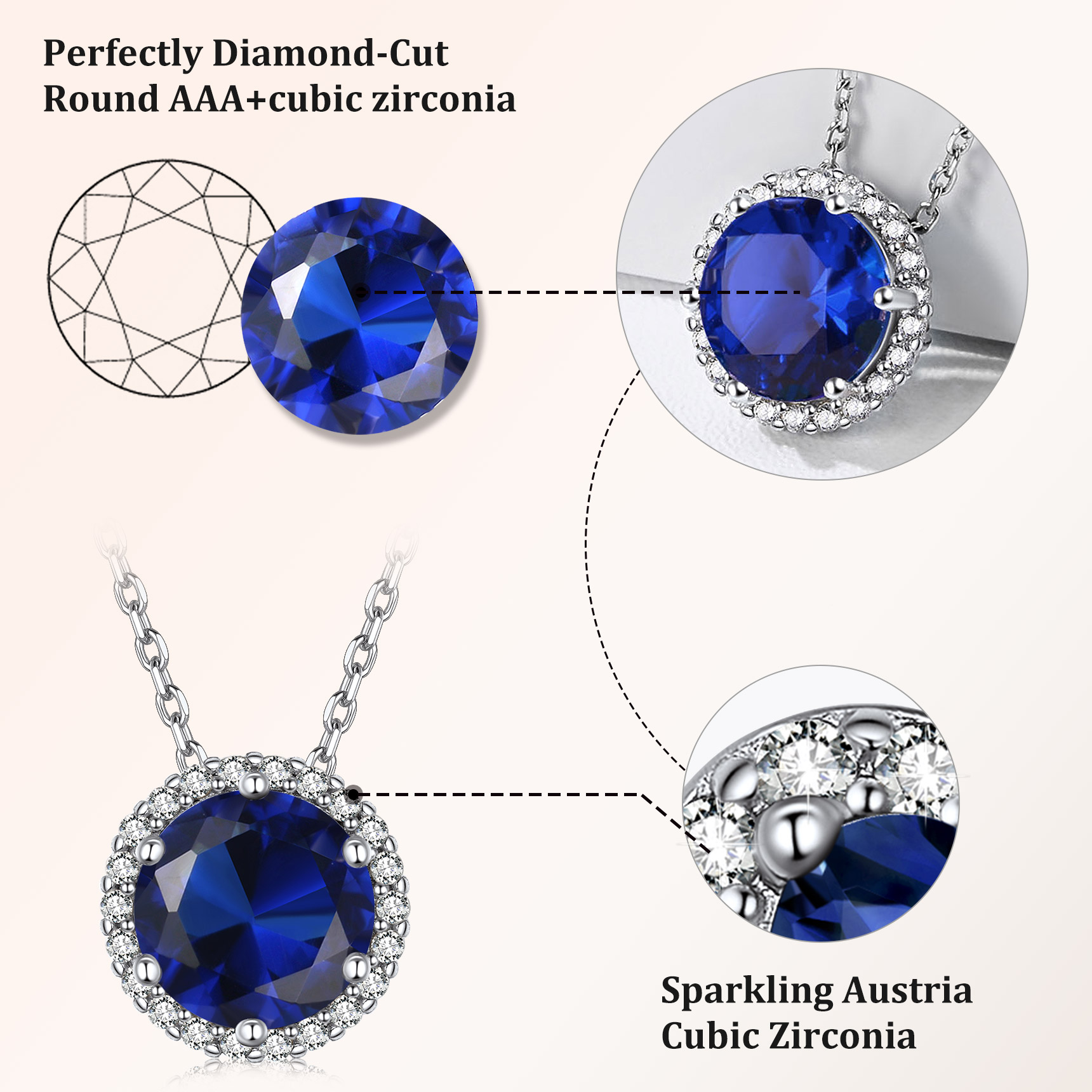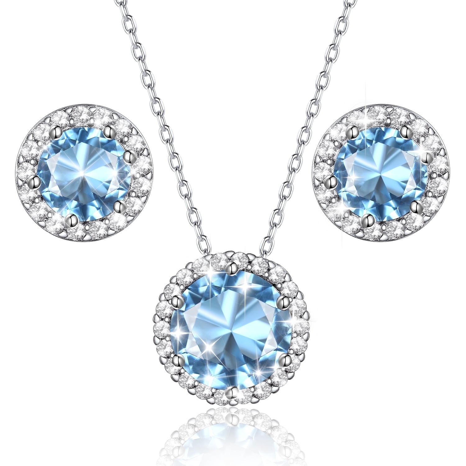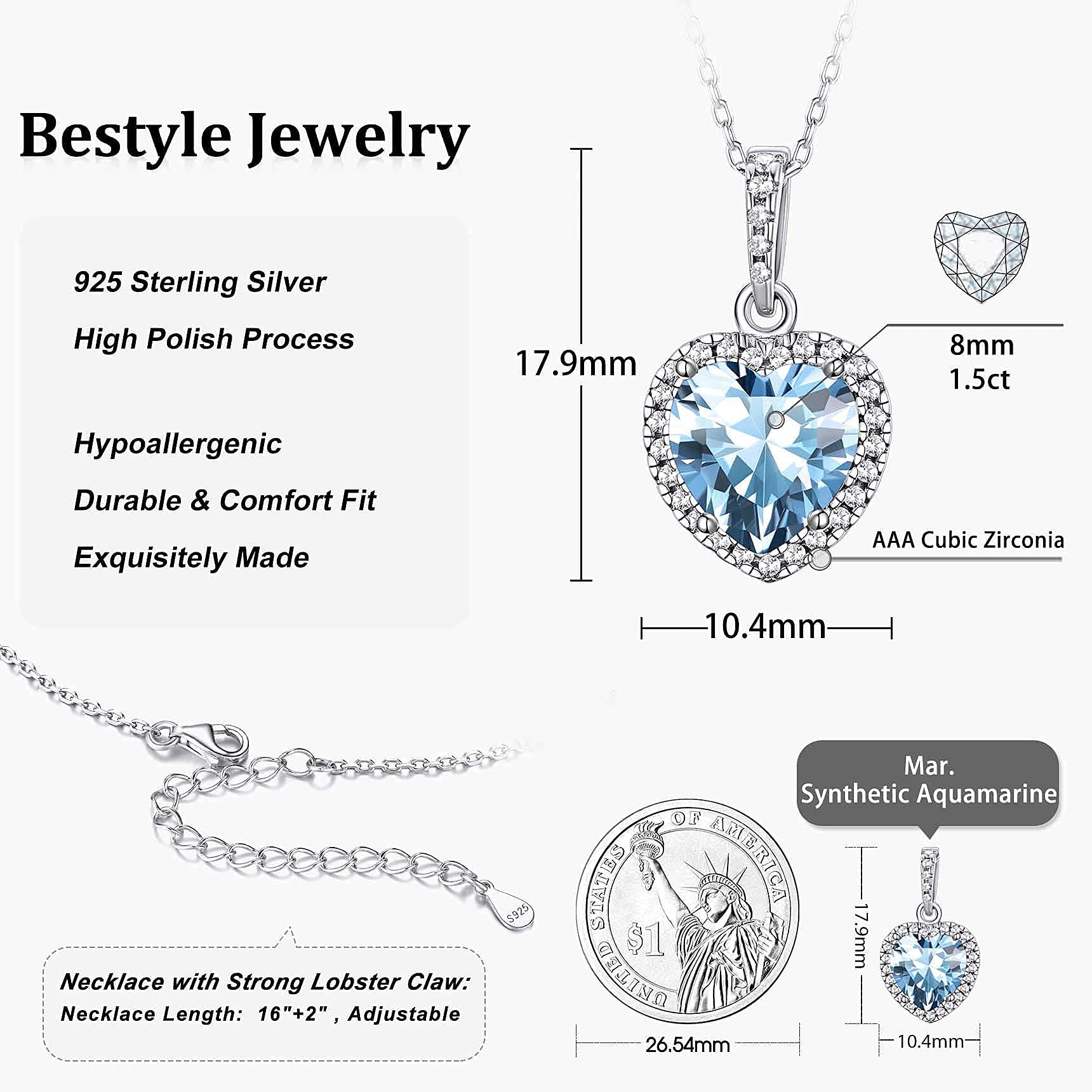 - Material: S925 Sterling Silver, AAA Cubic Zirconia, Synthetic Aquamarine