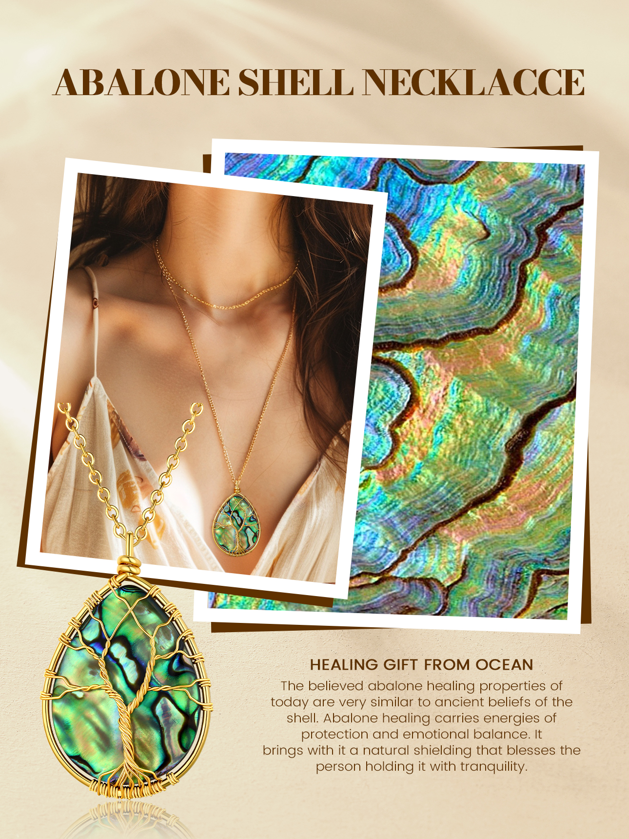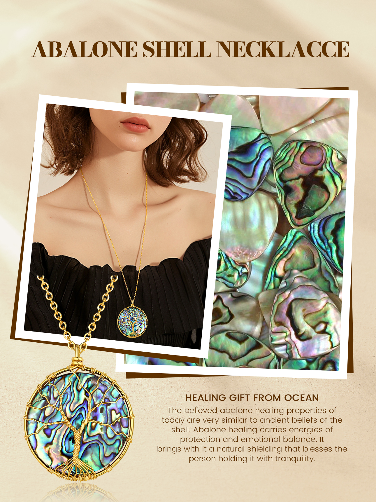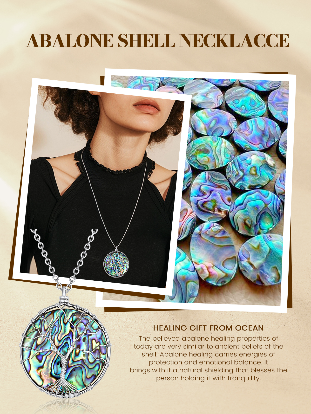 【Abalone Shell Necklaces for Women】This healing pendant brings you good health and lucky. Everyone in life needs a strong courage, calm mind, extraordinary wisdom and be hopeful about the future, put the Pendant on the hand, always inspire us! It is a Tree of Life Necklace, a great gift for your family or friends.