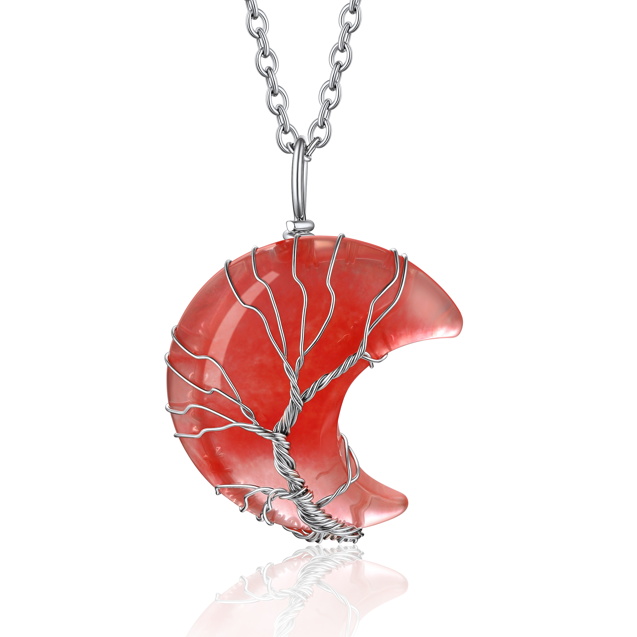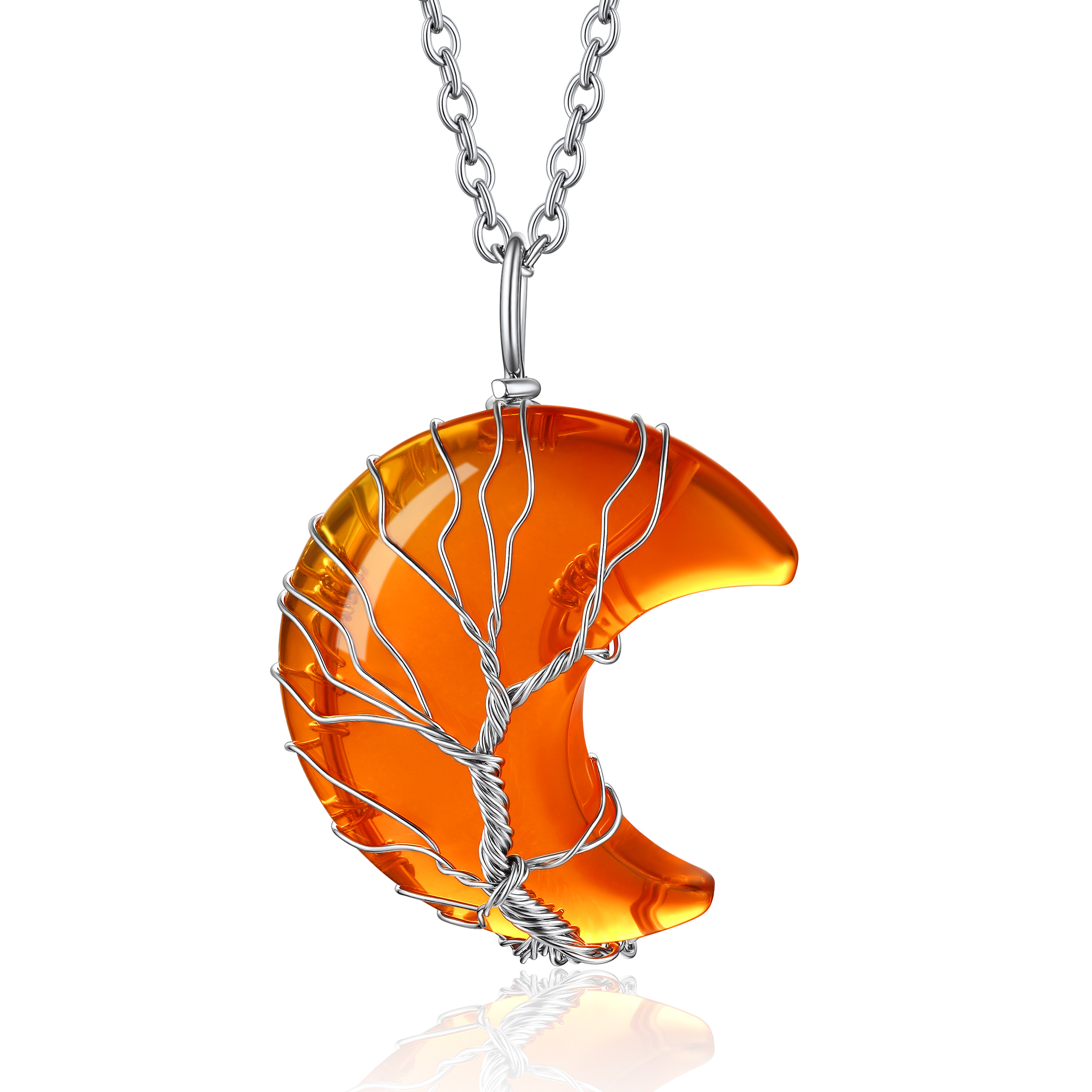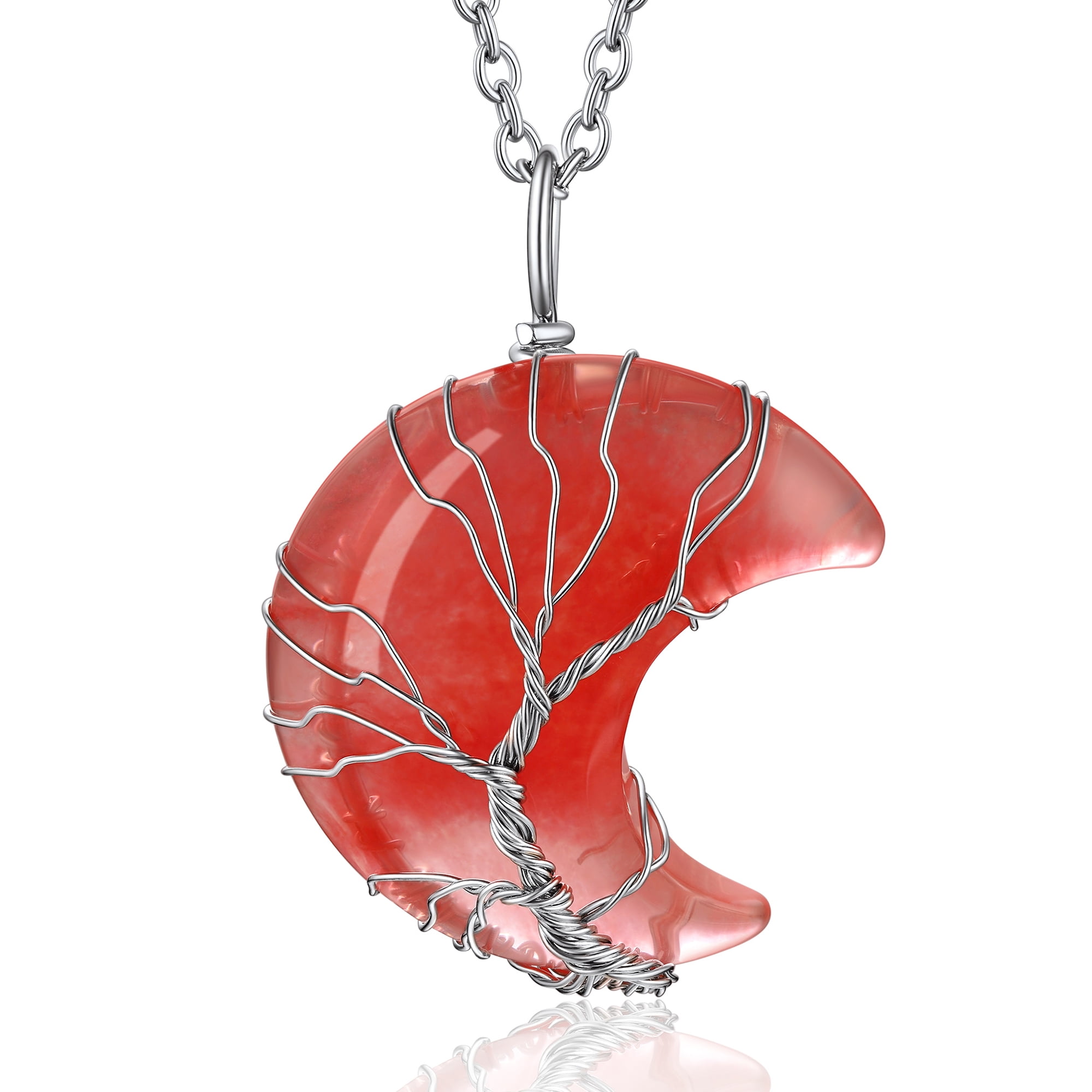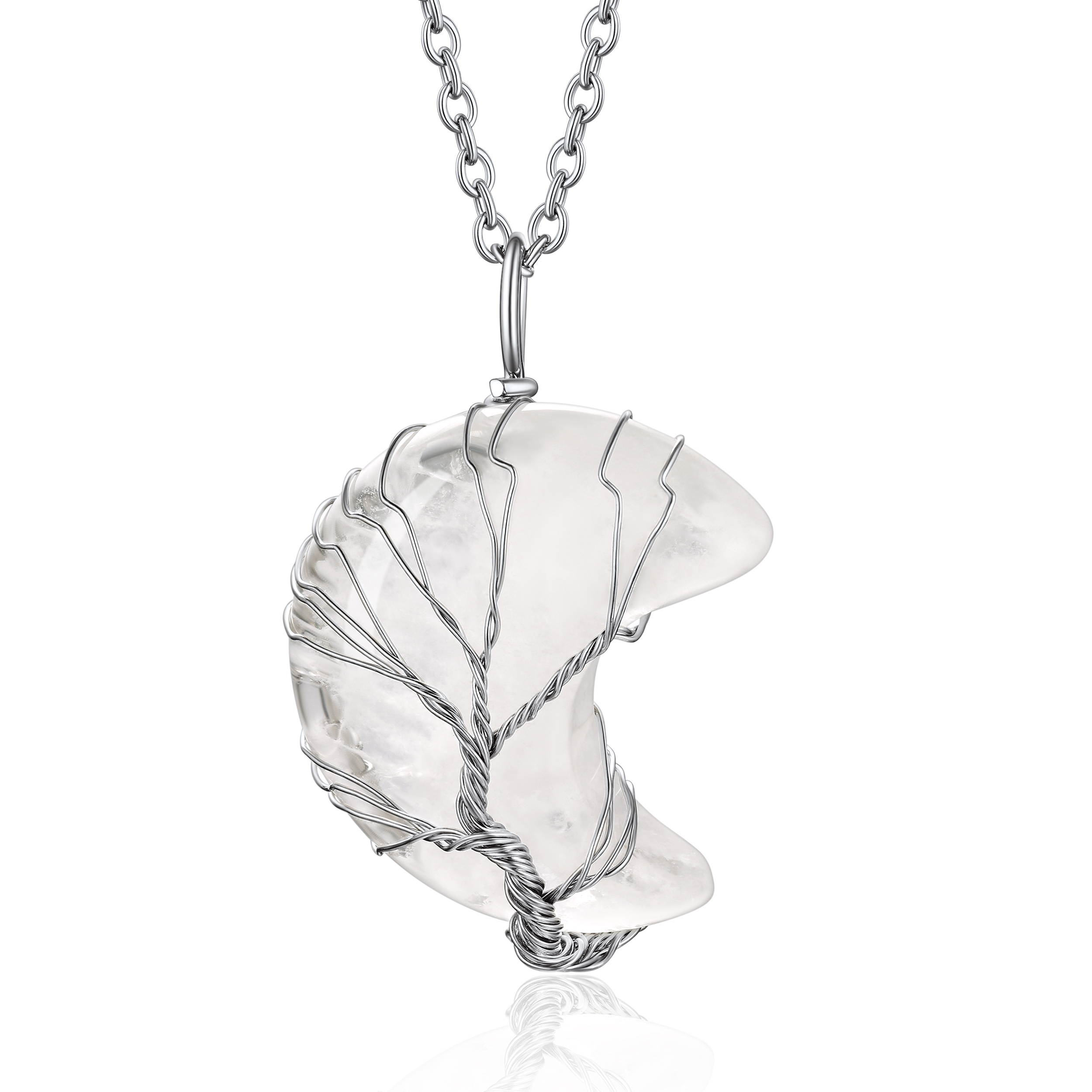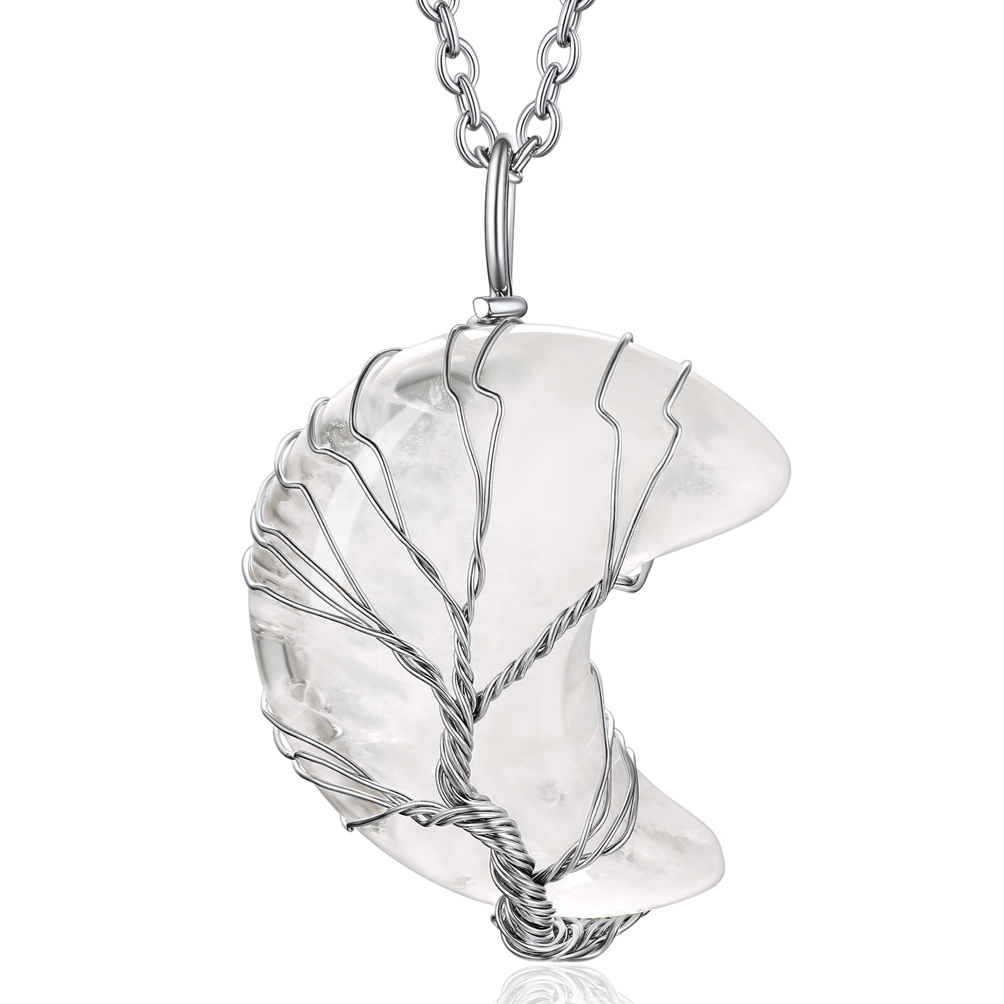 【Charming Moon Birthstone Jewelry】Wrapped with copper wrie, the crescent moon crystal size is 30 x 35 x 5mm. The rolo moonstone necklace chain is made of 316 stainless steel, length 20+2 inch. Total weigh: 20g. The whole healing crystal necklace is hypoallergenic, nickel and lead free.
