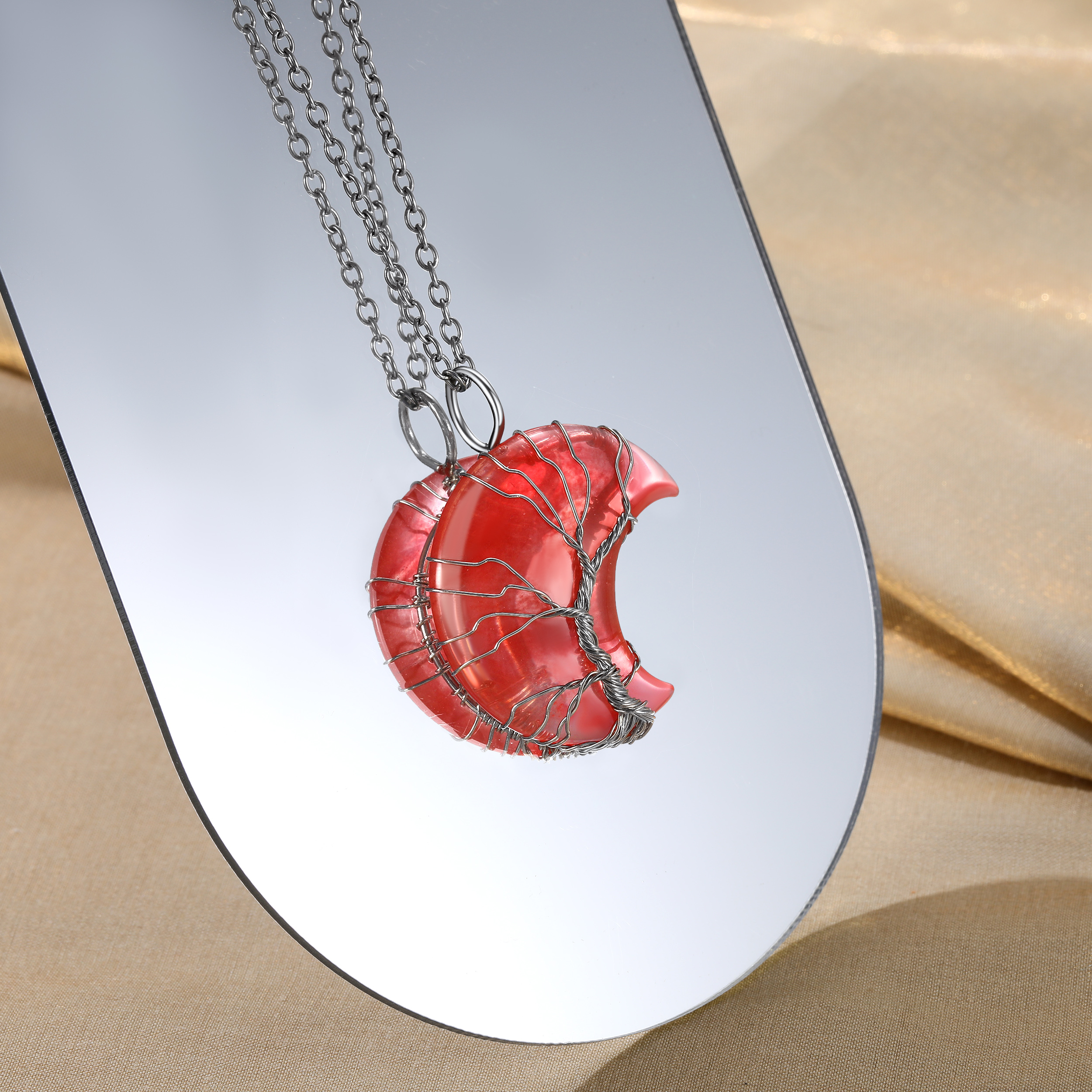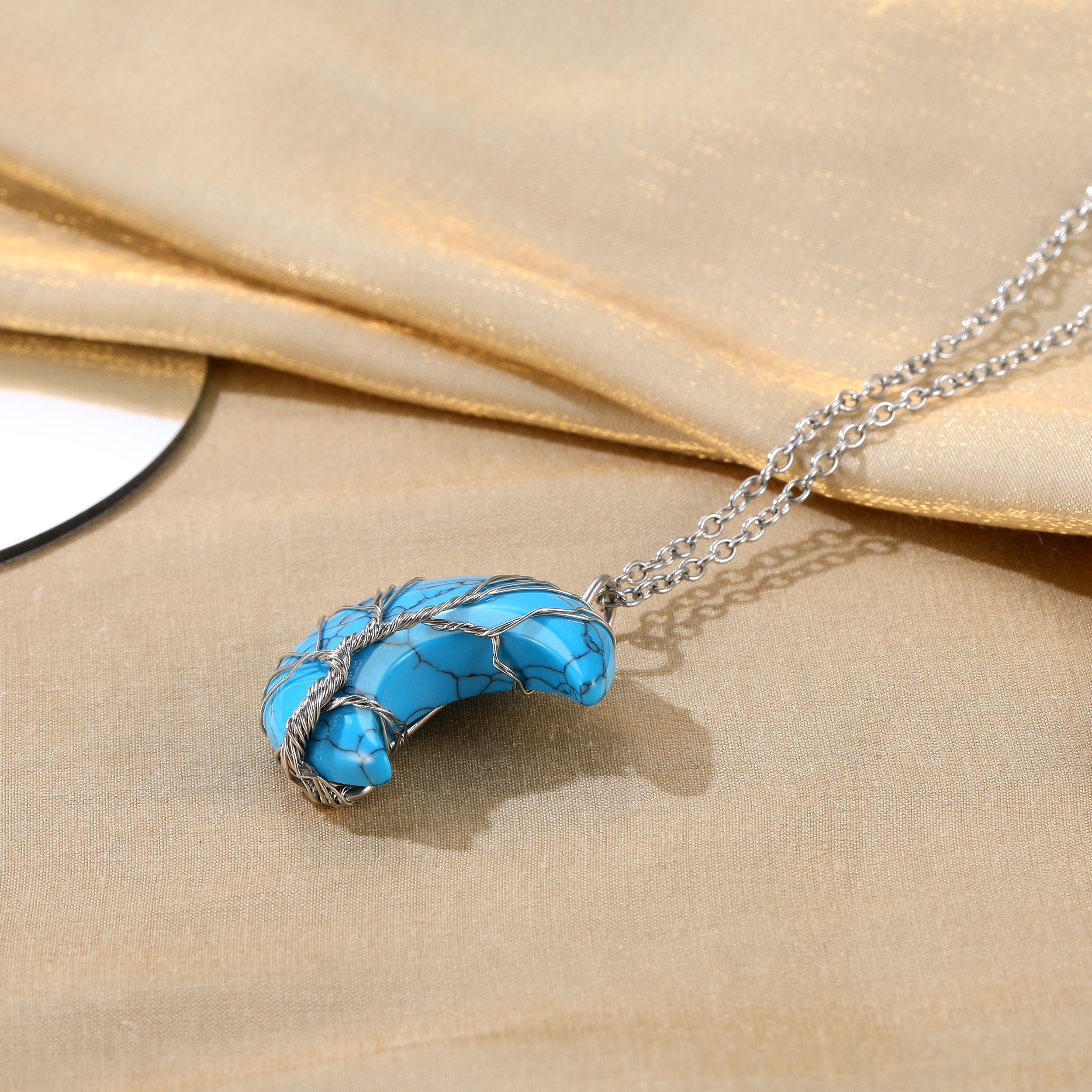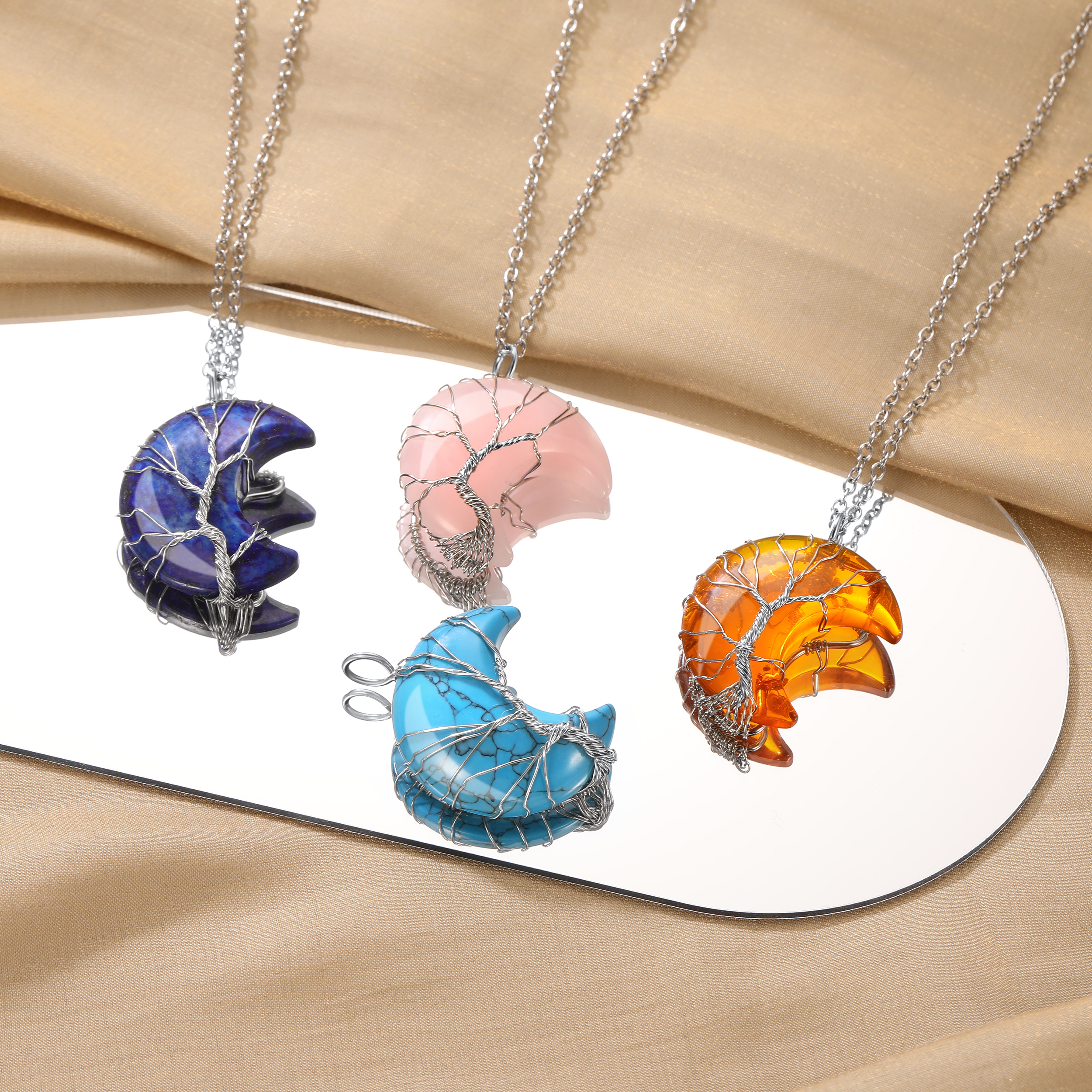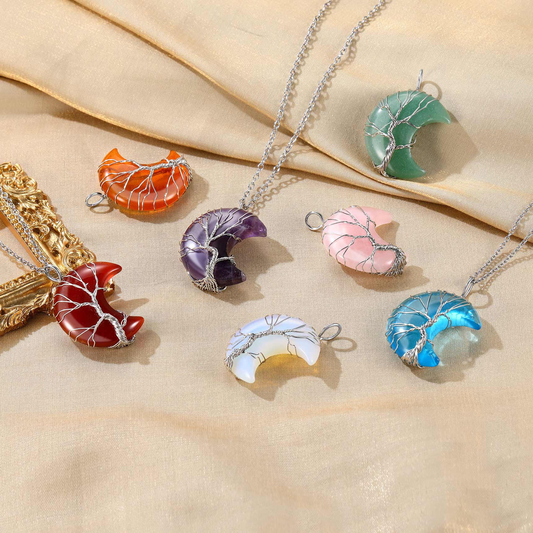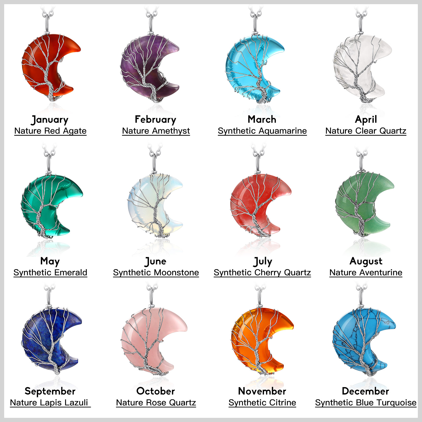 【June Synthetic Moonstone Crescent Moon Crystal Necklace】The Moonstone crystal stone meaning is linked with the energy of the moon. This stone channels the brilliant white illumination of moonbeams shining light on your pathway to balance and harmony and also works to raise your vibration and uplift your spirit.