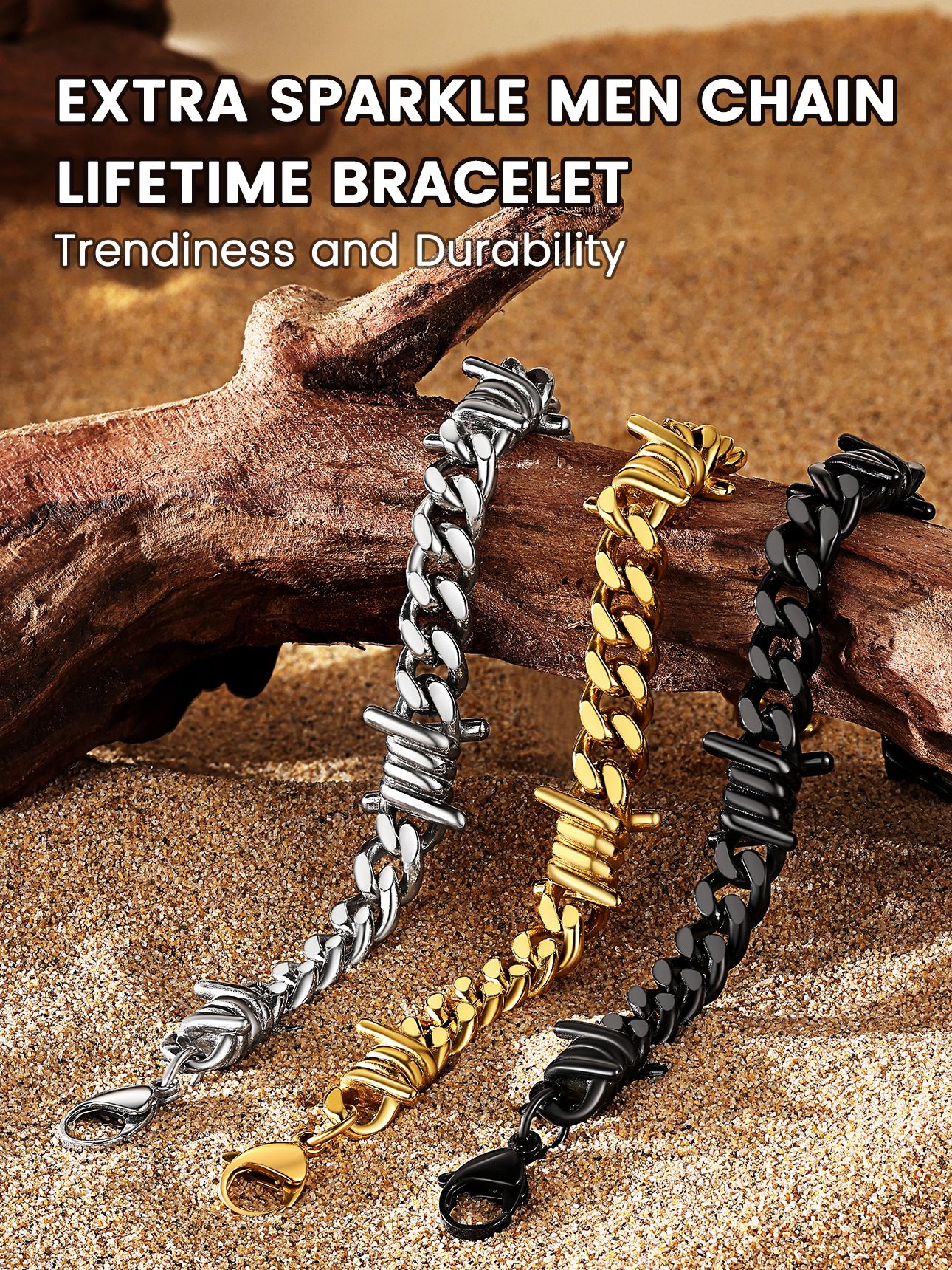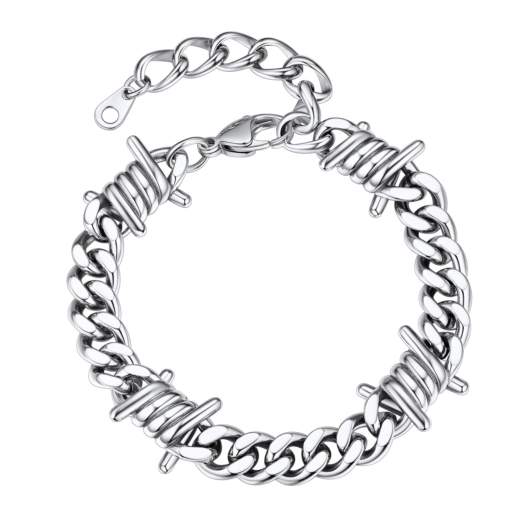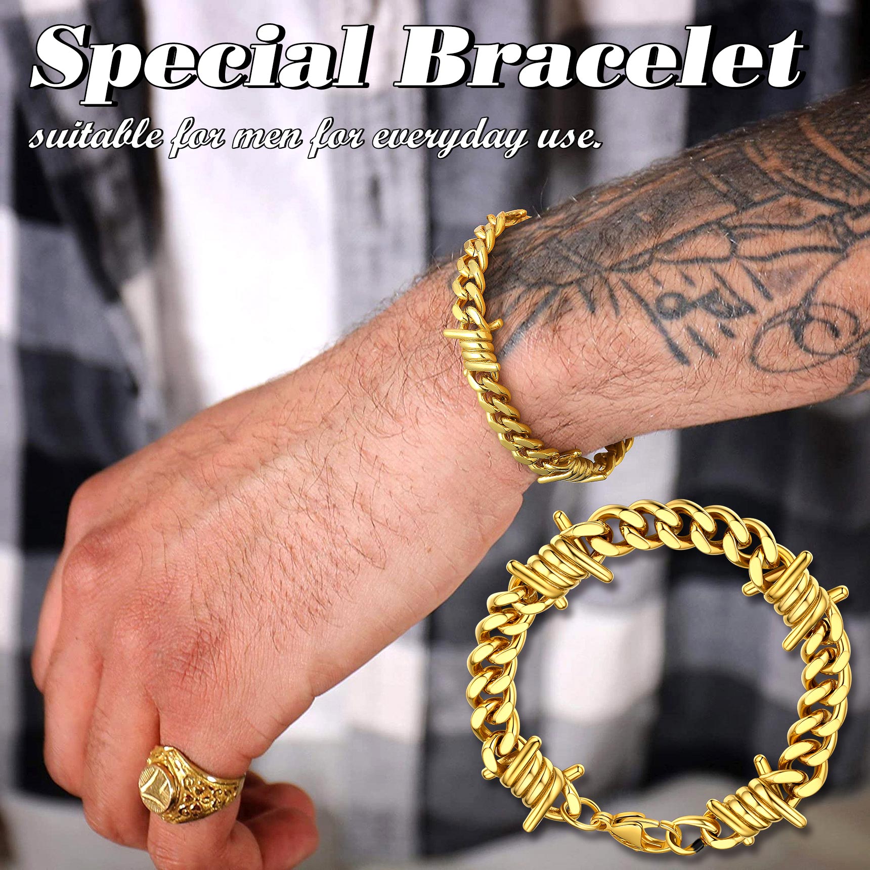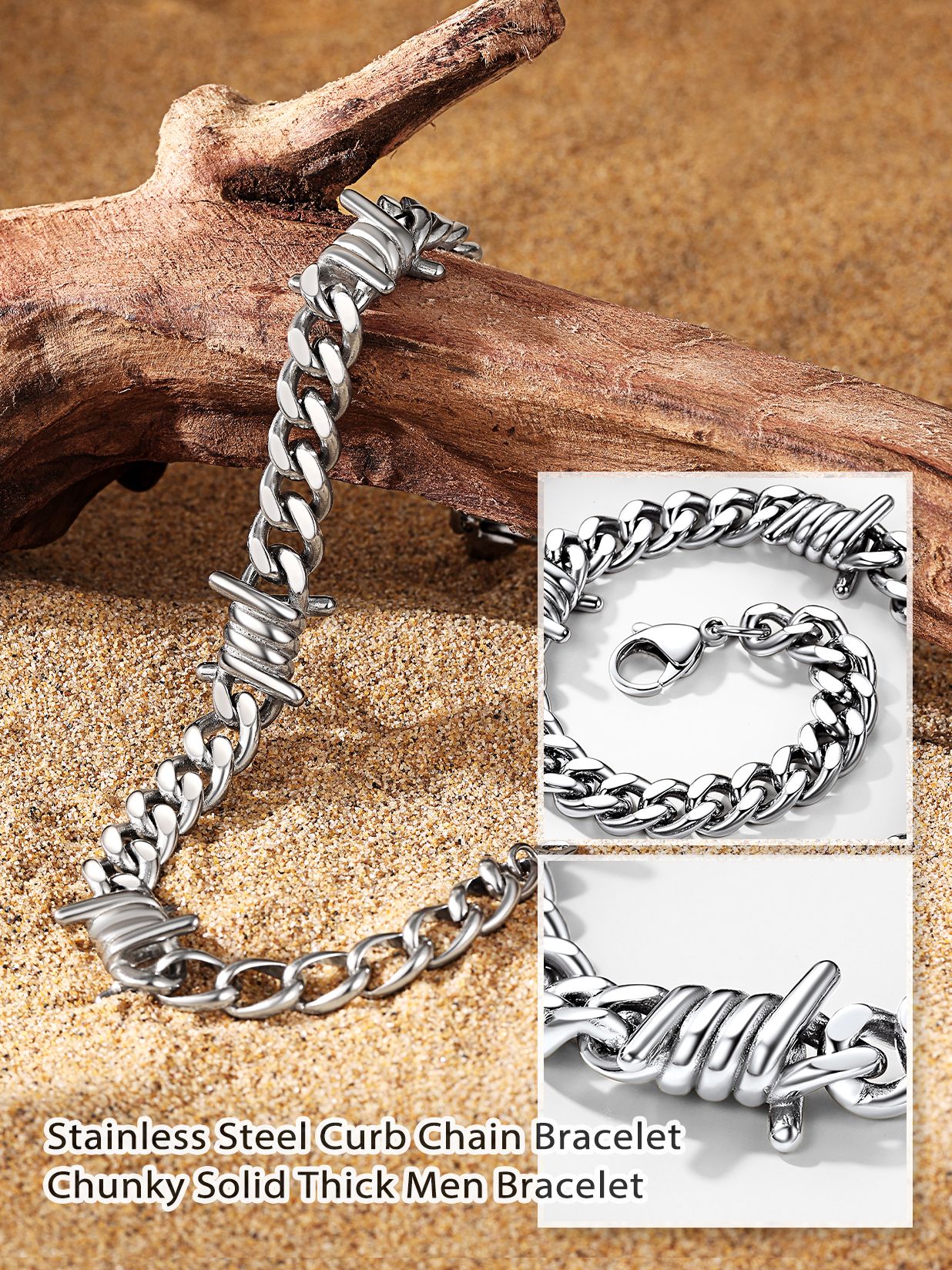 【Thick Cuban Link Bracelet for Men Women】9mm wide thick barbed wire bracelet with upgrade clasp, easy close and open, design to last long. Really chunky and manly look, classic chain, never out of fashion. Surprise your father husband son with this unique stainless steel thorns bracelet.