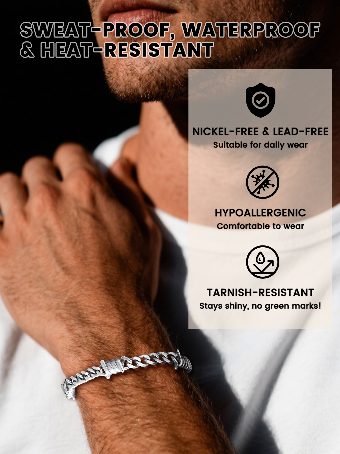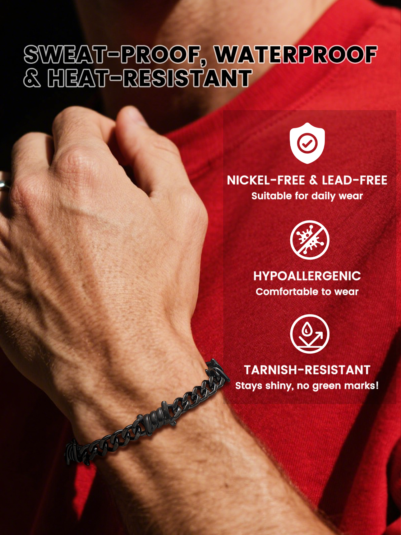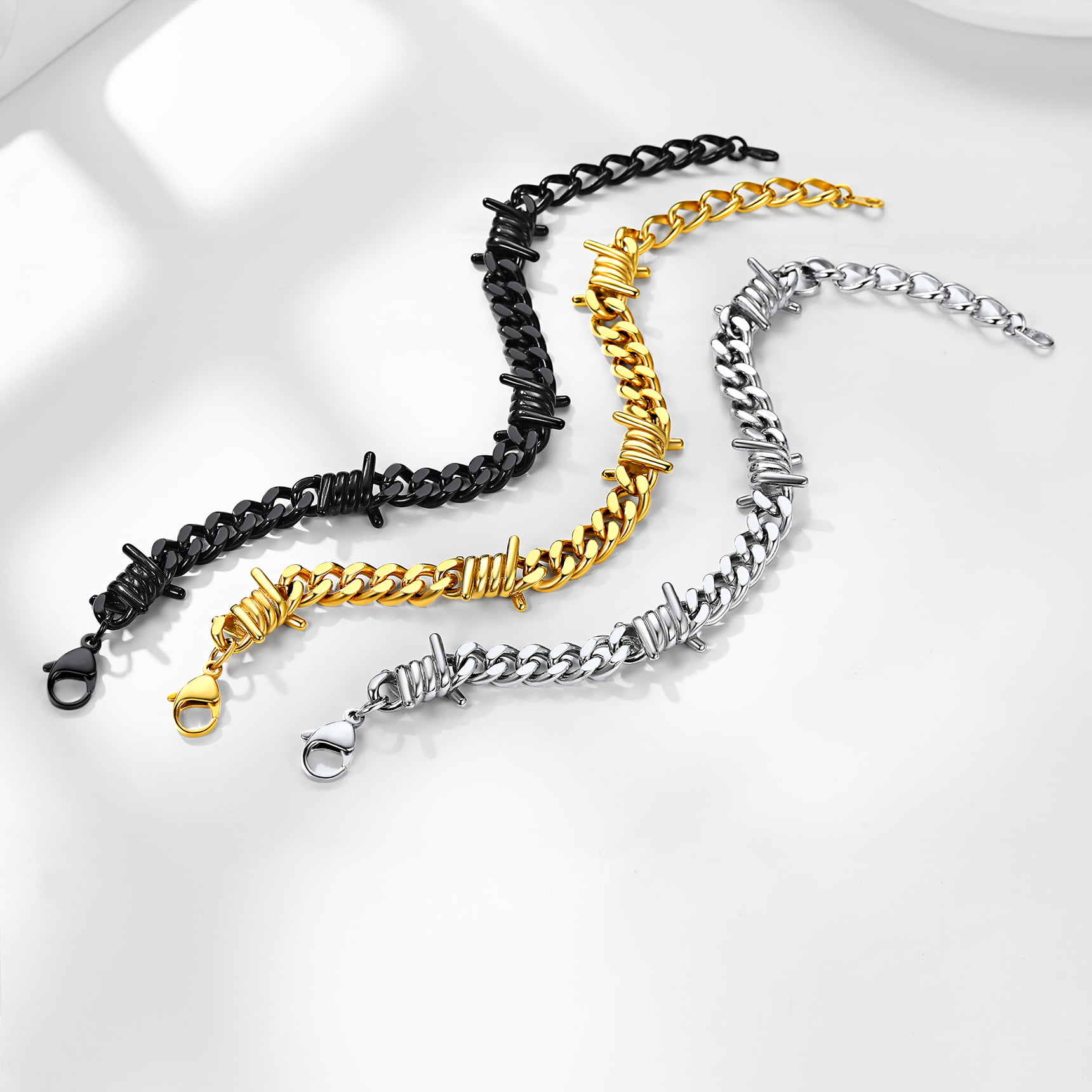 【Thick Cuban Link Bracelet for Men Women】9mm wide thick barbed wire bracelet with upgrade clasp, easy close and open, design to last long. Really chunky and manly look, classic chain, never out of fashion. Surprise your father husband son with this unique stainless steel thorns bracelet.