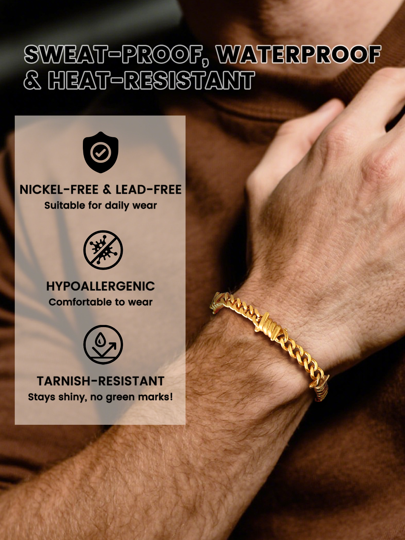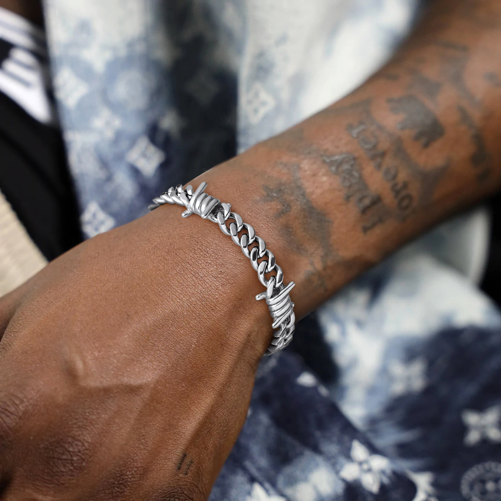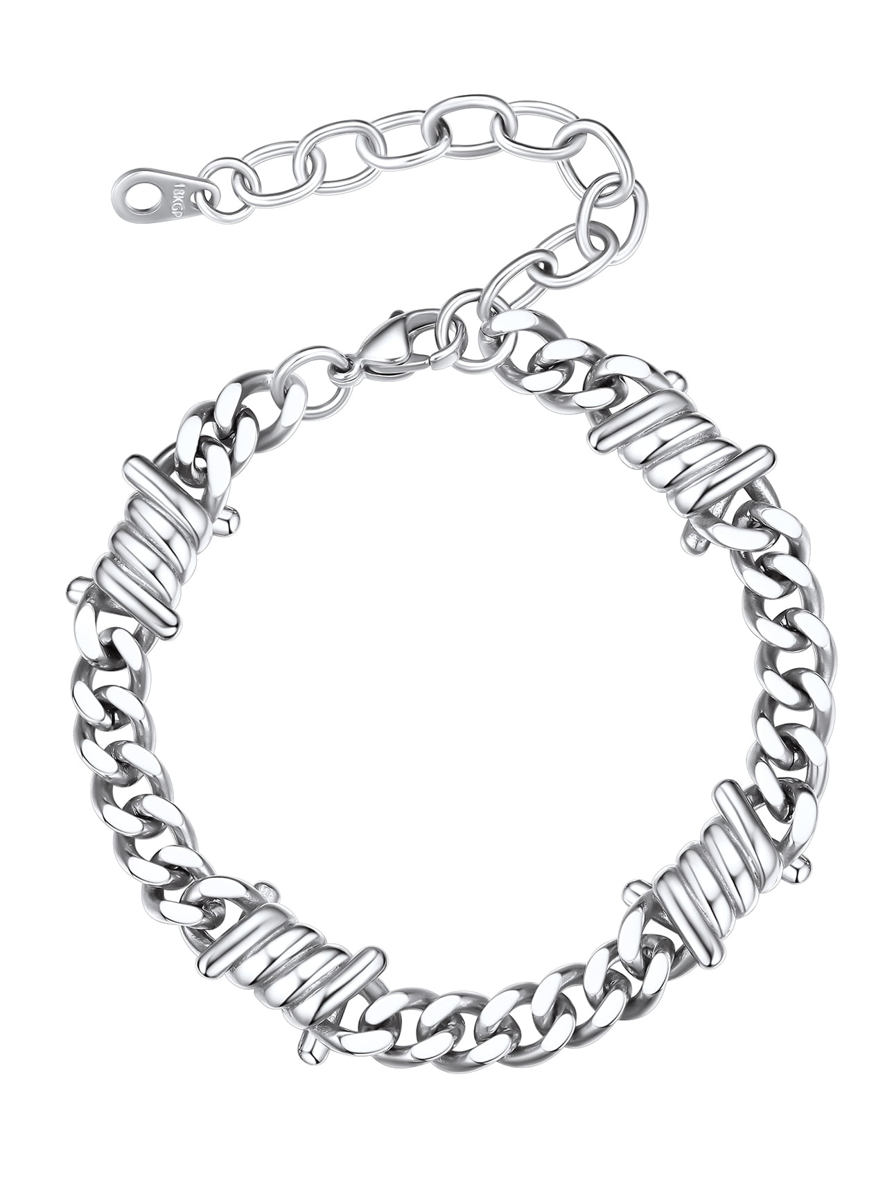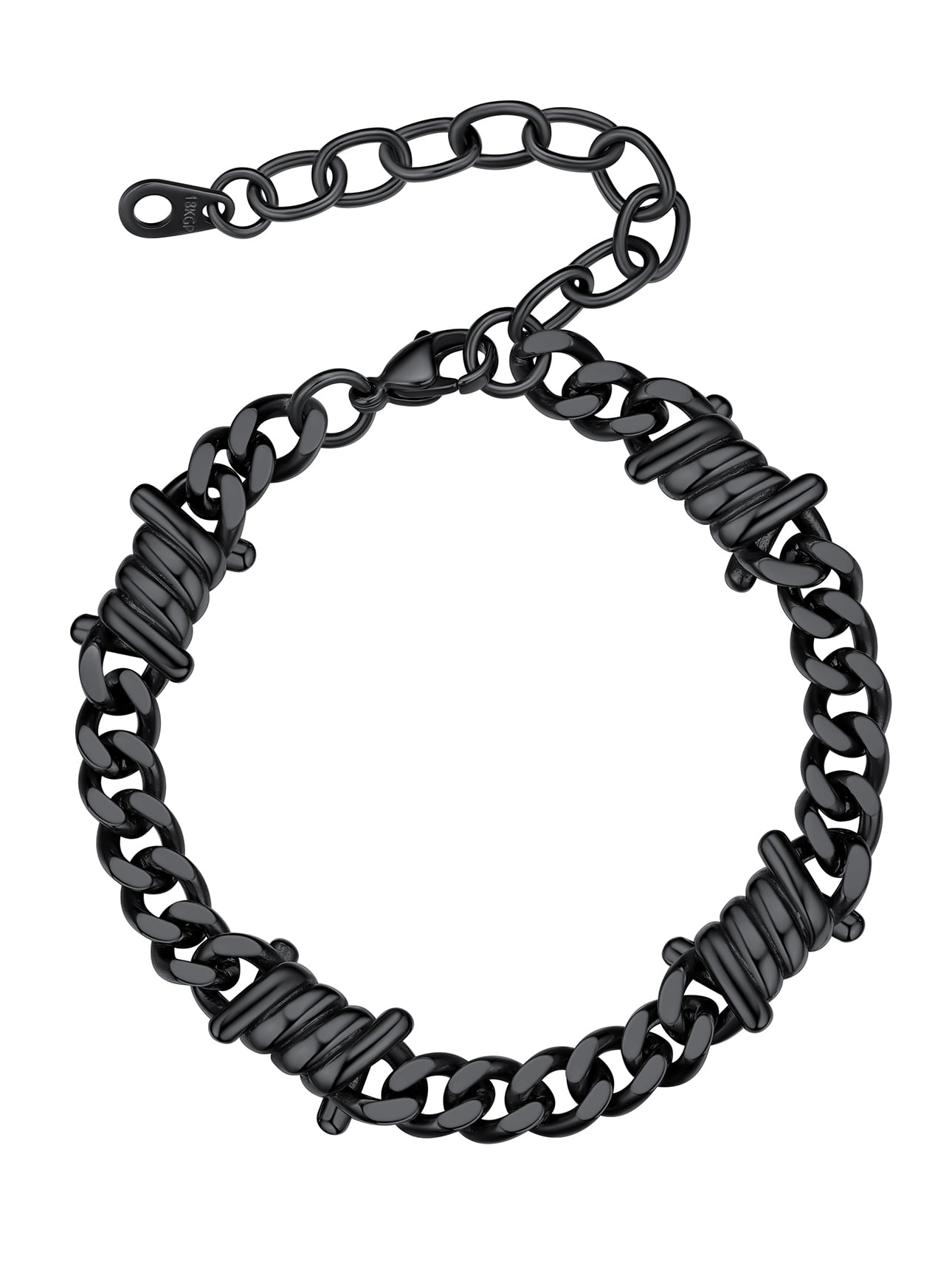 【Thick Cuban Link Bracelet for Men Women】9mm wide thick barbed wire bracelet with upgrade clasp, easy close and open, design to last long. Really chunky and manly look, classic chain, never out of fashion. Surprise your father husband son with this unique stainless steel thorns bracelet.