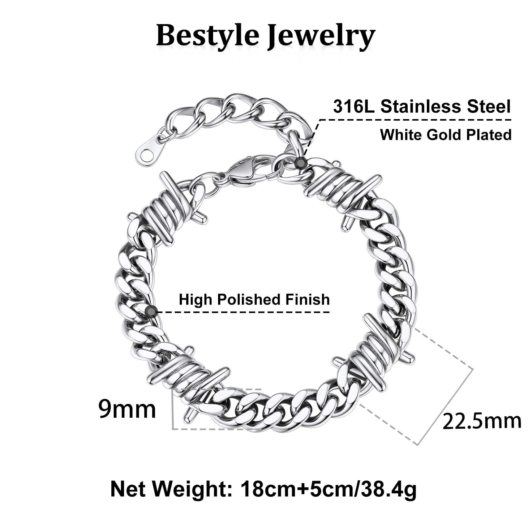 【Bestyle Thorns Barbed Wire Bracelet】Thorns Link Designed, much more cool unique than normal link chain. Will definitely not only show your personality, but also gain your audience's focus and complient. The link is high polish and safe, won't hurt your skin.
