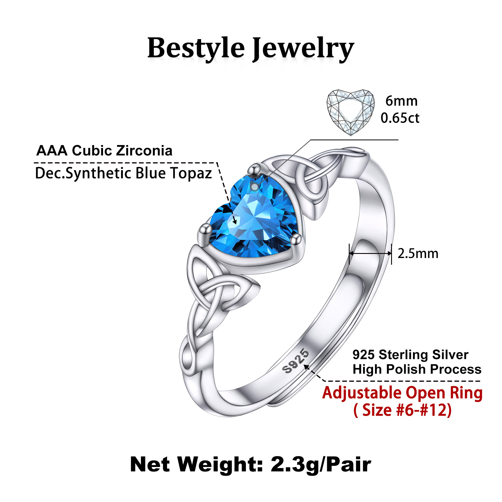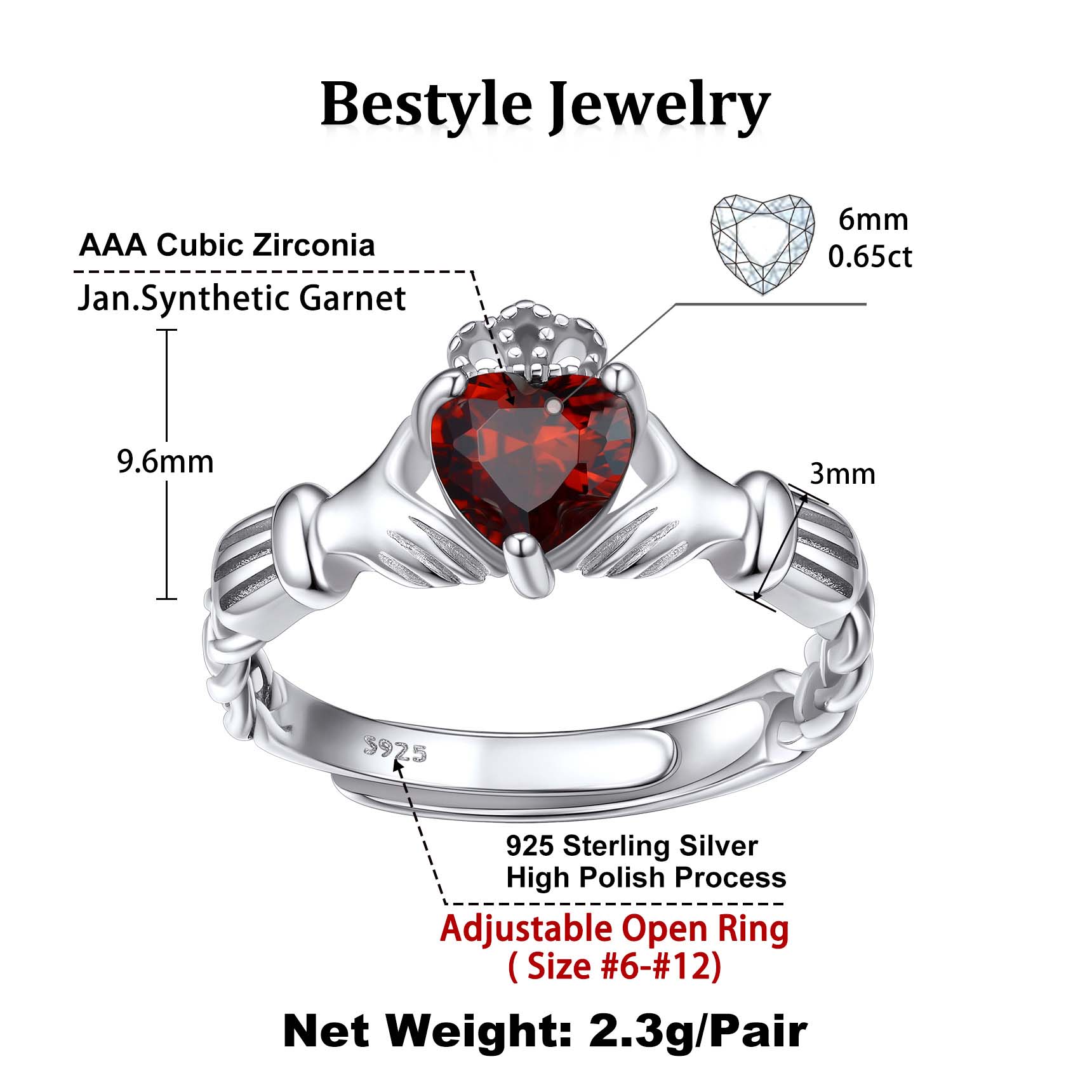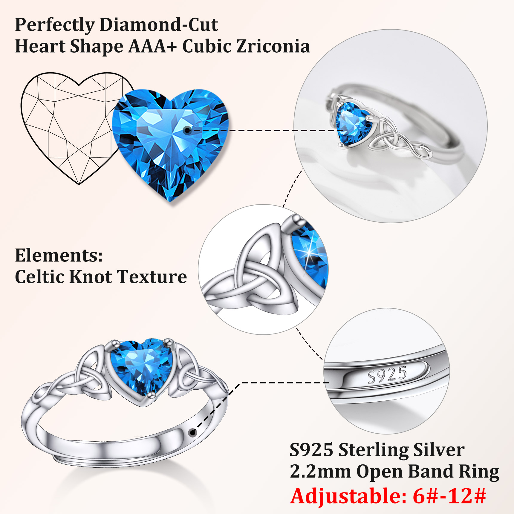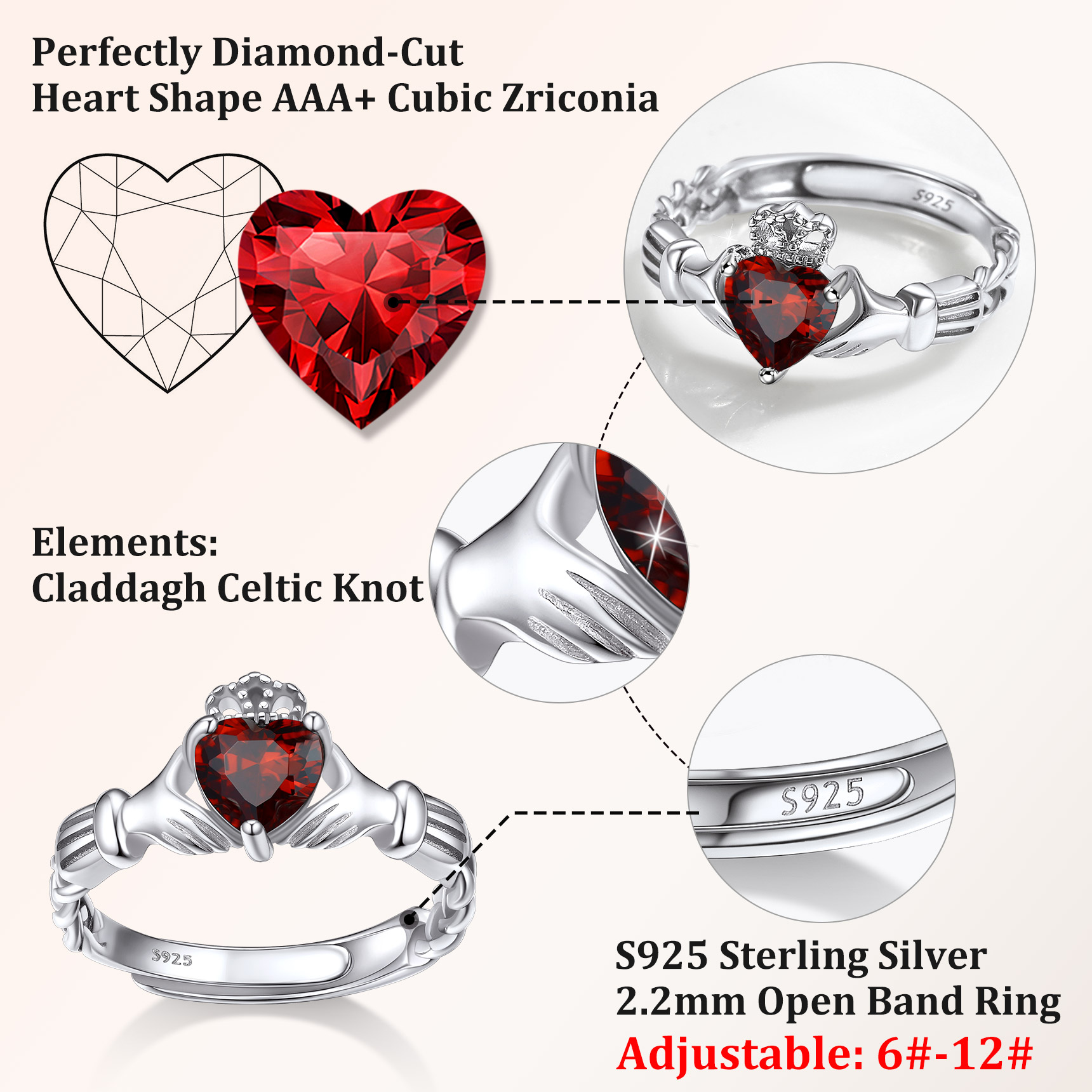 - Ring Size: Adjustable 6-12 US Size